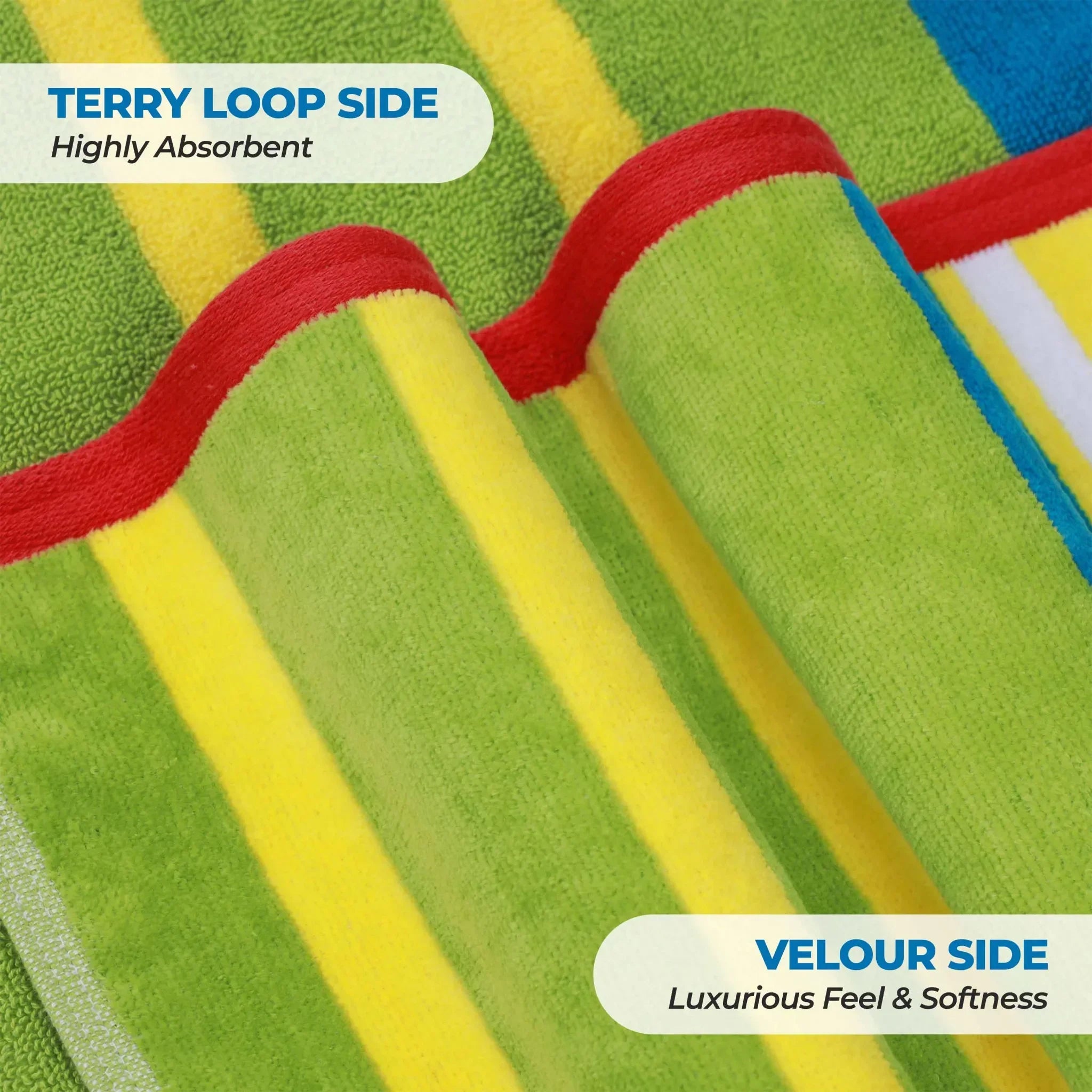 - Dual – texture functionality with a highly absorbent terry loop side and a soft velour side