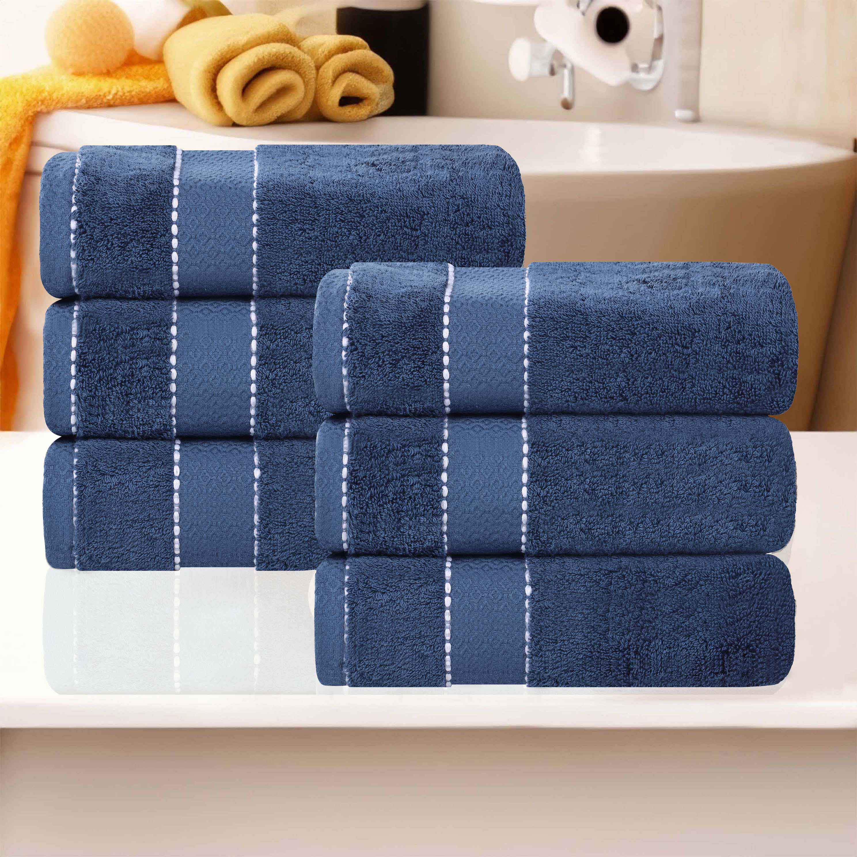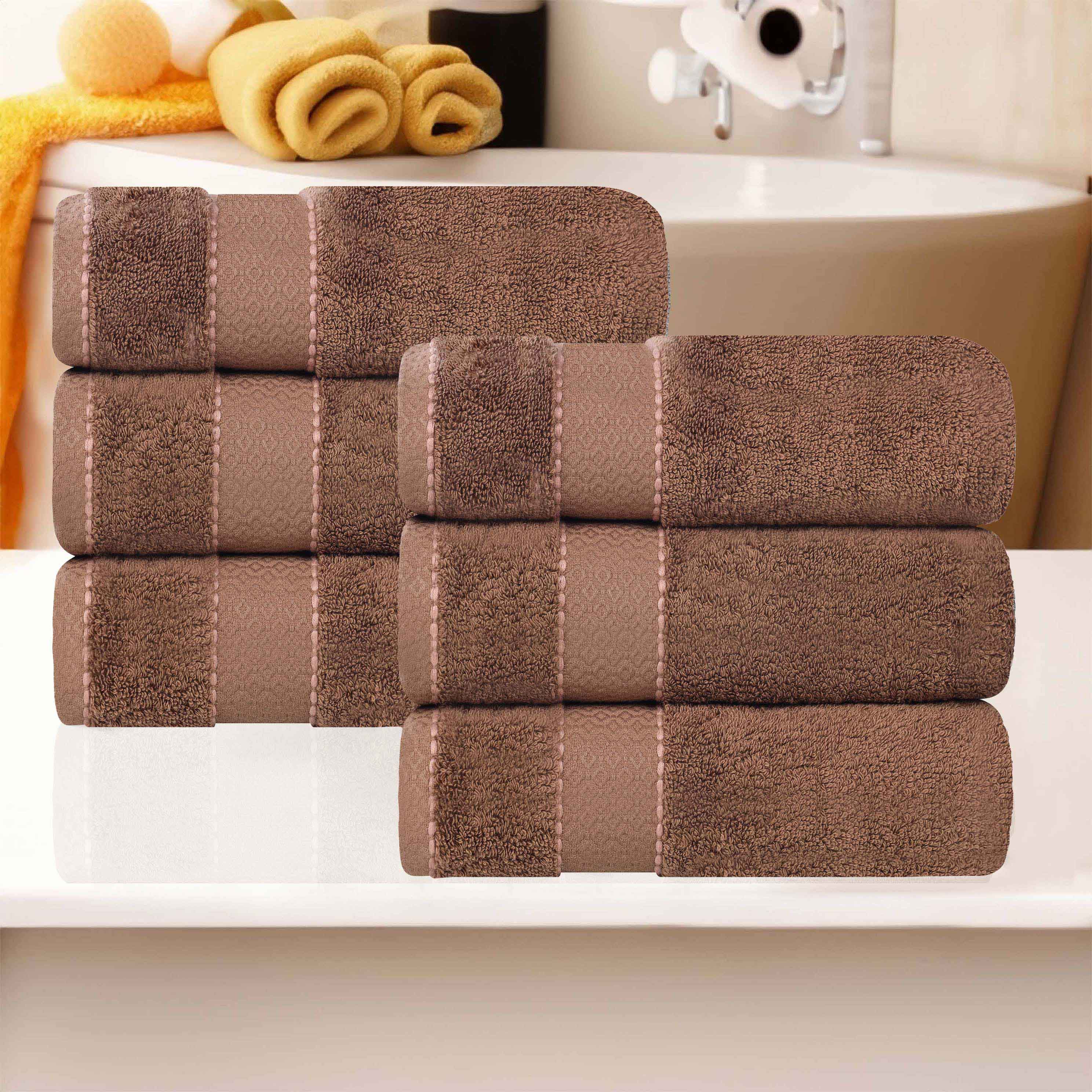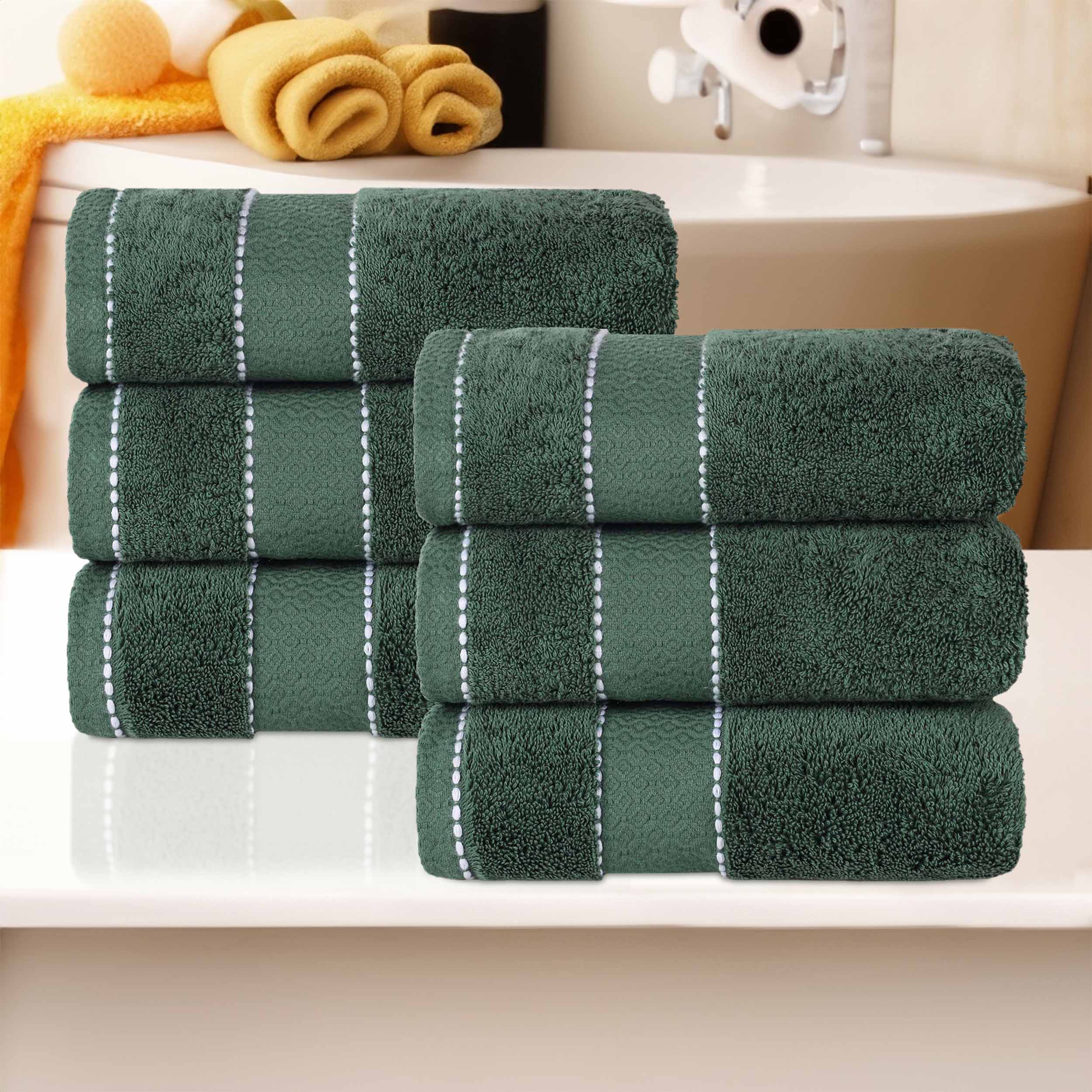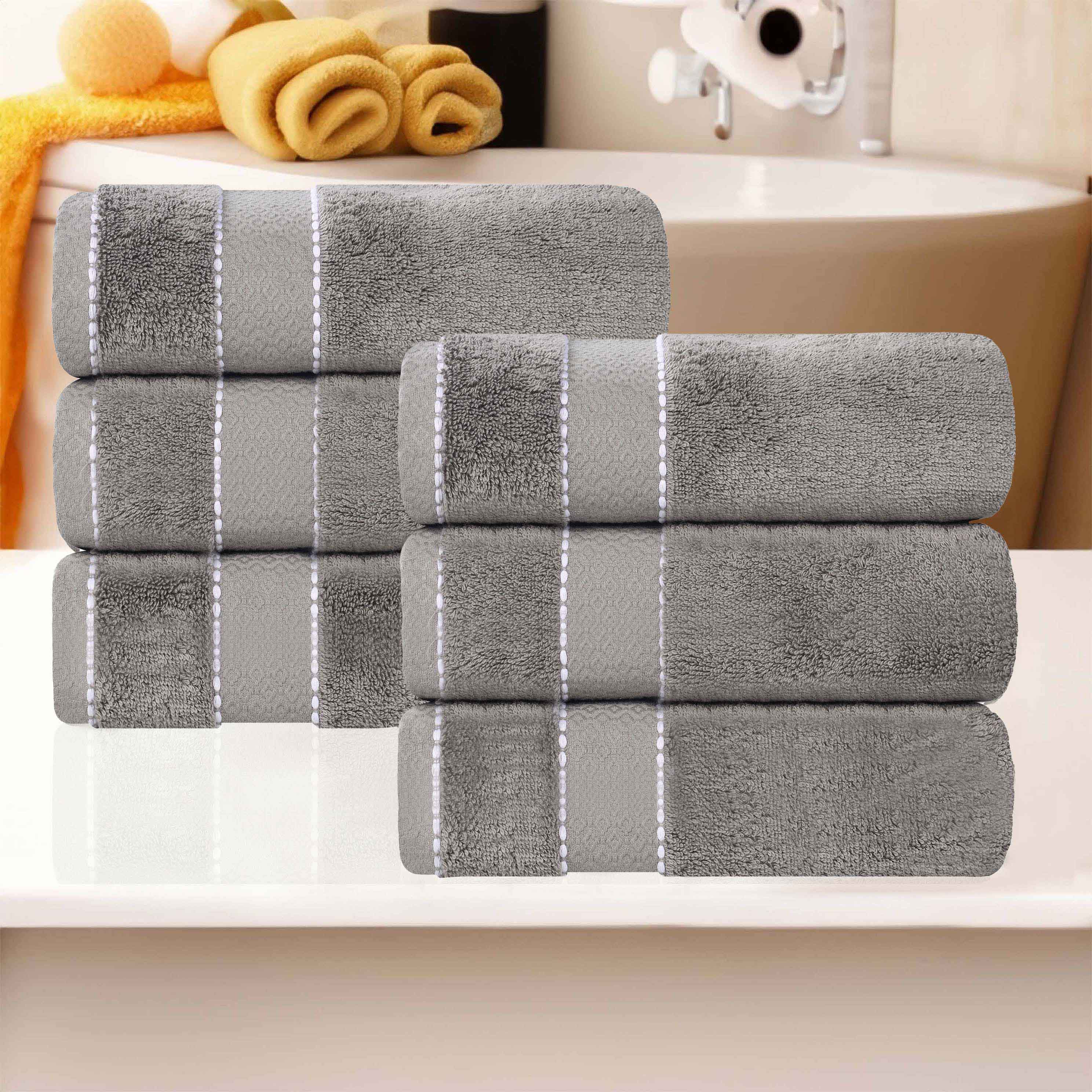 This is a set of high – quality bathroom towels. Made from Egyptian Giza cotton, they offer both softness and durability. The towels come in a variety of solid colors and feature decorative stitching and a diamond dobby border, adding an elegant touch to your bathroom.