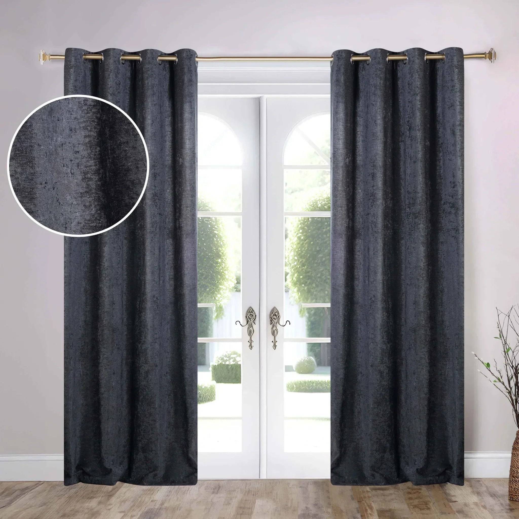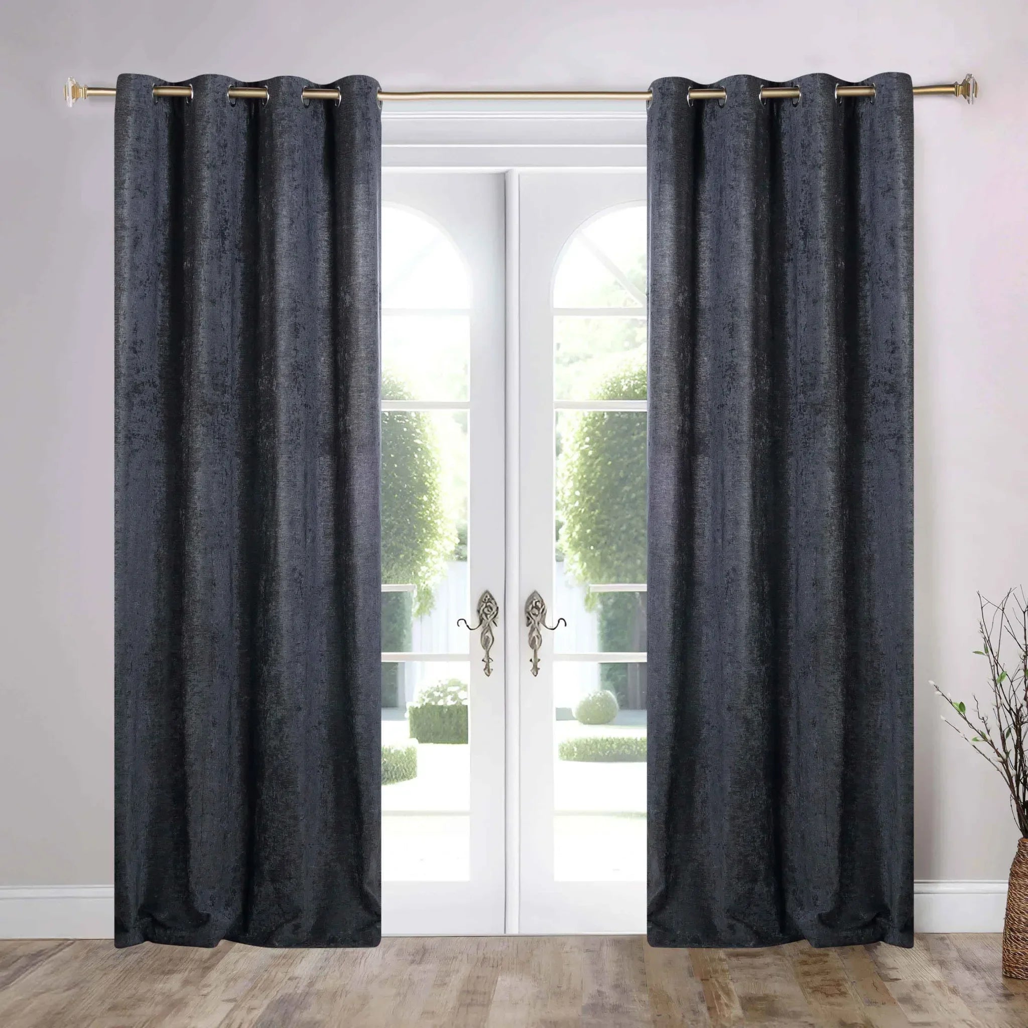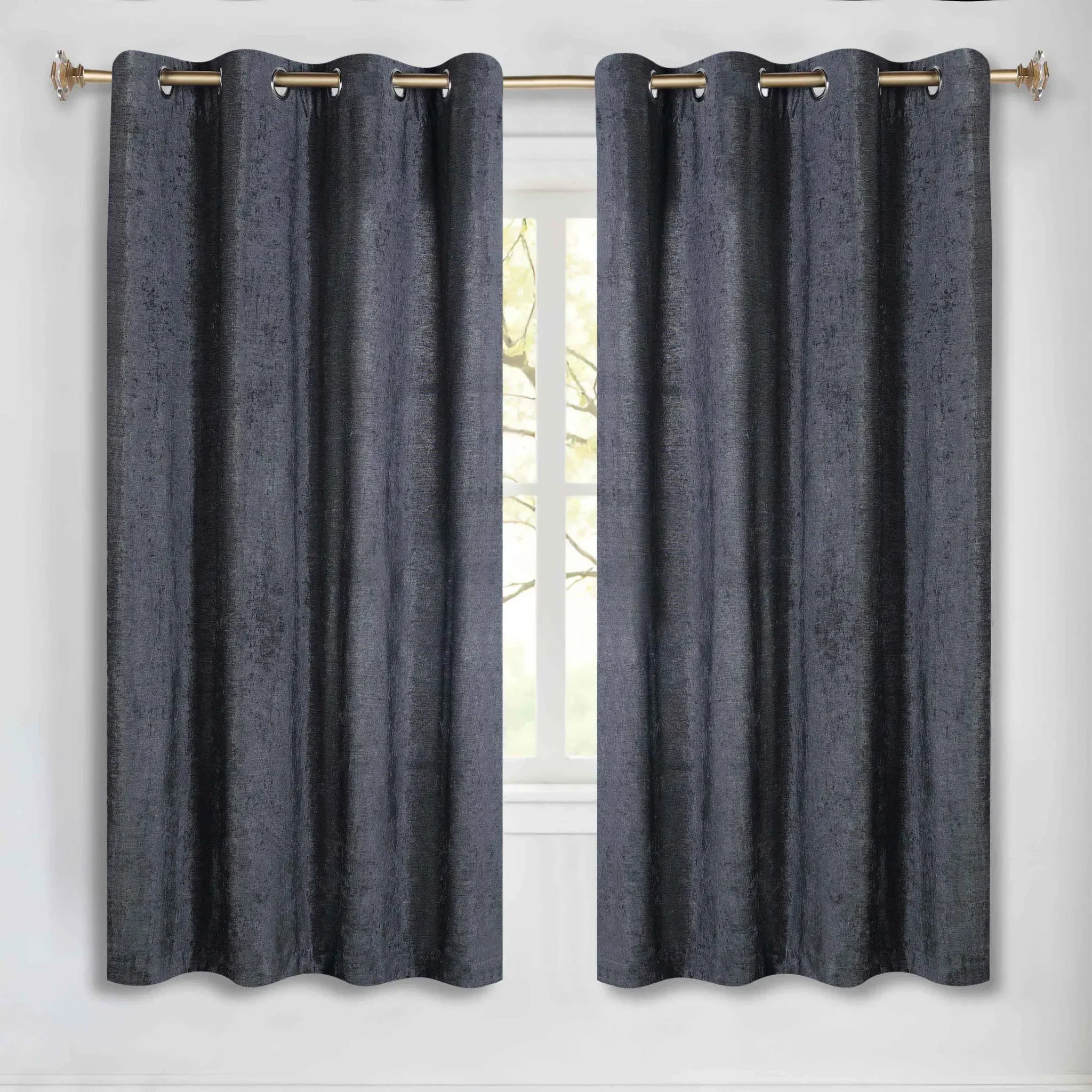 This product is a set of two window curtain panels. Crafted from a heavyweight, textured synthetic blend fabric, these curtains offer both style and functionality. They come in a variety of solid colors and feature a floor – length design with a set of grommets for easy hanging.