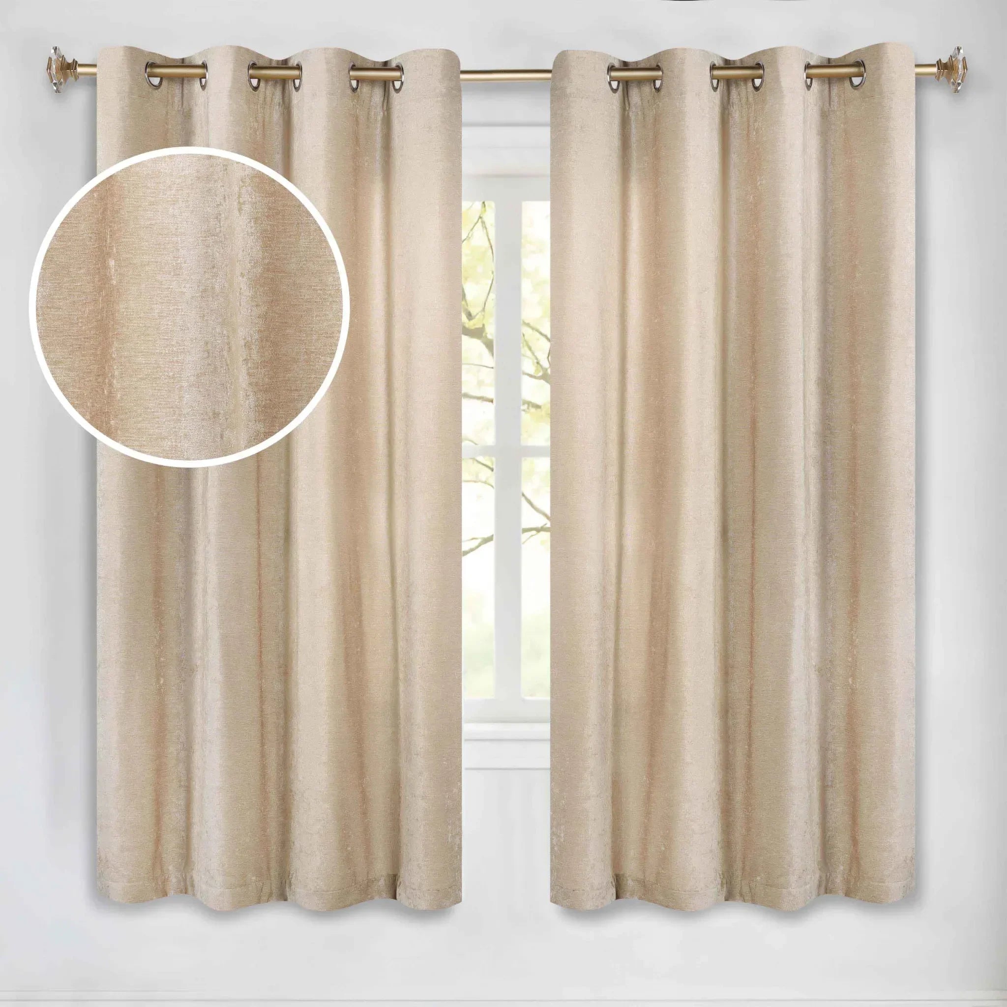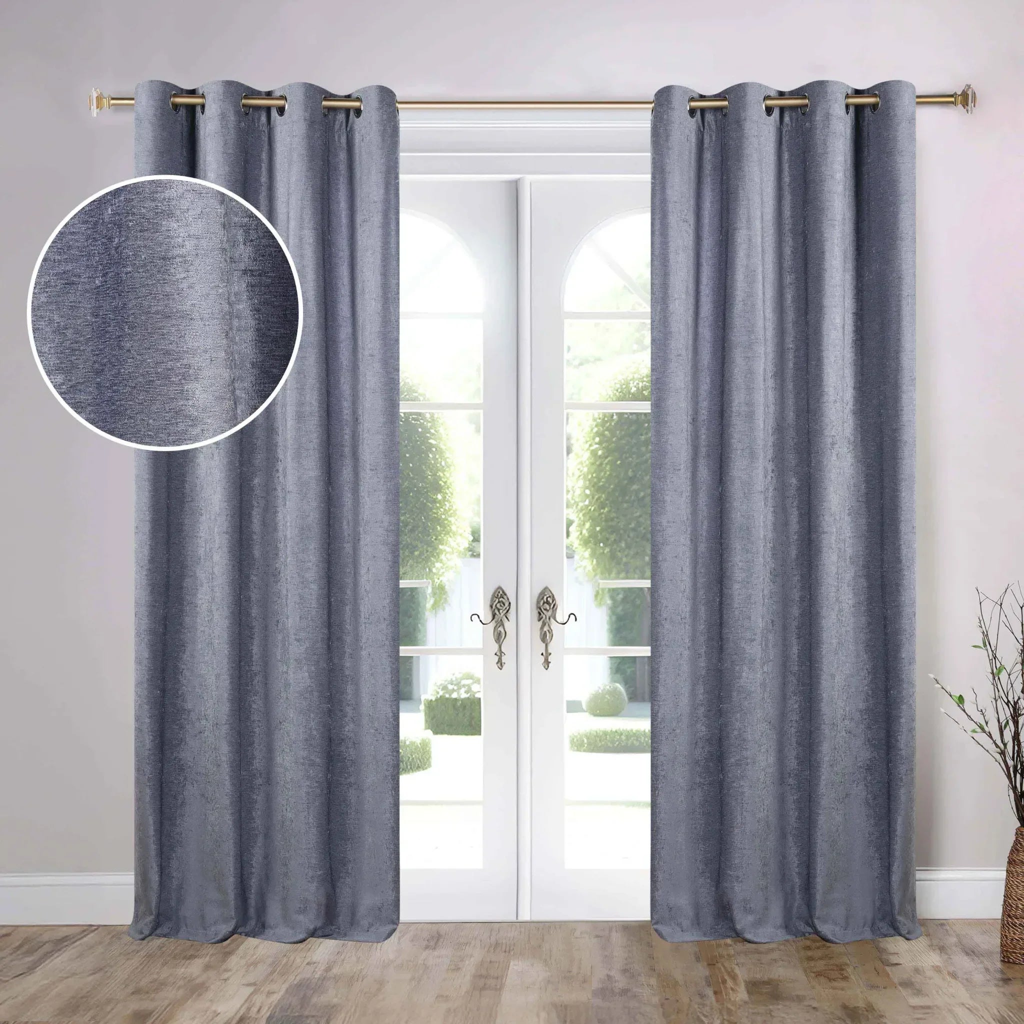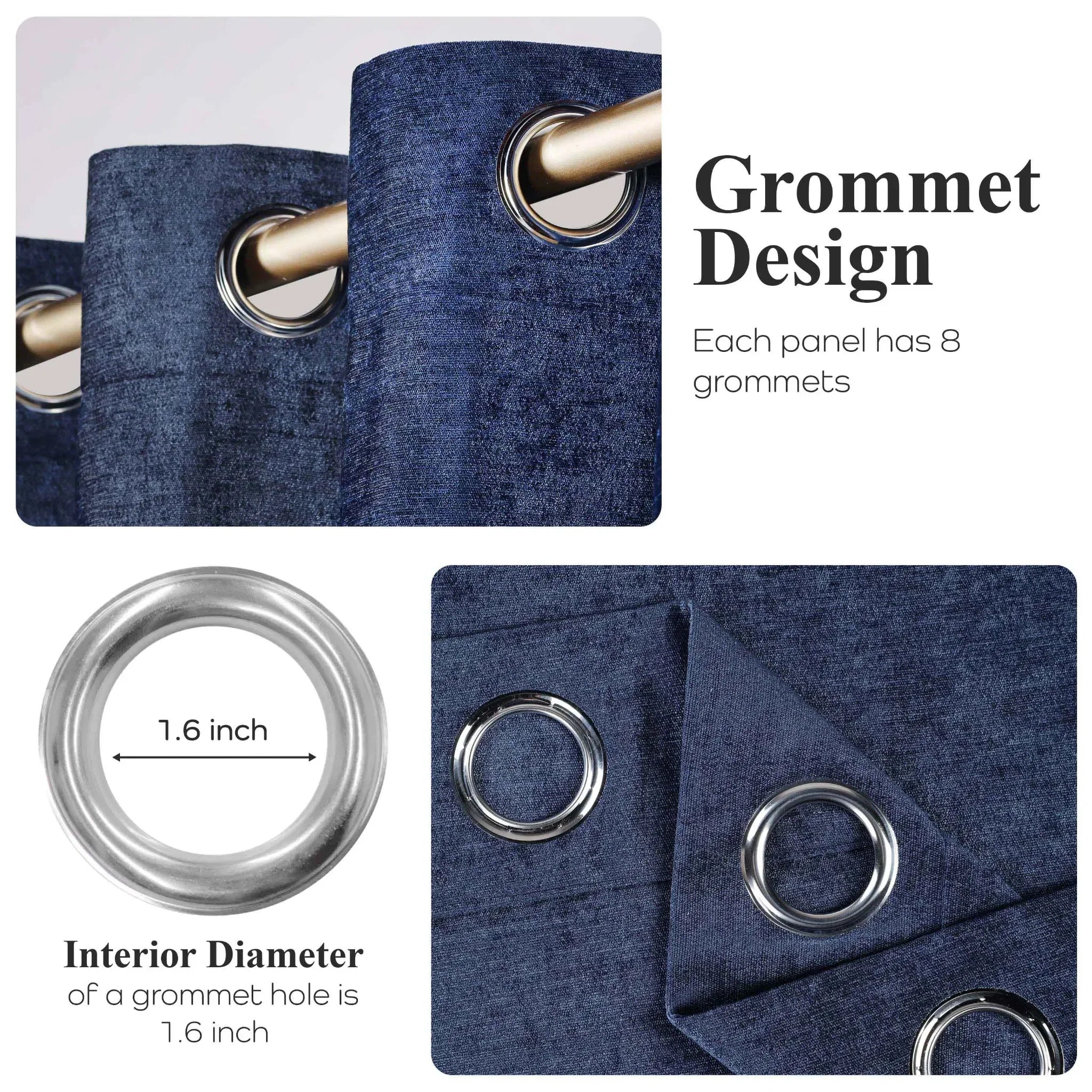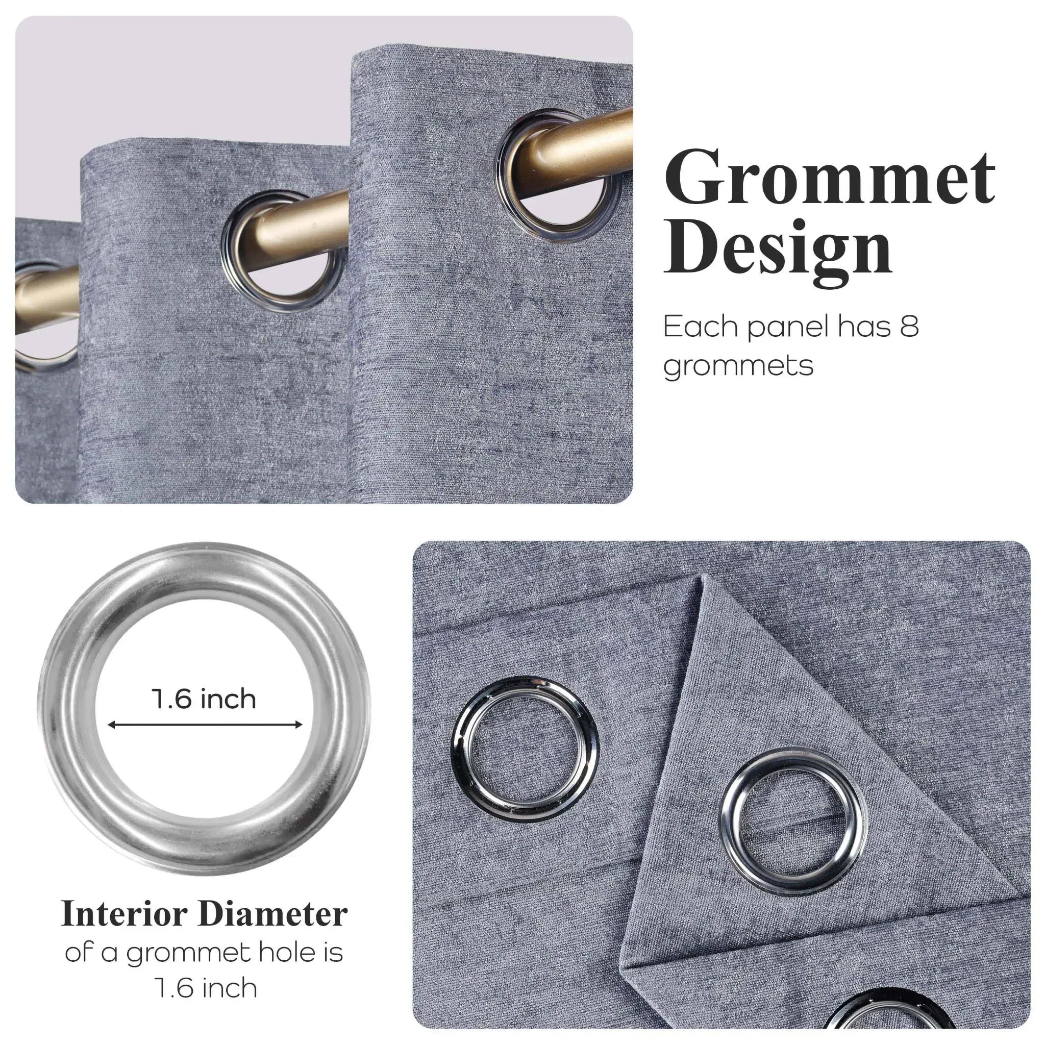- 8 evenly spaced metal grommets per panel with a 1.6 – inch interior diameter for smooth sliding on a curtain rod.