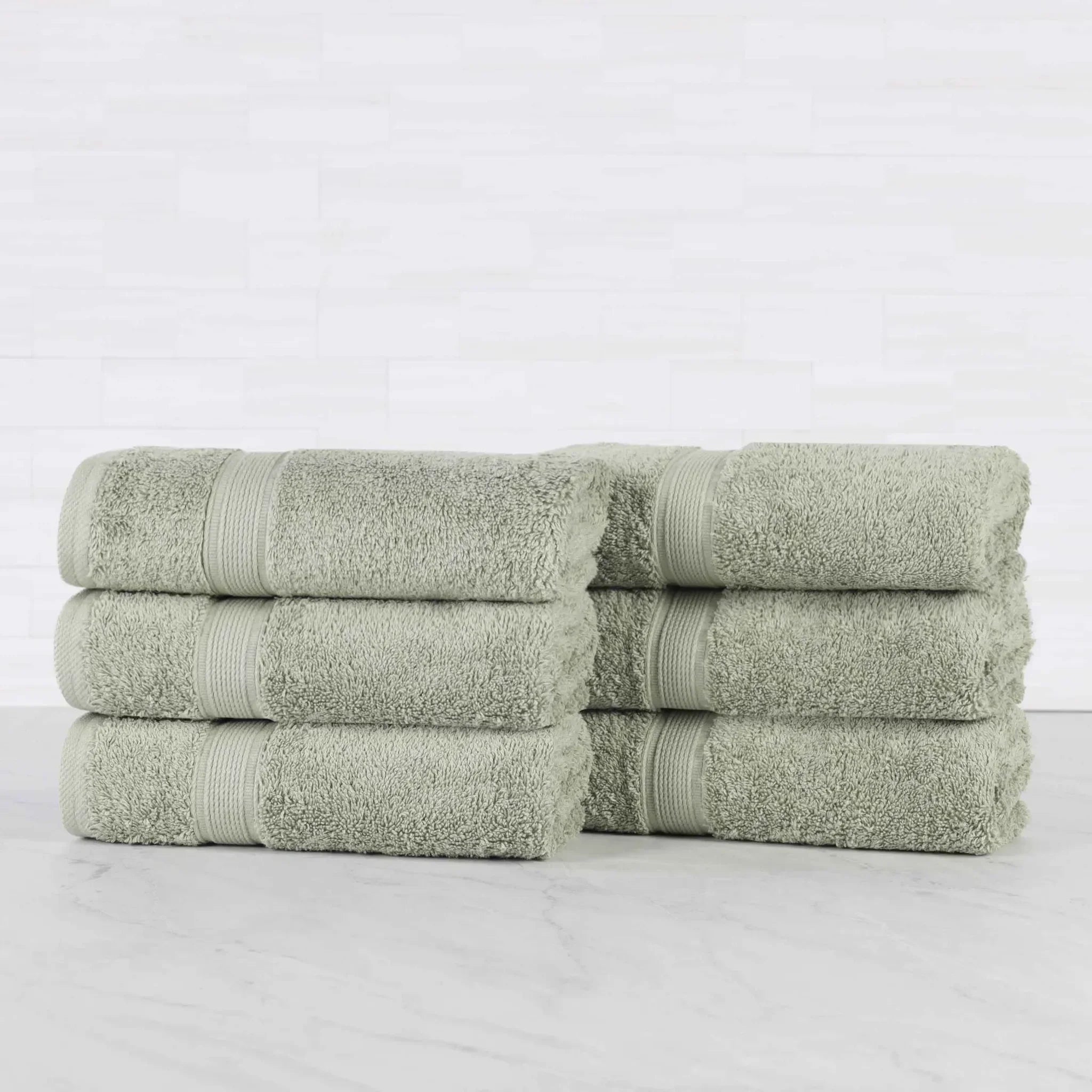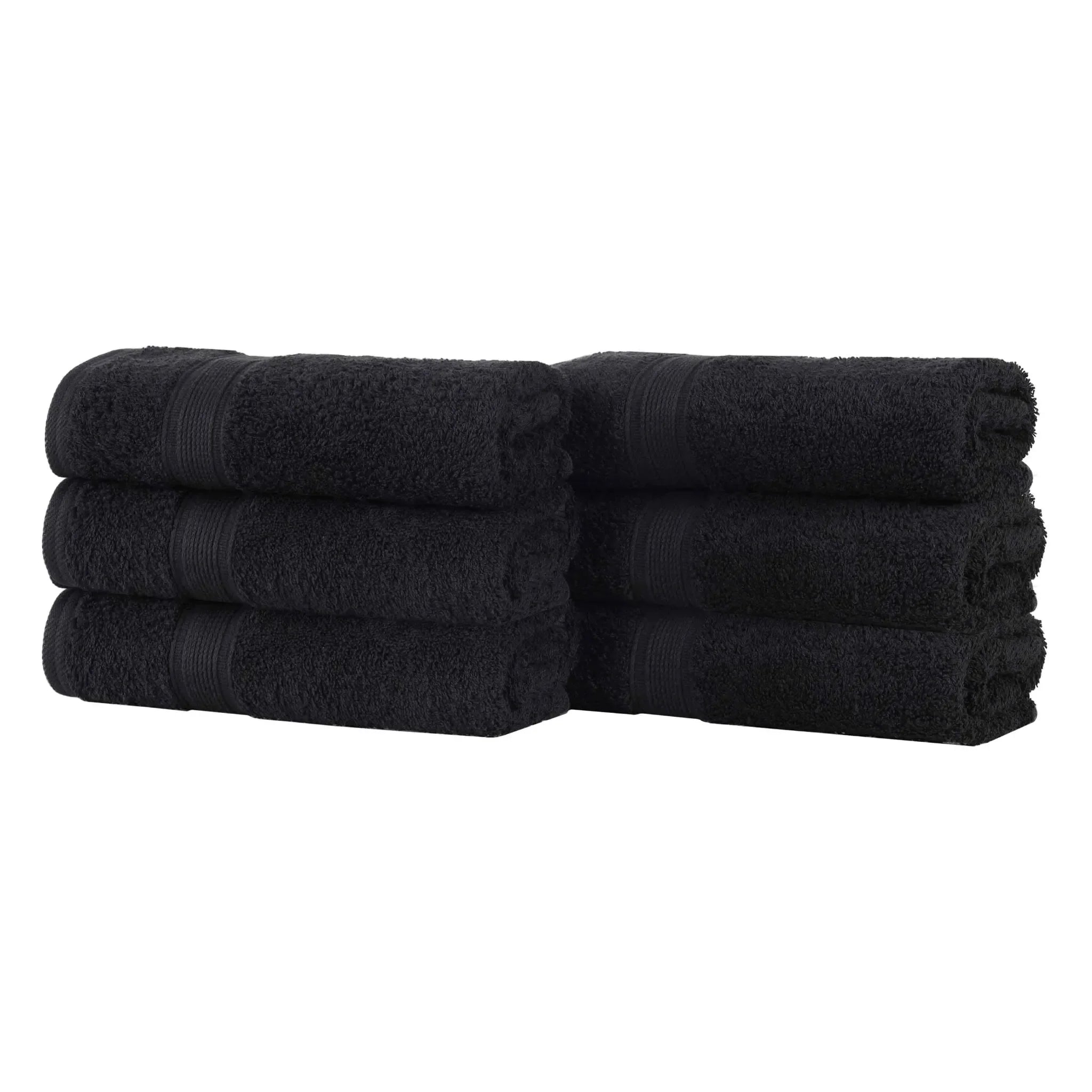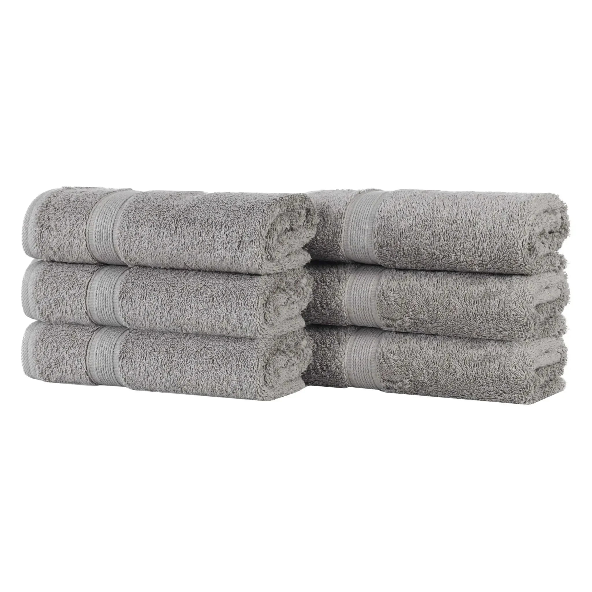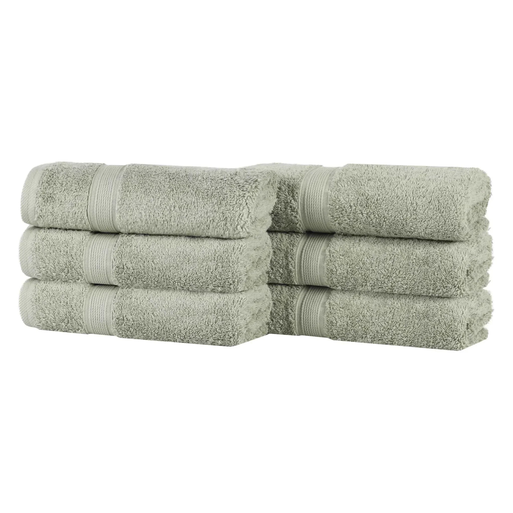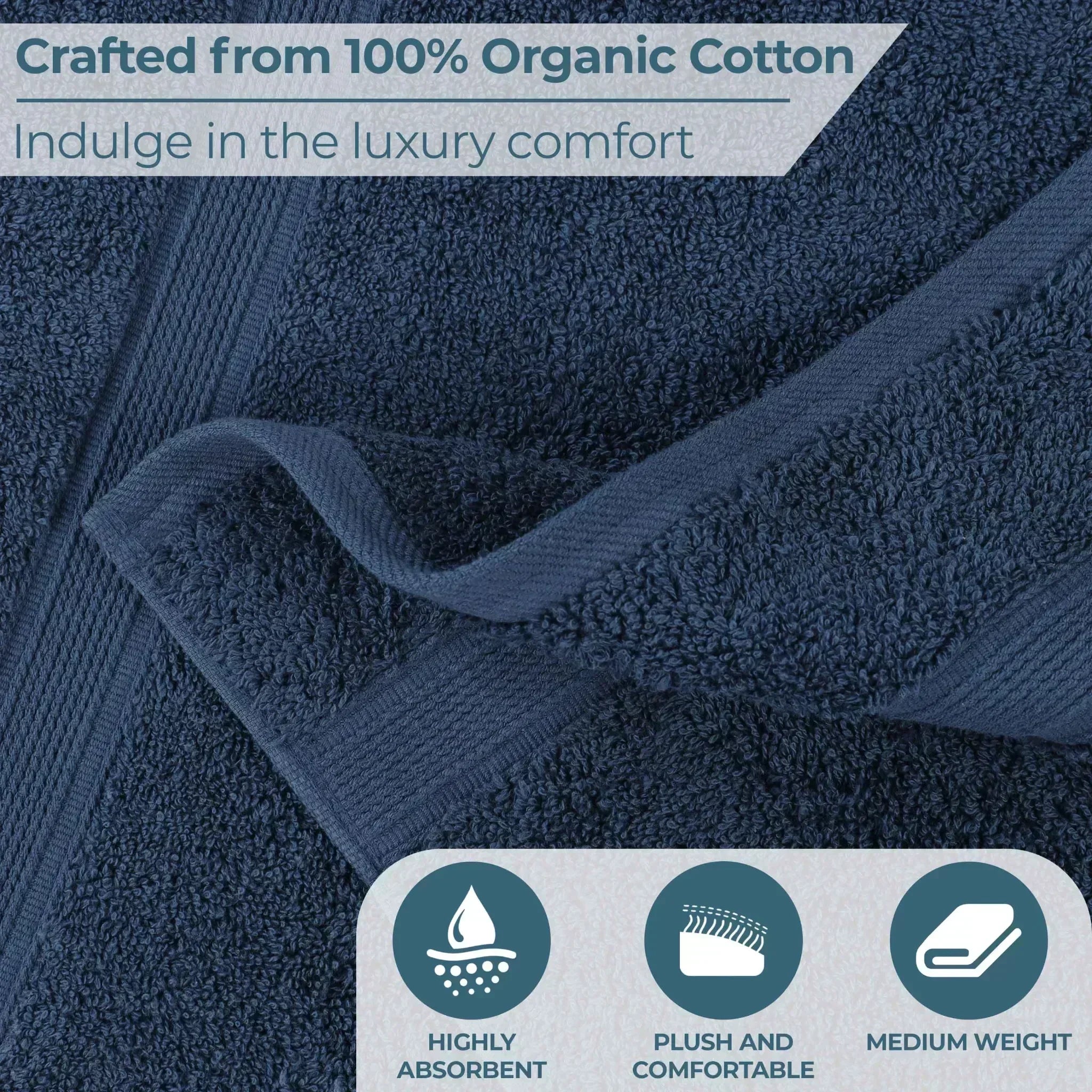 This is a set of towels crafted from 100% organic cotton. The towels feature a textured, woven band around the edge, adding both style and durability. With multiple color options available, they can easily match different bathroom decors.
