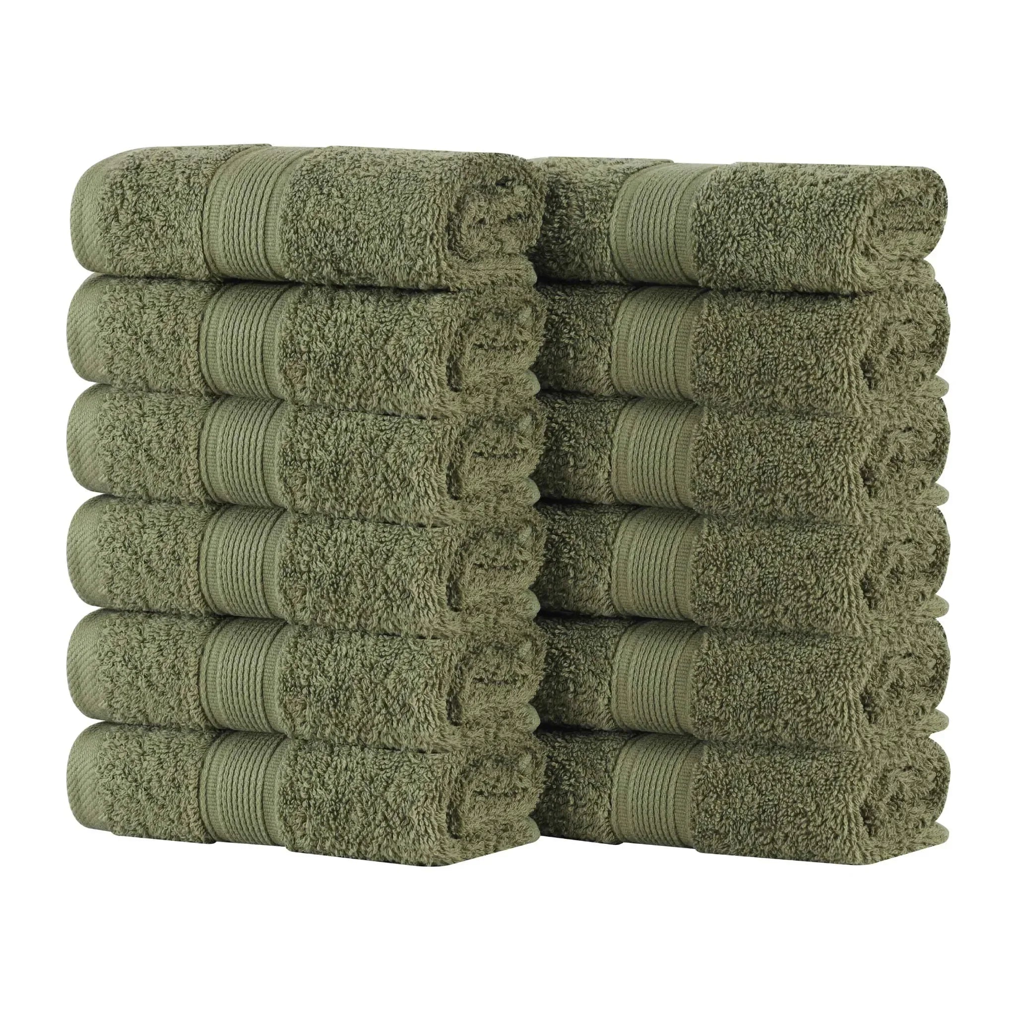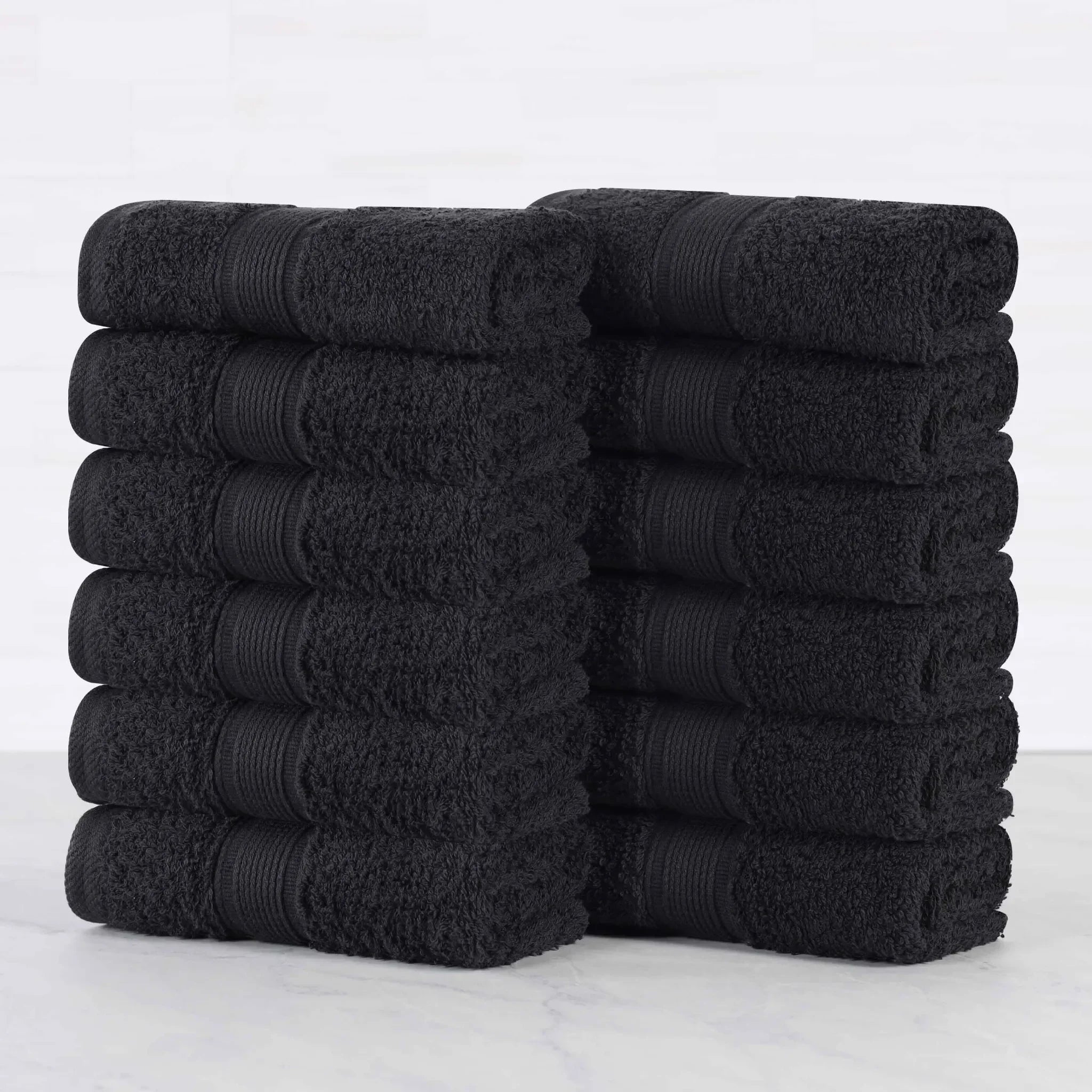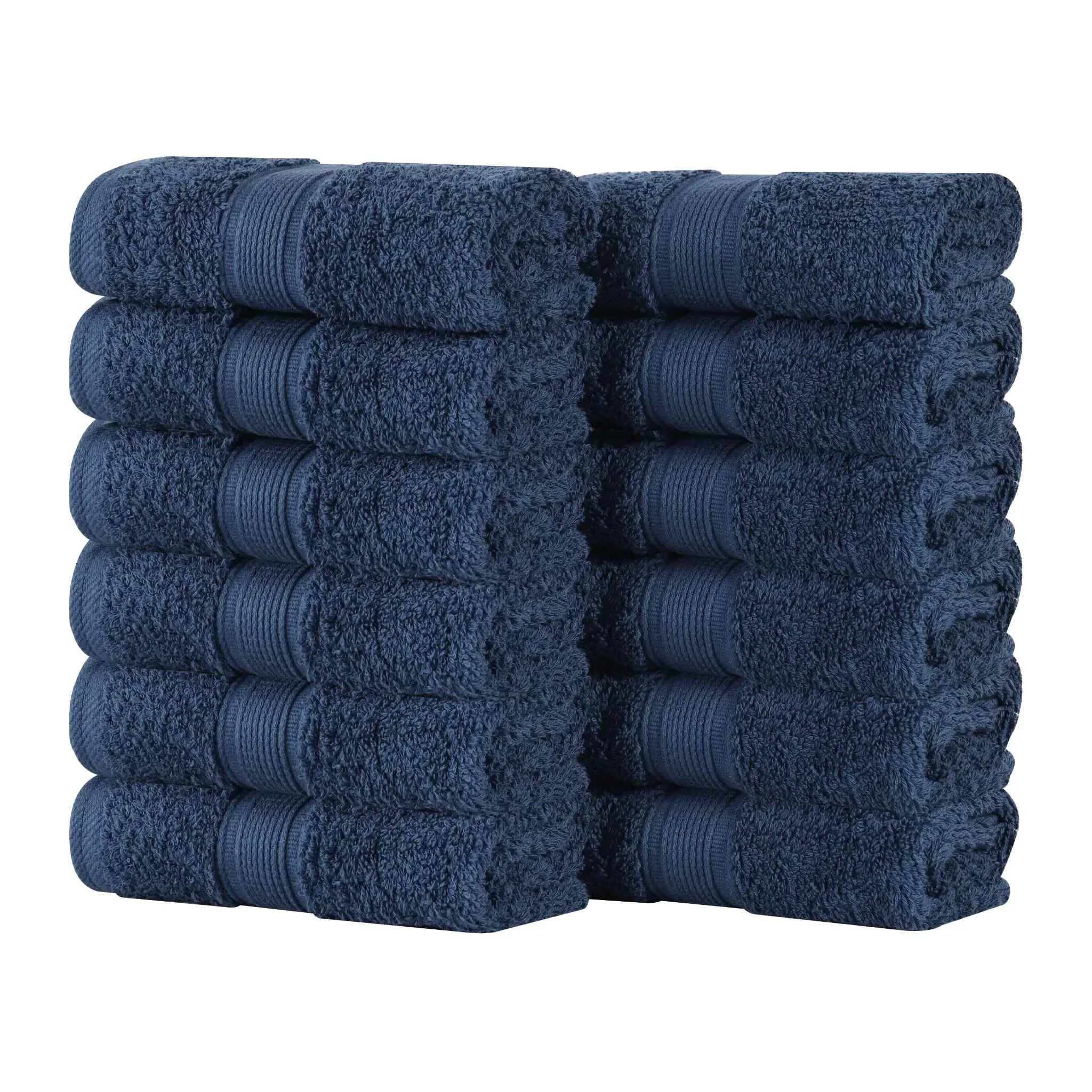 This 12 – piece towel set offers a blend of style and functionality. Crafted with expert craftsmanship, the towels are made of soft, absorbent cotton. The multiple neutral and earthy tones like black, forest green, and navy blue, along with the decorative textured borders, add a touch of luxury and refinement to your bathroom.