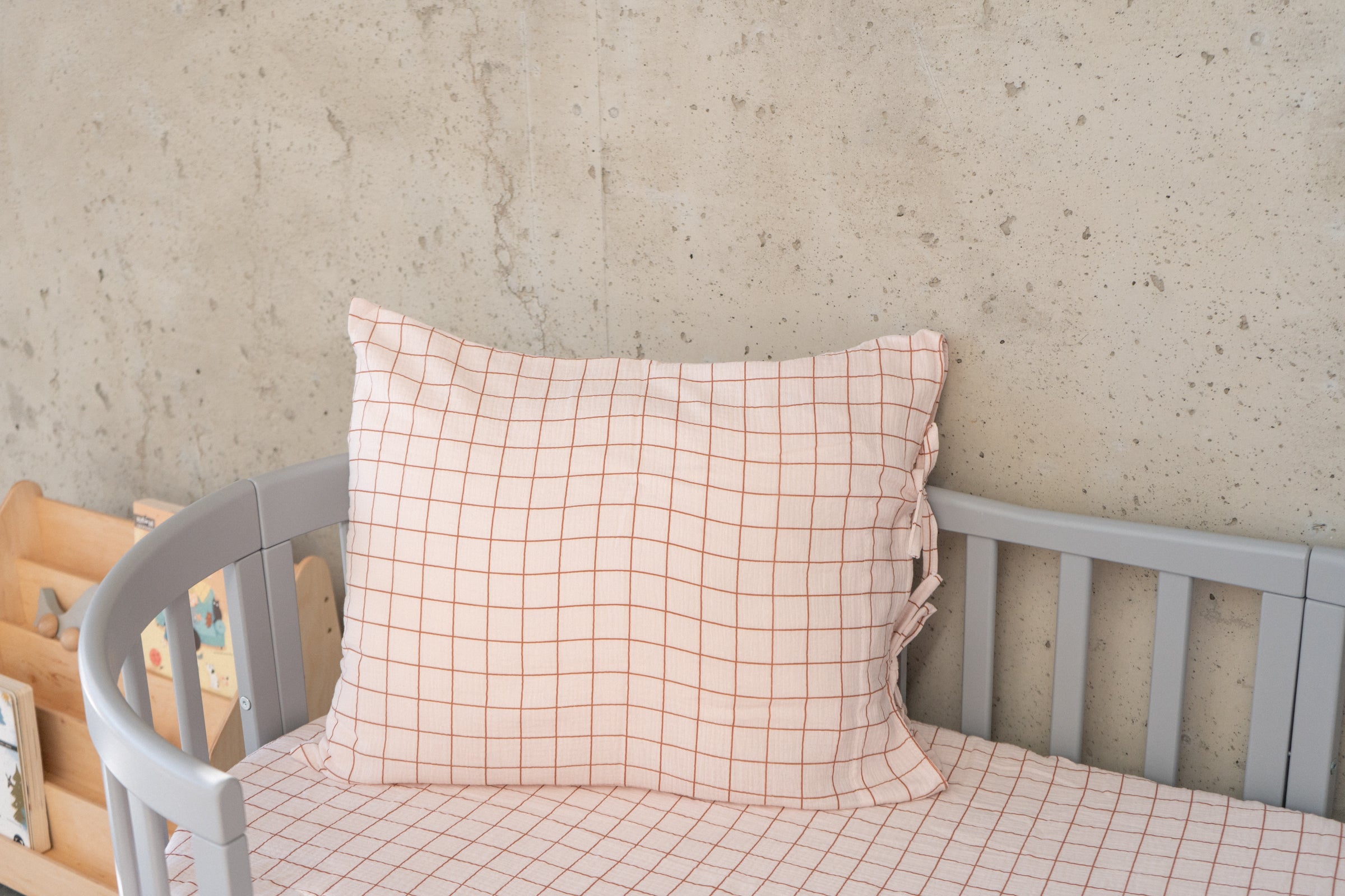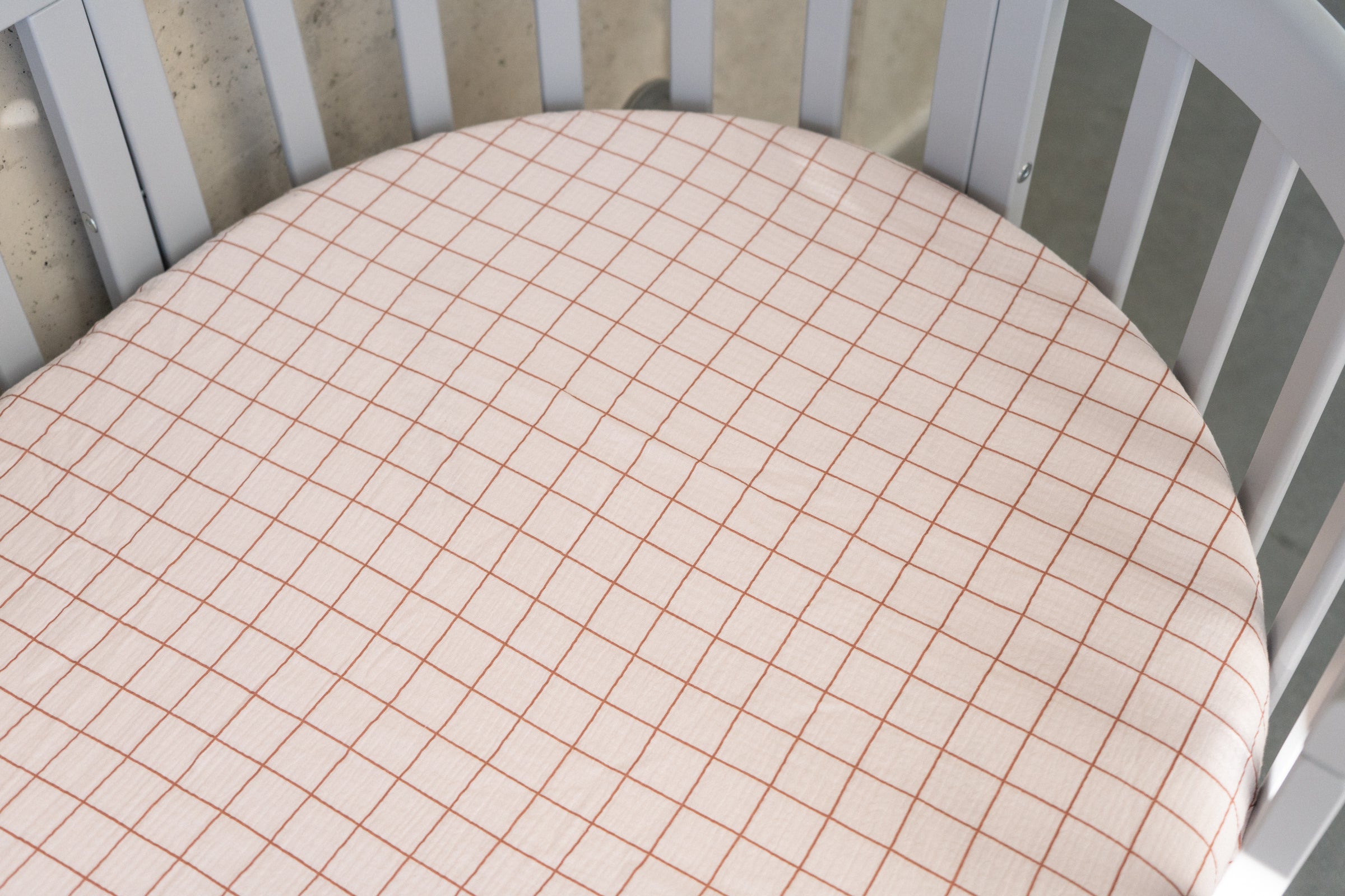 Add a sweet and timeless touch to your nursery with our Pink Checked fitted sheet. Made from soft and breathable cotton muslin, it features a delicate pink check pattern — charming, gentle, and perfect for both modern and vintage-inspired baby rooms. The elasticated edges ensure a snug fit and keep the sheet securely in place, so your little one can rest and play comfortably. Available in multiple sizes to fit cribs, toddler beds, or changing baskets. Product details: • Fabric: 100% cotton muslin (double gauze) — soft and breathable • Pattern: Pink check • Sizes: Available from crib to single bed • Fit: Elasticated edges for a secure fit • Care: Machine wash at 40°C • Preparation time: 2–3 business days • Handmade with care in the Netherlands by Matuu Perfect for: • Crib or toddler bed — ideal for babies and young children • Warm, cozy, and feminine nursery styling • Matching with Matuu bedding, canopies, pillows, and décor • A sweet handmade gift for new parents or baby showers