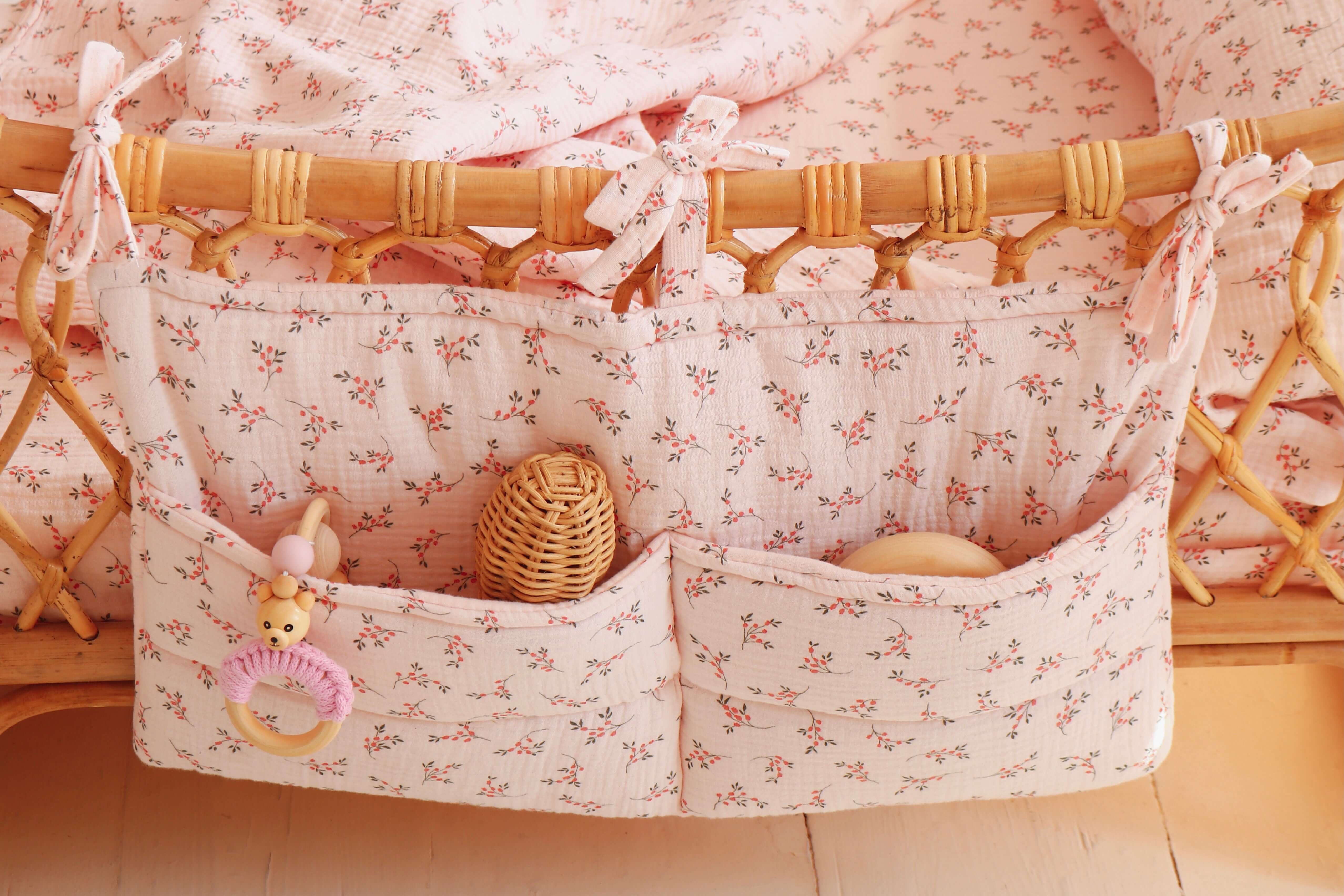 Keep your baby’s essentials organized with the Pinky Natural crib organizer – handcrafted from soft, breathable muslin cotton. With its delicate pink floral print, this practical bed pocket brings both charm and functionality to any nursery. Easily ties to a crib or playpen – perfect for pacifiers, wipes, or tiny toys. Product features: • Size: 50 x 32 cm • Material: 100% muslin cotton (OEKO-TEX certified) • Color: Light pink with floral pattern • Washing: Machine washable at 40°C • Preparation time: 2–3 business days • Handmade with care in the Netherlands by Roksana (Matuu)