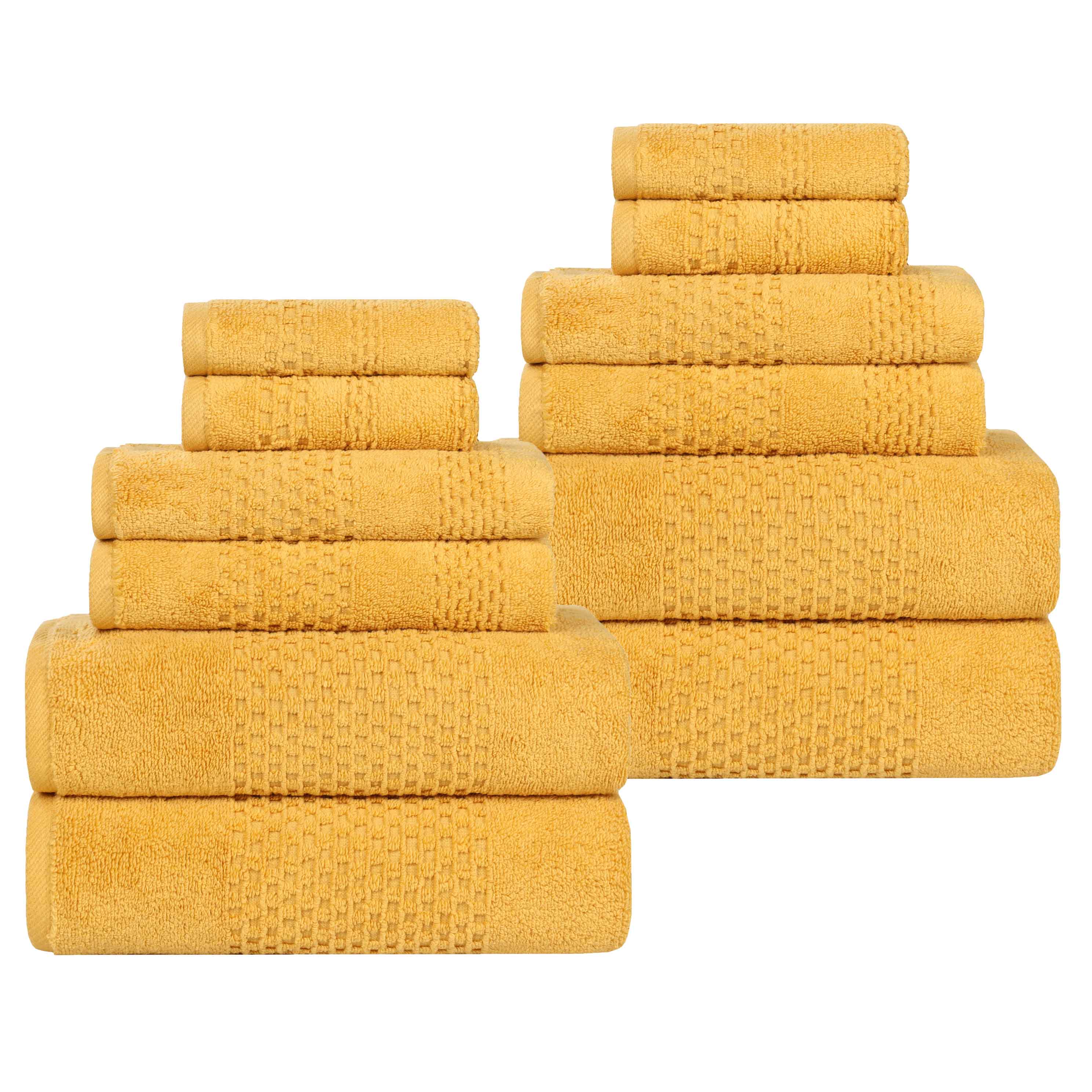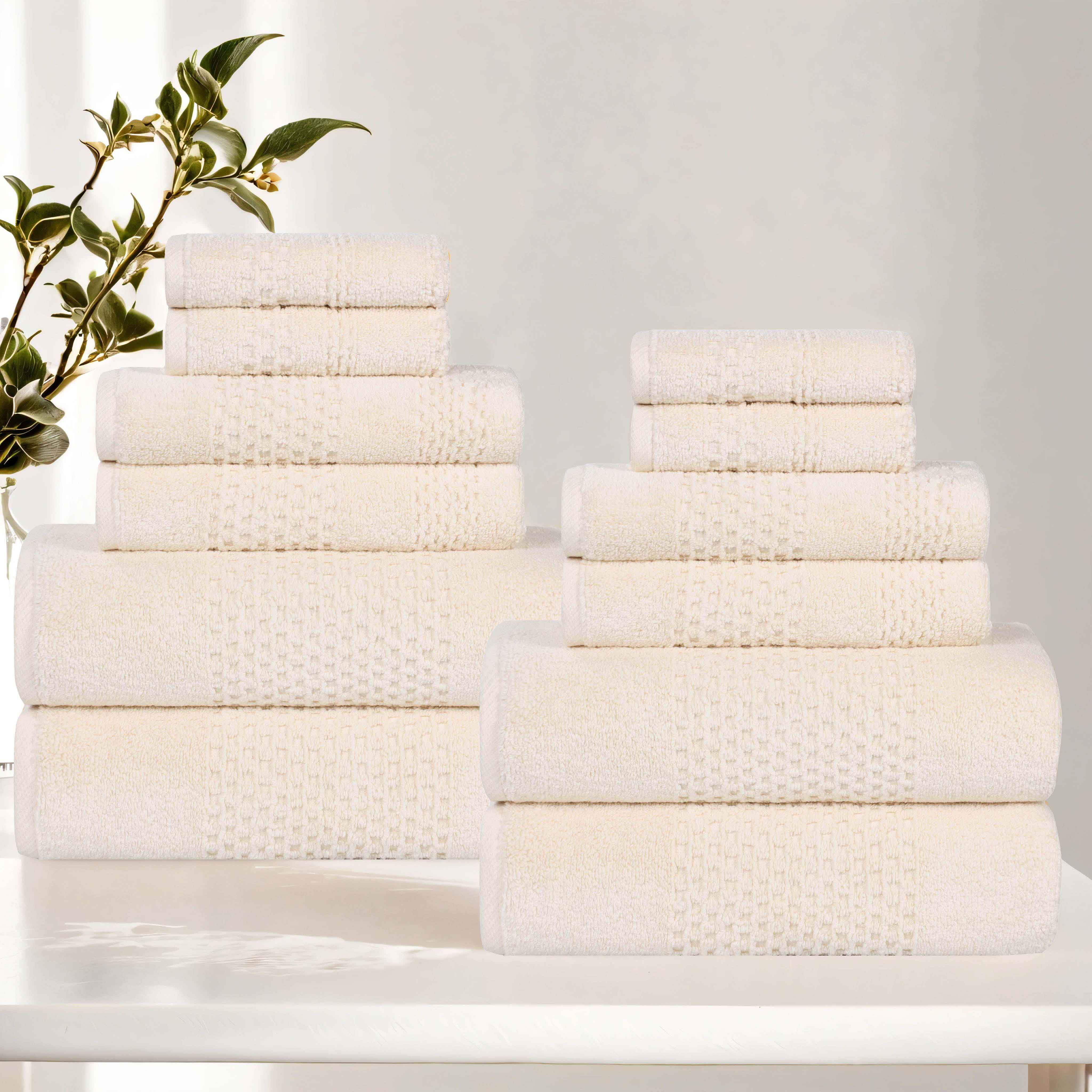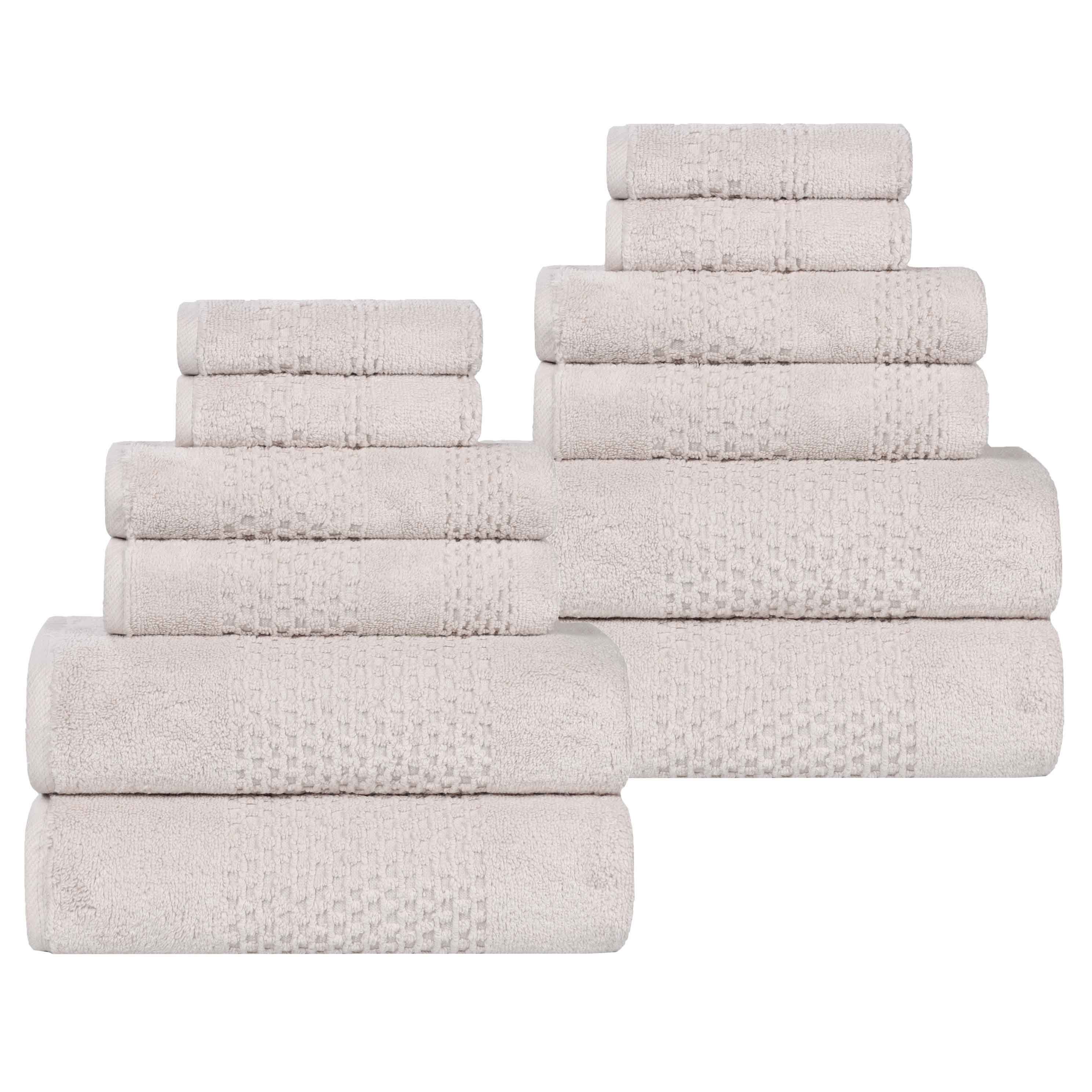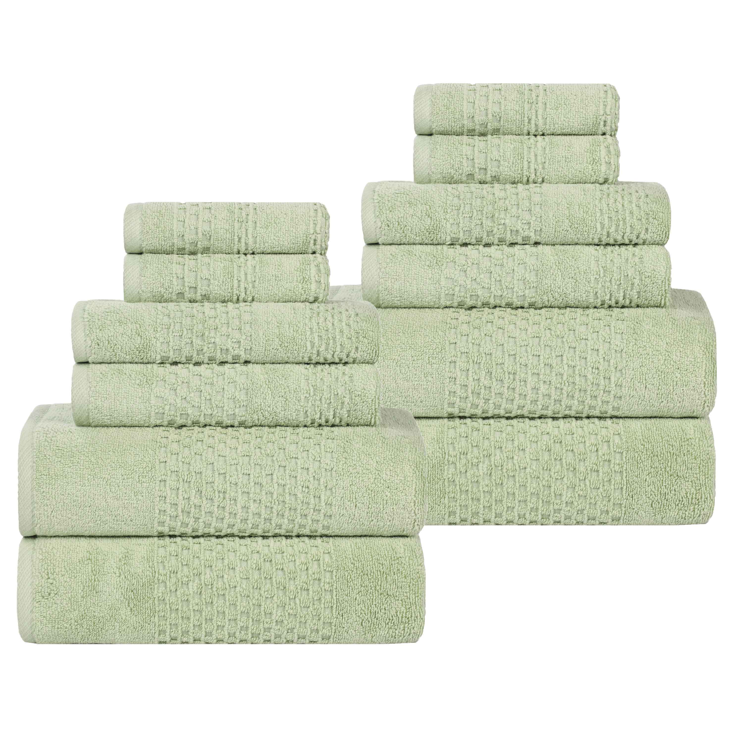 This is a 12 – piece towel set crafted from 100% cotton with a zero – twist weave. The towels come in a range of pastel shades like gold, green, ivory, silver, and white. They feature a thick, reinforced border and a subtle grid – like embossed pattern on the surface, enhancing both their aesthetic appeal and water – absorption capabilities.