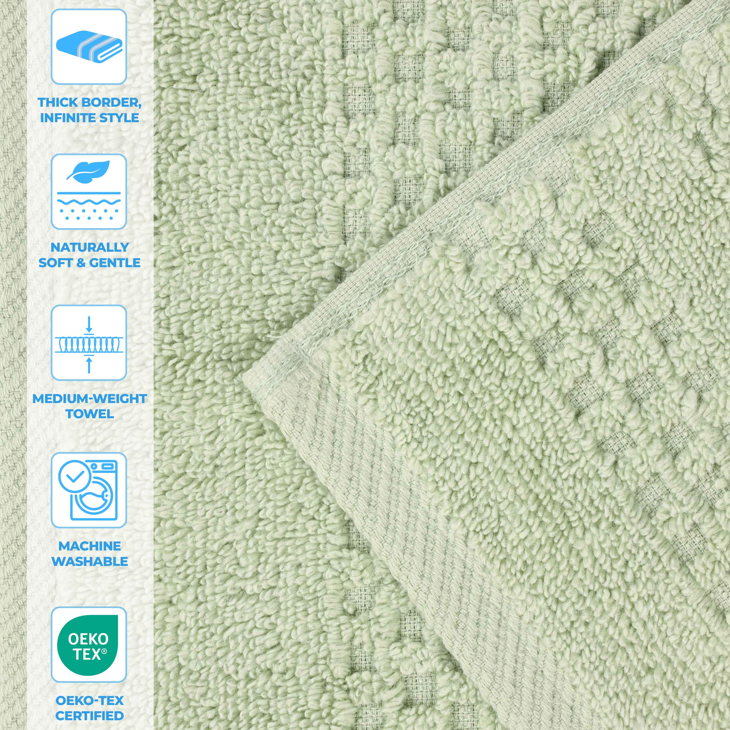 - High absorbency due to the dense, looped texture and zero – twist weave