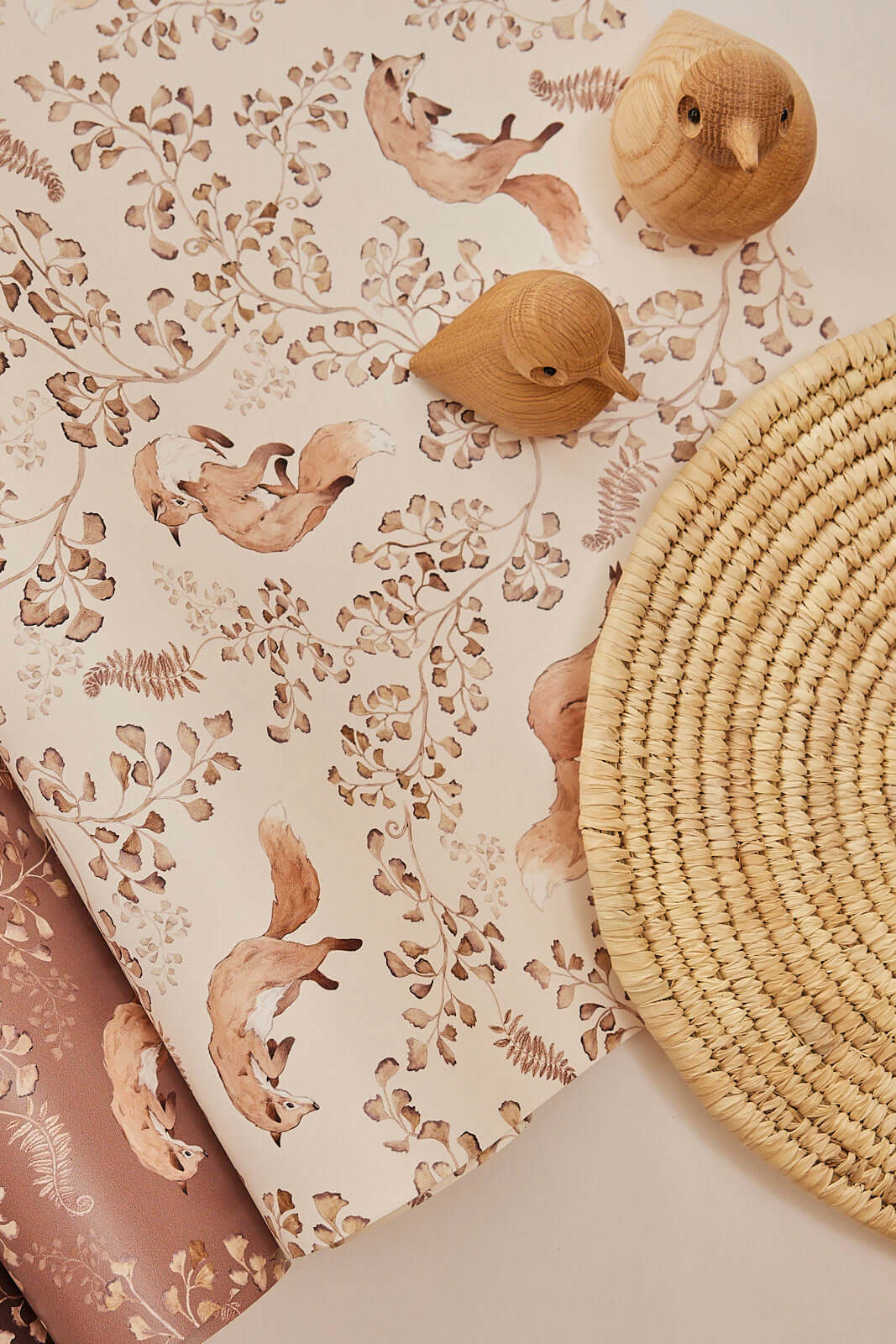 Bring soft woodland charm to your child’s room The Playful Fox on Beige wallpaper features hand-painted, cheerful foxes among delicate forest leaves on a warm beige background. This playful yet gentle design is perfect for nurseries, kids’ bedrooms, or playrooms, adding a cozy and nature-inspired vibe. Why you’ll love it Hand-painted playful fox design exclusive to Matuu Warm beige background with orange foxes and green leaves Ideal for woodland, Scandinavian, or playful kids’ interiors Printed to order – every roll crafted just for you Product details Design: Hand-painted playful foxes and forest leaves Colors: Soft cream, brown Material: Premium non-woven wallpaper (vlies) Finish: Matte, smooth surface Pattern repeat: Every 50 cm Production: Printed to order – freshly made for you Sizes & Installation Each roll contains 2 strips: • 50 × 270 cm • 50 × 310 cm 1 set covers 1 meter of wall width Installation: • Paste the wall (not the wallpaper) • Use non-woven wallpaper paste • Surface must be clean, smooth, and dry • Instructions: Download the step-by-step non-woven wallpaper guide How many sets do I need? Each set = 2 strips (50 cm wide) = 1 meter wall width Examples: • 2.3 m wall → order 3 sets • 4 m wall → order 4 sets Tip:add 5–10 cm extra as walls are rarely perfectly straight. Check – Double Check Please carefully inspect your wallpaper before installation. Verify colours, pattern alignment, and length immediately upon delivery. We allow a cutting tolerance of up to 1 mm per strip. If the deviation is larger, we will gladly reprint your order. *Once the wallpaper has been cut and installed, it is no longer possible to objectively determine whether any irregularity originates from production or from handling during installation. For this reason, claims raised after installation are very difficult to assess. Important Notes This wallpaper is not kept in stock – it’s printed to order. Not sure about the colour or pattern scale?We recommend ordering a sample first. Lead time & delivery Production time: 1–3 working days Delivery time: 2–7 working days (EU)