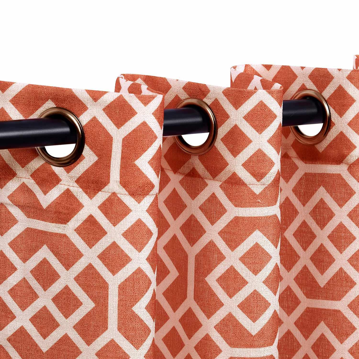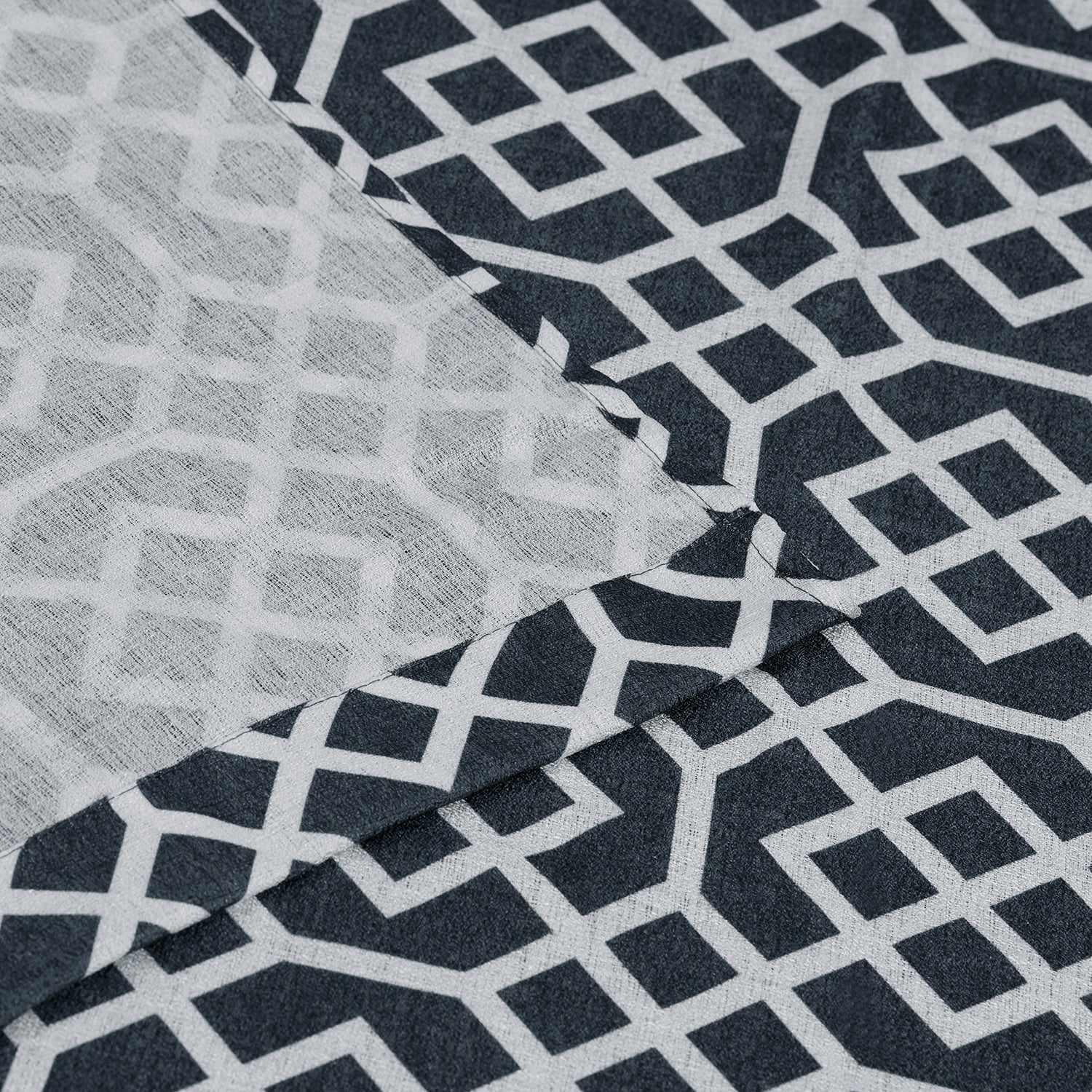 These curtain panels are crafted from a woven textile, offering durability and a smooth, sturdy texture. They feature a precise geometric lattice design, which repeats seamlessly across the fabric. With a range of color options and standard curtain sizing, they are perfect as window treatments.