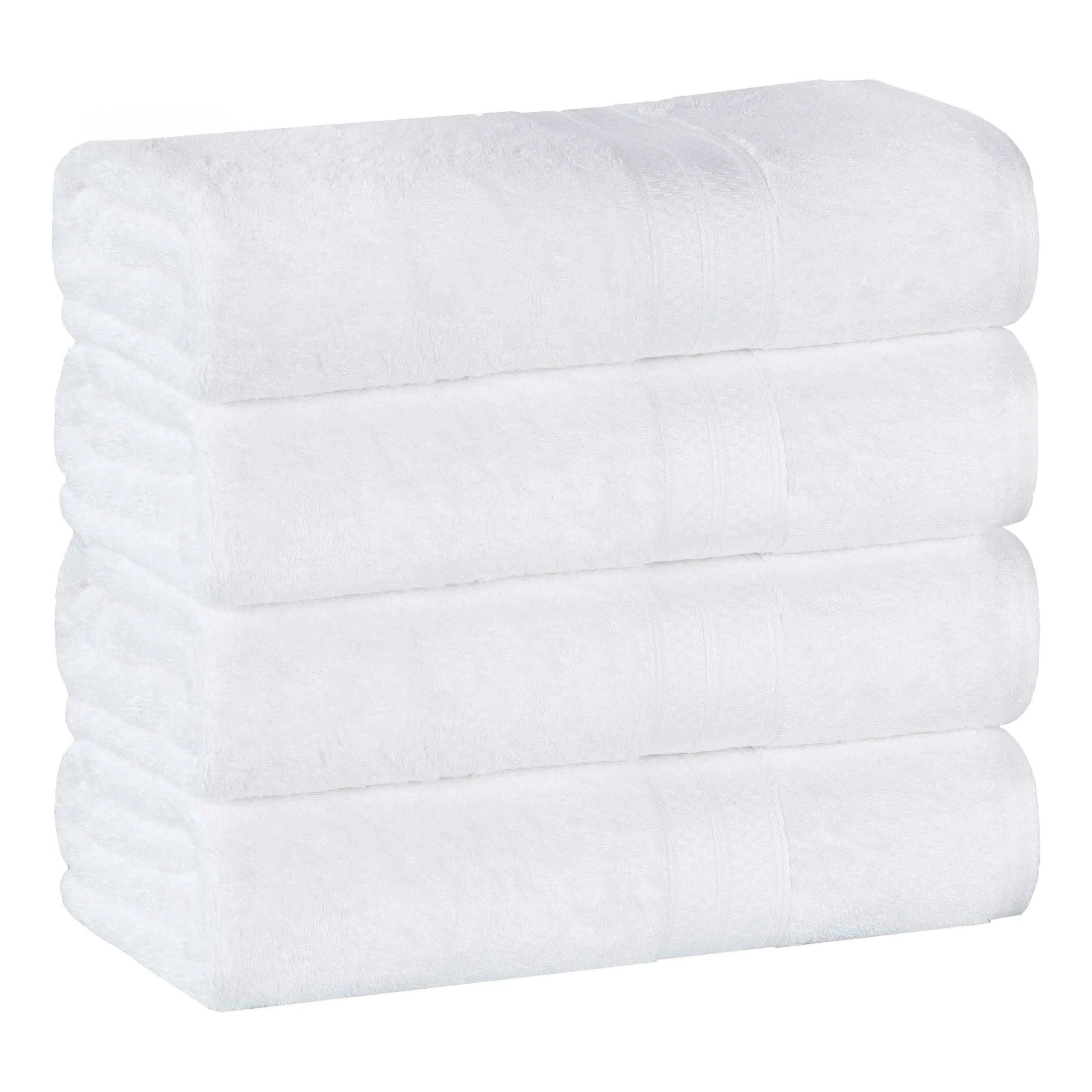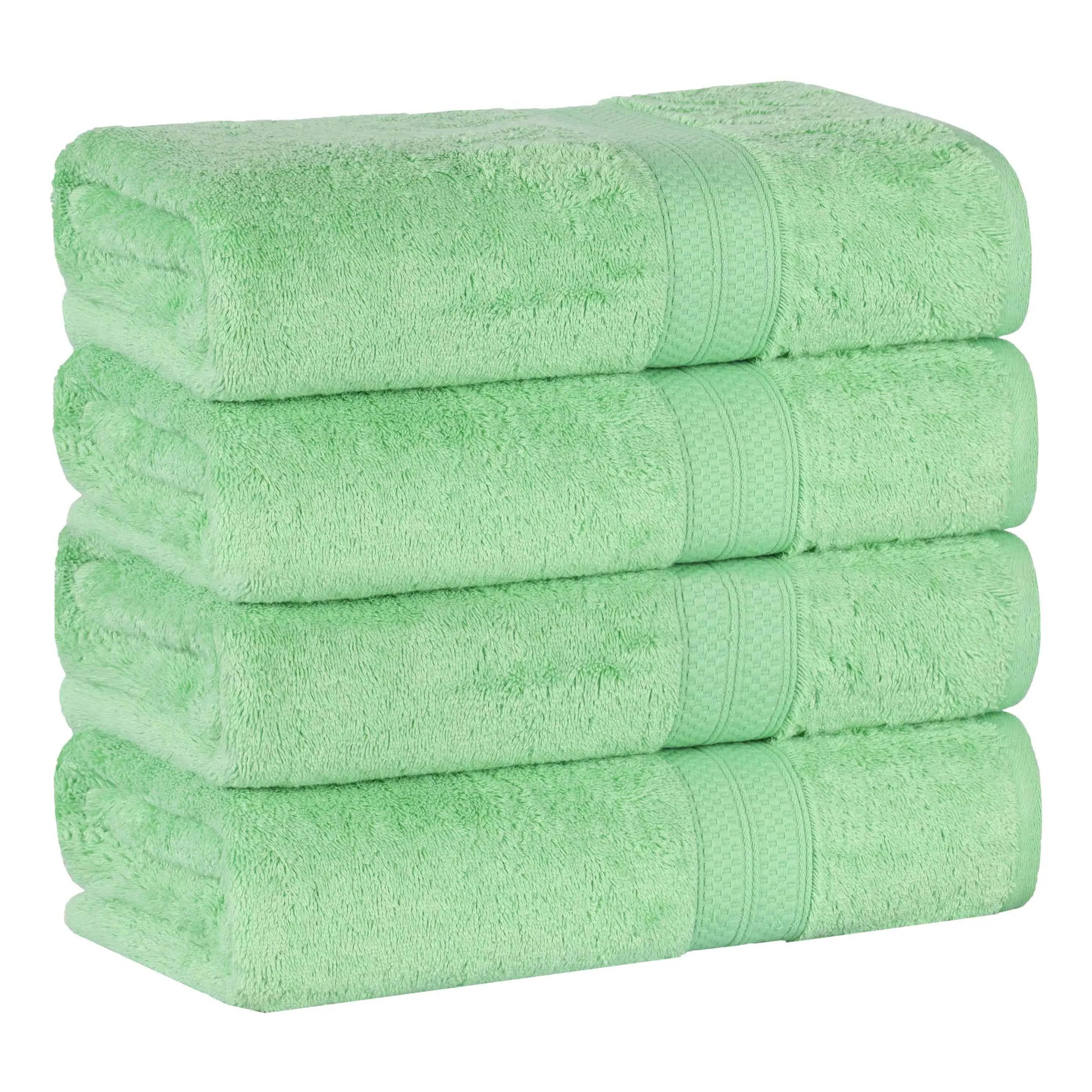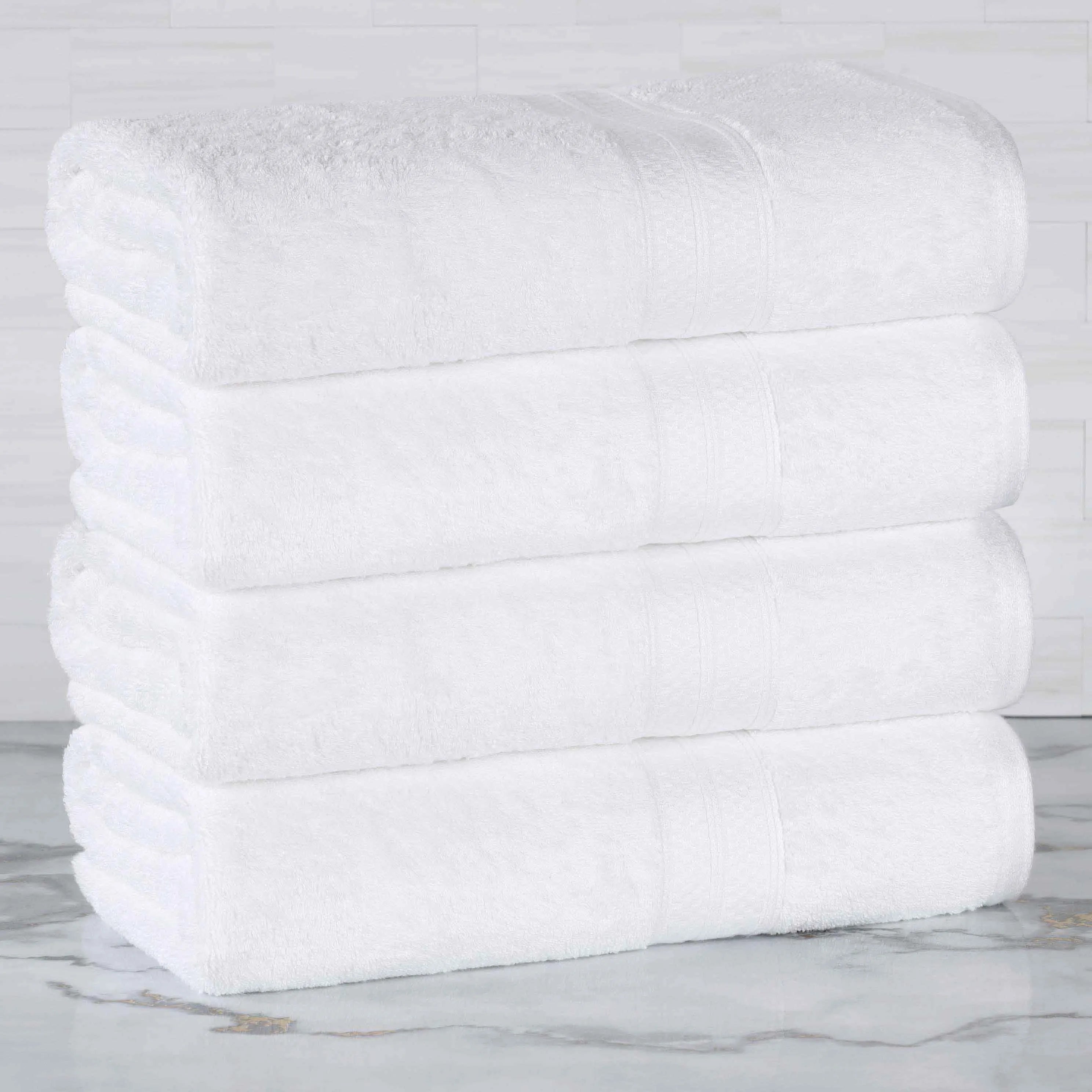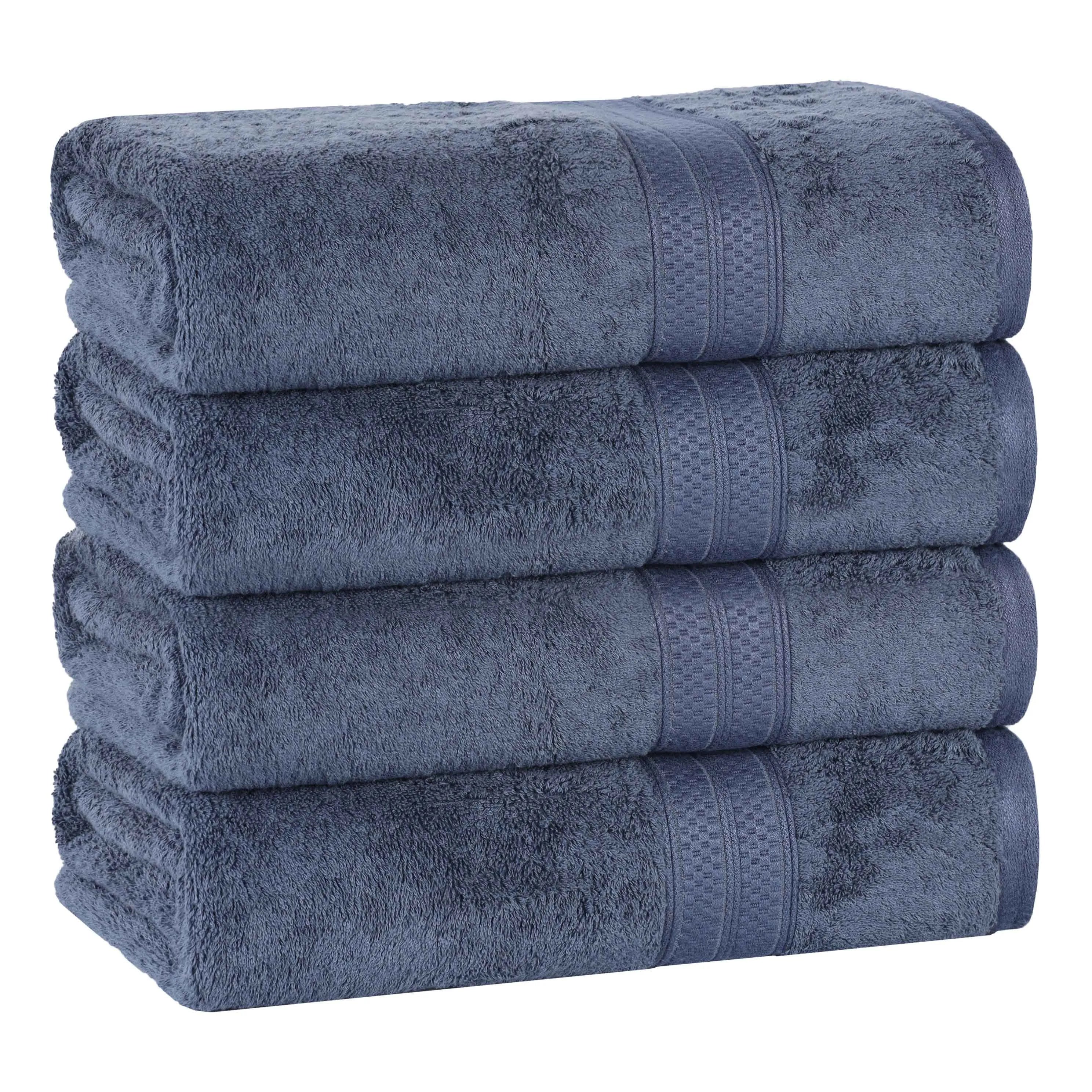 This is a set of bath towels crafted from a soft and absorbent fabric, likely a cotton blend. The towels come in a variety of solid colors and feature a decorative band along the edge, adding a touch of style. With their large size, they are perfect for drying off after a bath or shower.