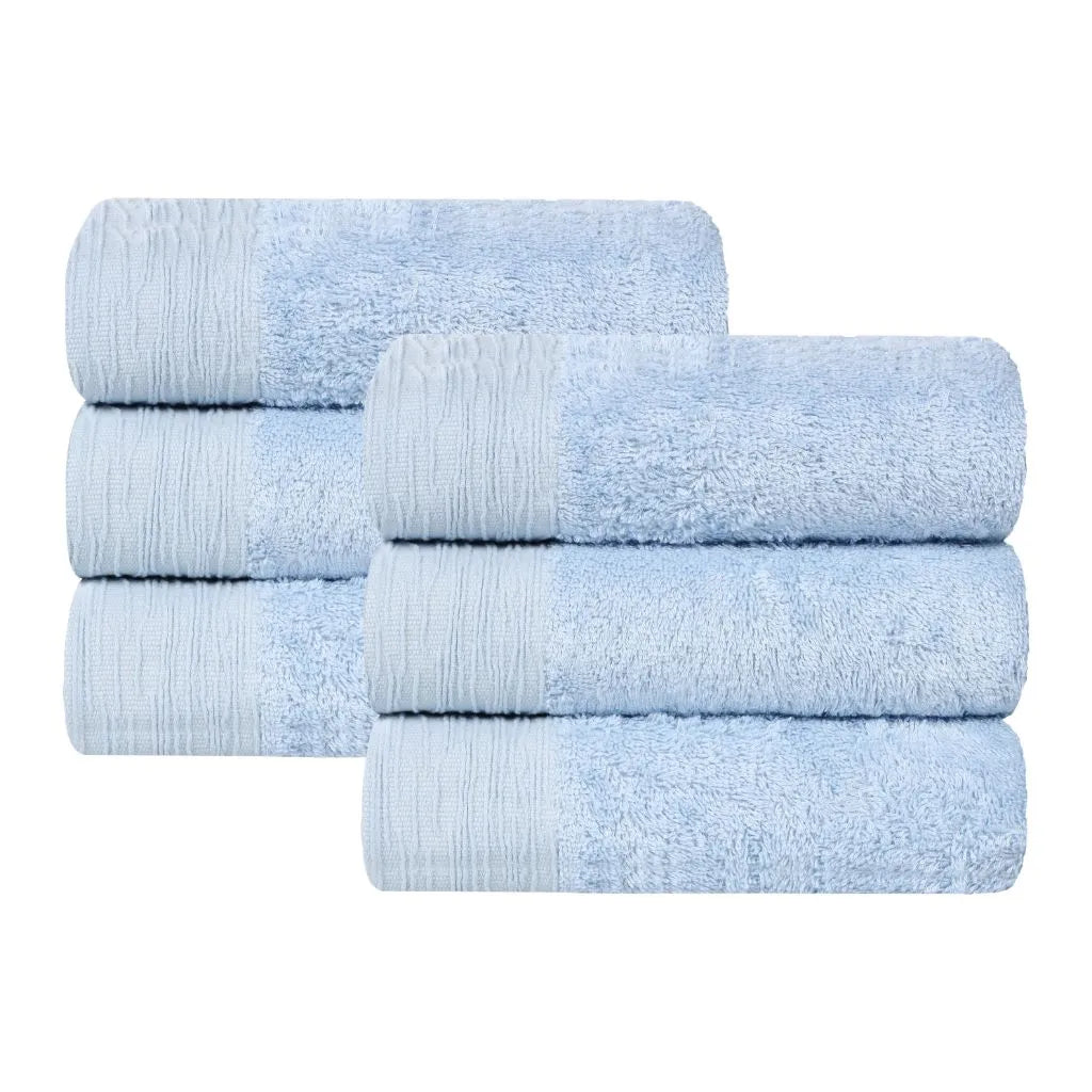 These towels are a set of high – quality bath towels crafted from soft, plush cotton. They come in a variety of solid colors, adding a touch of style to any bathroom. Each towel features a ribbed band along the folded edge, enhancing both its structural integrity and aesthetic appeal.