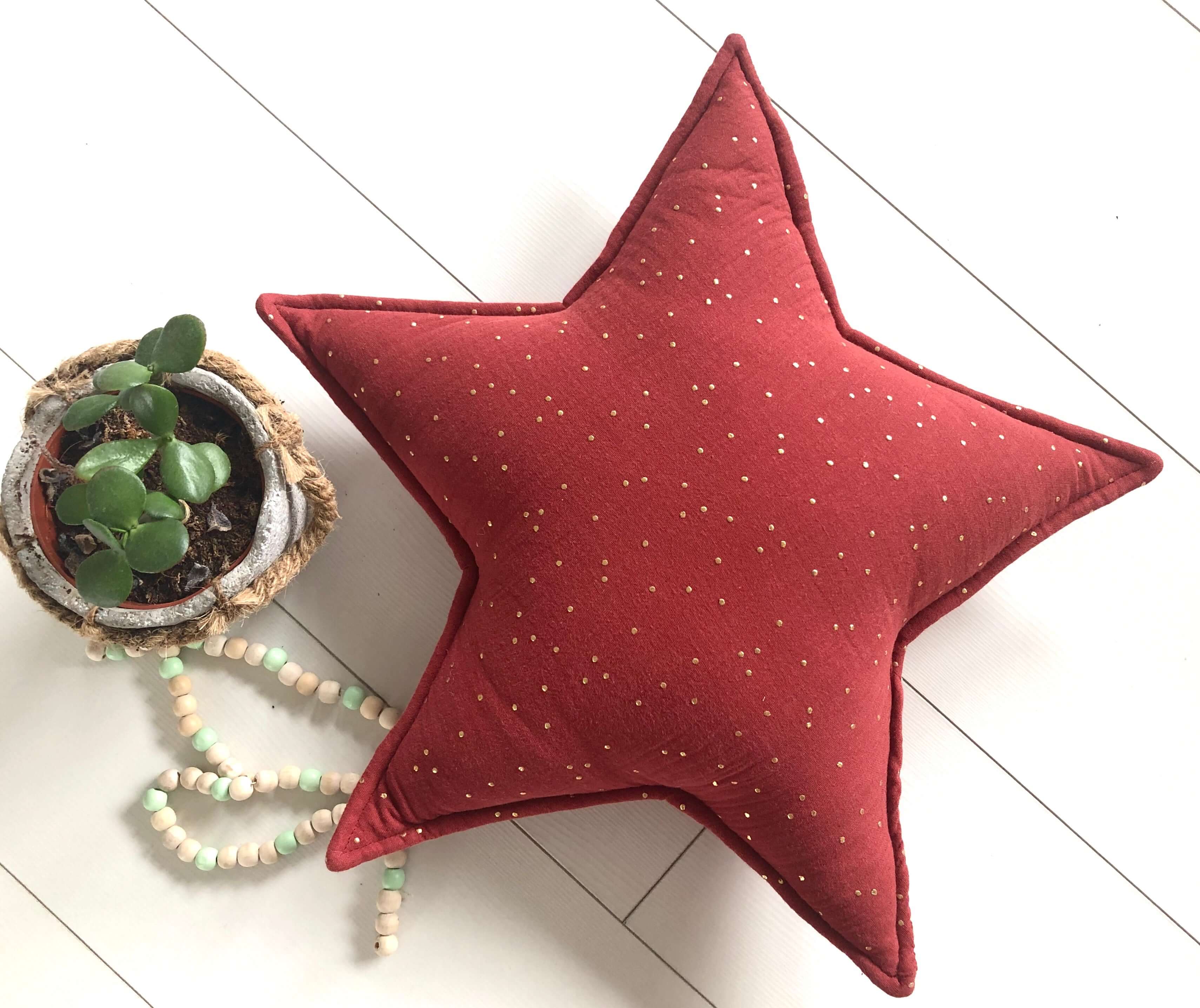 Red rust star with gold dots – double gauze pillow, terakota pillow