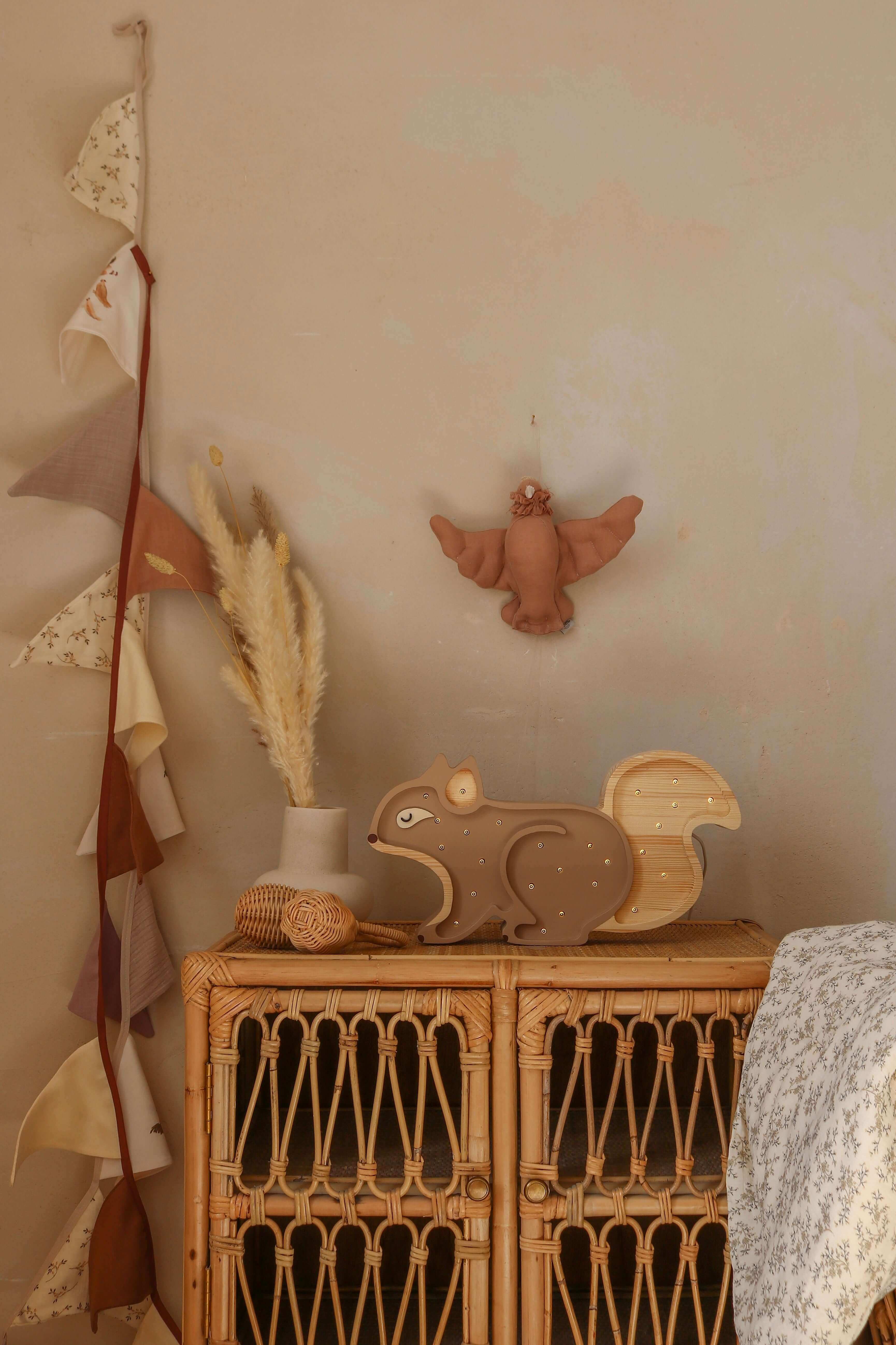 Add a charming retro touch to your child’s room with our Retro Hens garland. This beautiful pennant bunting is made from a mix of cotton and muslin fabrics – featuring cute retro hens on cotton, delicate floral muslin, and linen-look muslin in beige, all finished with a beige cotton trim. Each flag is double-sided and measures 20.5 cm high, while the full garland includes 9 flags and is approximately 250 cm long. With cotton ribbons on both ends, it’s easy to tie and hang wherever you like – perfect for decorating a nursery, kids’ room, or play area, and a lovely touch for birthday parties, baby showers, or seasonal celebrations. Product details Materials: Cotton and muslin fabrics (double gauze) Pattern: Retro hens, floral muslin, and beige linen-look muslin Trim: Beige cotton binding Length: approx. 250 cm Flags: 9 double-sided flags, 20.5 cm each Care: Machine wash at 40°C Made in: The Netherlands Delivery time: 1–3 business days Perfect for Nursery, toddler or kids’ room decoration Vintage, boho or farmhouse-inspired interiors Baby showers and birthdays A beautiful handmade gift