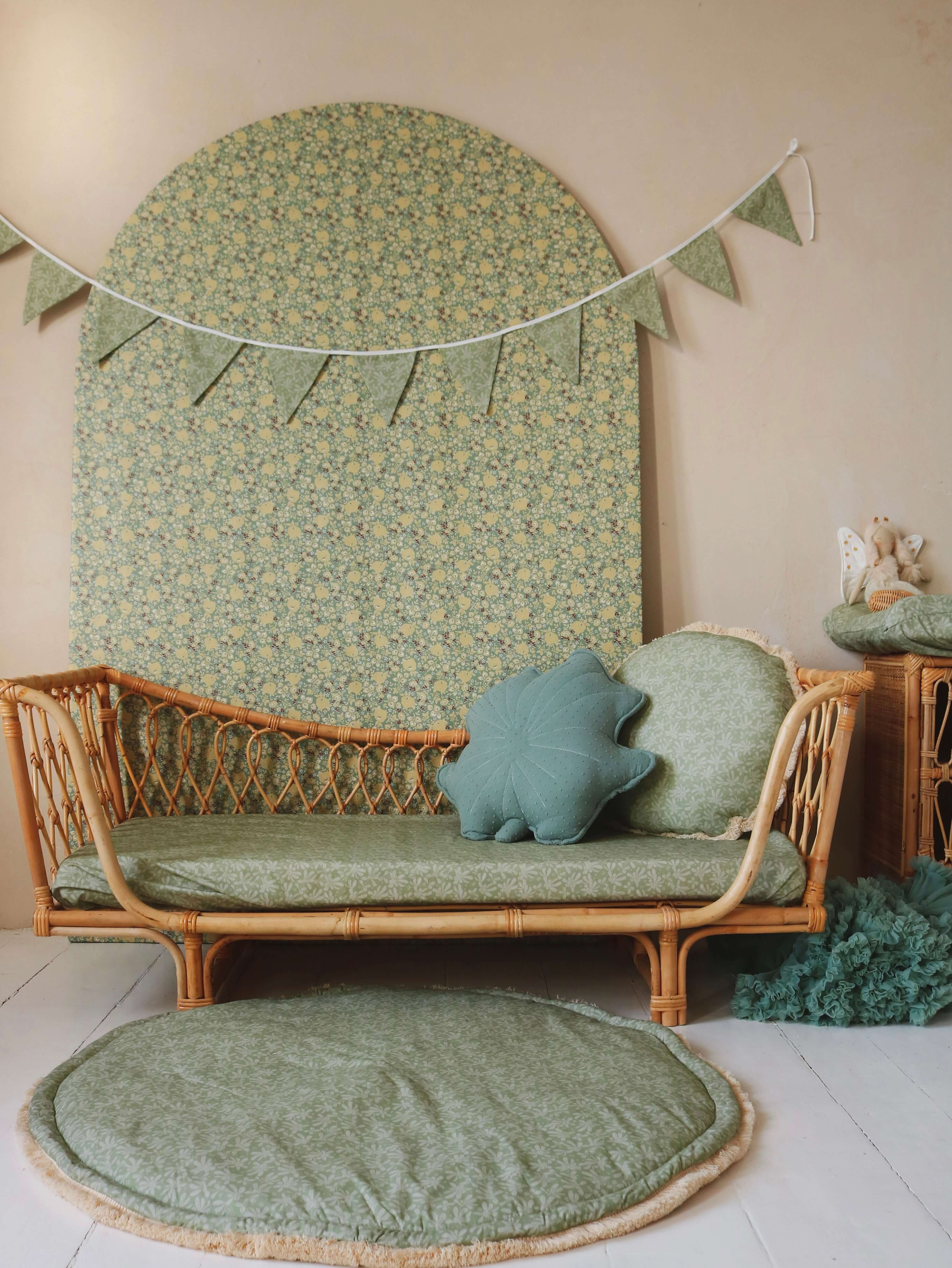 Discover the charm of the Retro Small Green Flower Wallpaper, exclusively designed for Matuu. Featuring delicate, small-scale green floral patterns, this wallpaper adds a vintage, cozy feel to any room β from childrenβs spaces to living rooms or hallways. Printed on high-quality non-woven wallpaper (53 Γ 280 cm per sheet), this wallpaper is sustainably produced in the Netherlands, using non-toxic, health-safe inks that meet European standards. Pattern details: Size: 53 Γ 280 cm per sheet Pattern repeat: every 53 cm Material: non-woven, paste-the-wall application Β Installation: β’ Paste the wall (not the wallpaper) β’ Use non-woven wallpaper paste β’ Surface must be clean, smooth, and dry β’ Instructions: Download the step-by-step non-woven wallpaper guide Production & delivery: Production time: 5β7 business days EU delivery: approximately 2β7 business days (depending on destination) How many sheets do you need? Example 1: Your wall is 2 m wide β order 4 sheets (4 Γ 0.53 m) Example 2: Your wall is 3.5 m wide β order 7 sheets (7 Γ 0.53 m) Not sure? Contact us: [email protected] β weβre happy to help! Check β Double Check Please carefully inspect your wallpaper before installation. Verify colours, pattern alignment, and length immediately upon delivery. We allow a cutting tolerance of up to 1 mm per strip. If the deviation is larger, we will gladly reprint your order. *Once the wallpaper has been cut and installed, it is no longer possible to objectively determine whether any irregularity originates from production or from handling during installation. For this reason, claims raised after installation are very difficult to assess. Important Notes This wallpaper is not kept in stock β itβs printed to order. Not sure about the colour or pattern scale?We recommend ordering a sample first. Application : Apply paste to the wall. Place the wallpaper strips on the pasted wall. Smooth with a roller or squeegee, removing air bubbles. Align the next strip to match the pattern. Allow to dry completely.