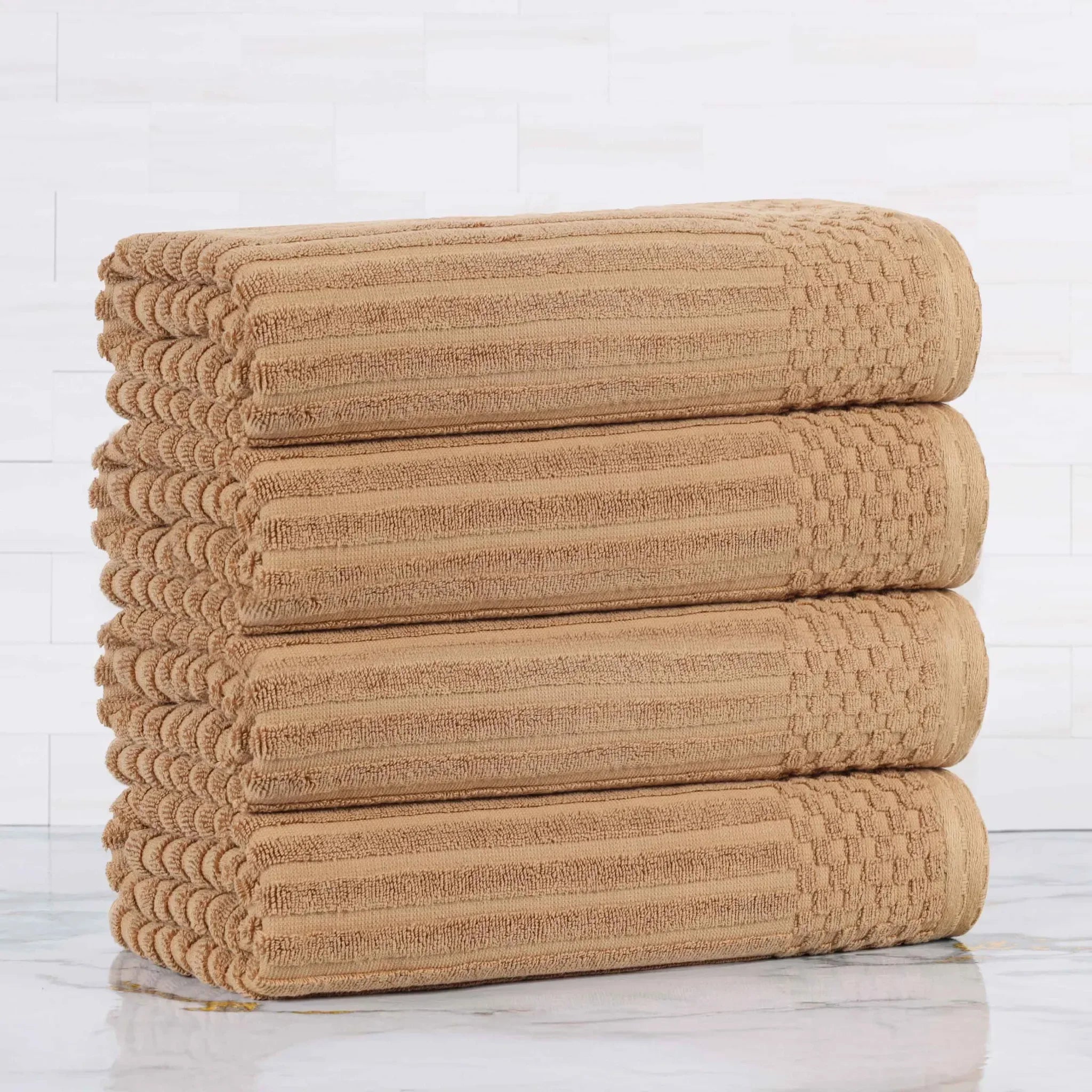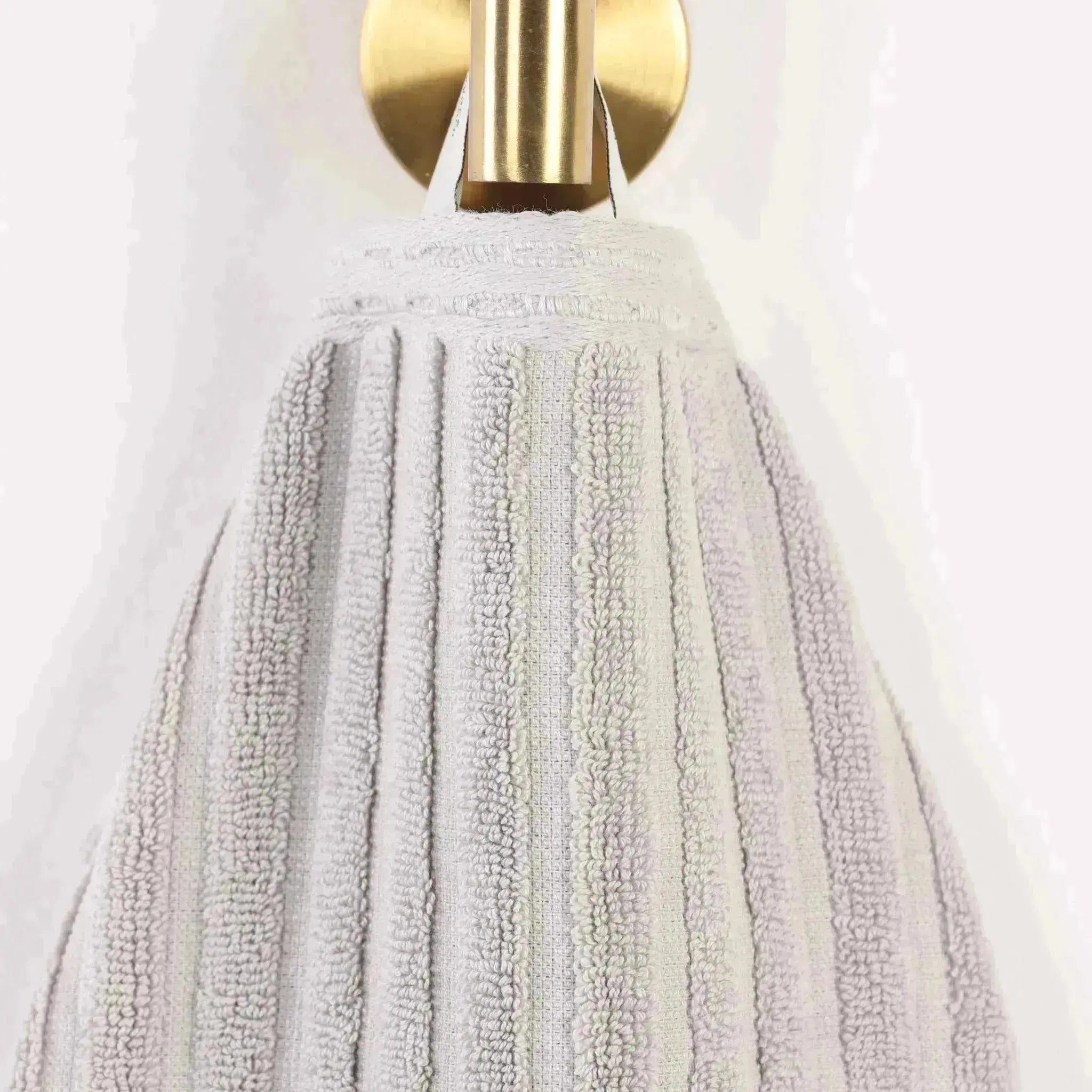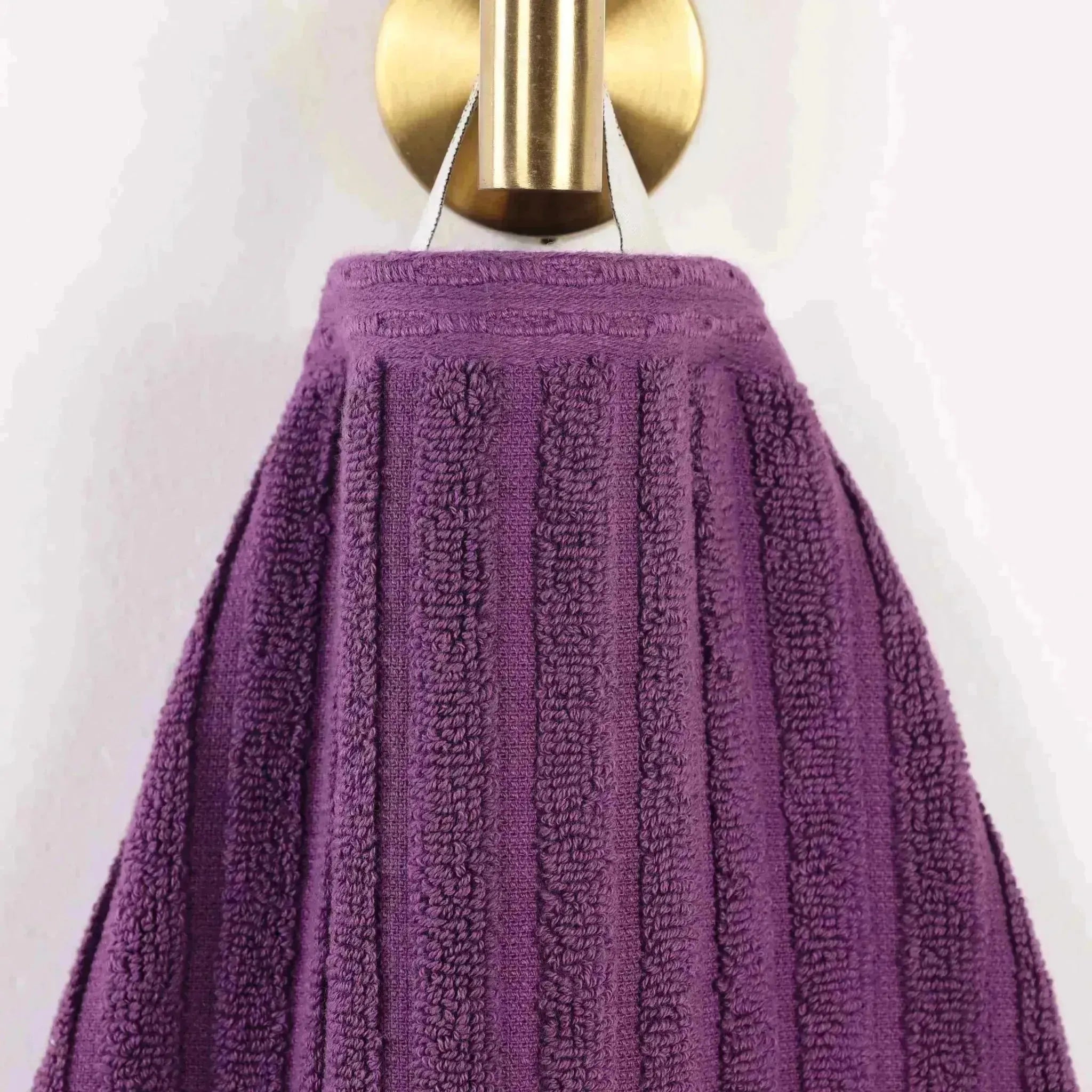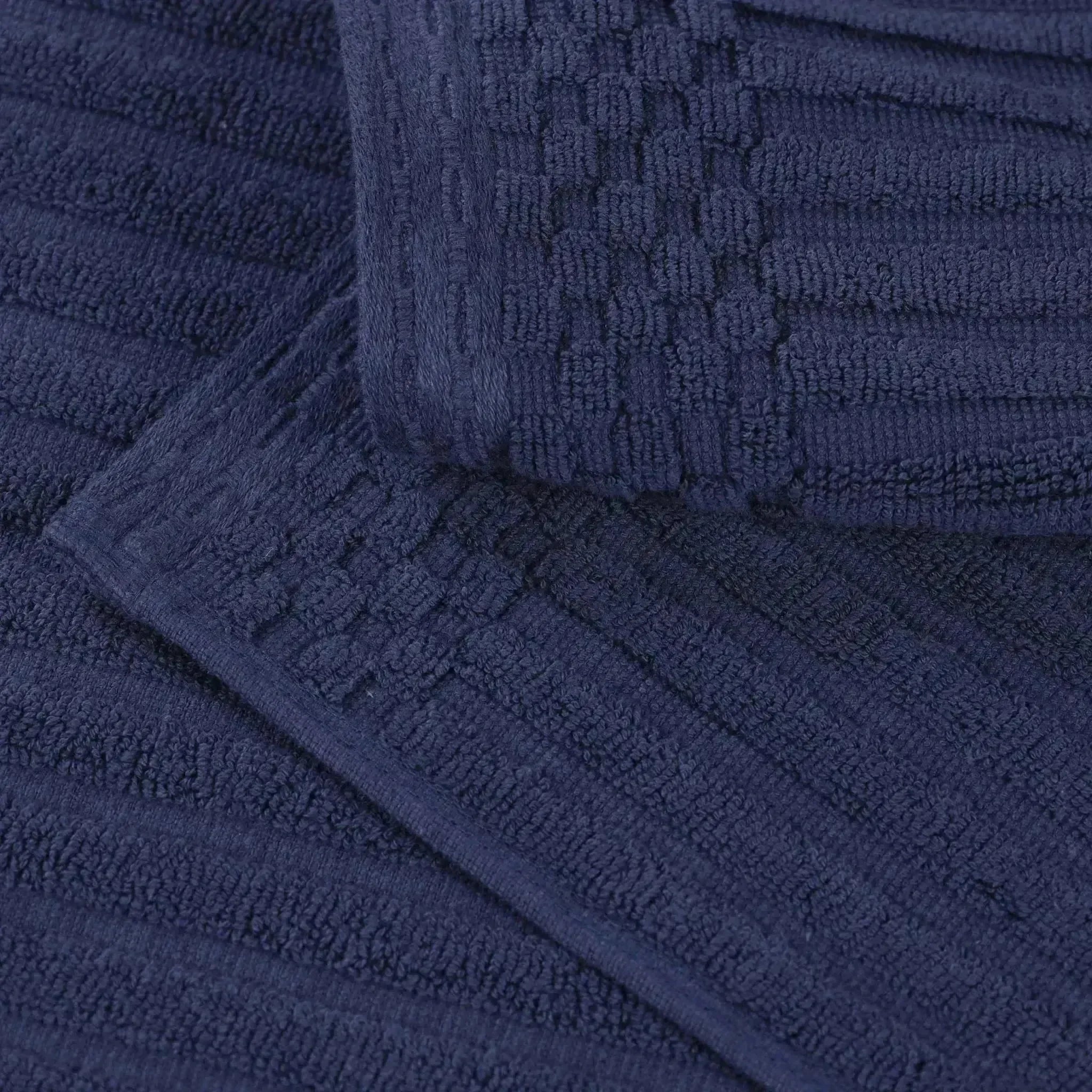 This is a set of towels crafted from 100% cotton, offering both softness and high absorbency. The towels feature a ribbed texture on the main body and a textured, grid – like border, adding a touch of style. They come in a wide range of solid colors, making them versatile for different bathroom decors.
