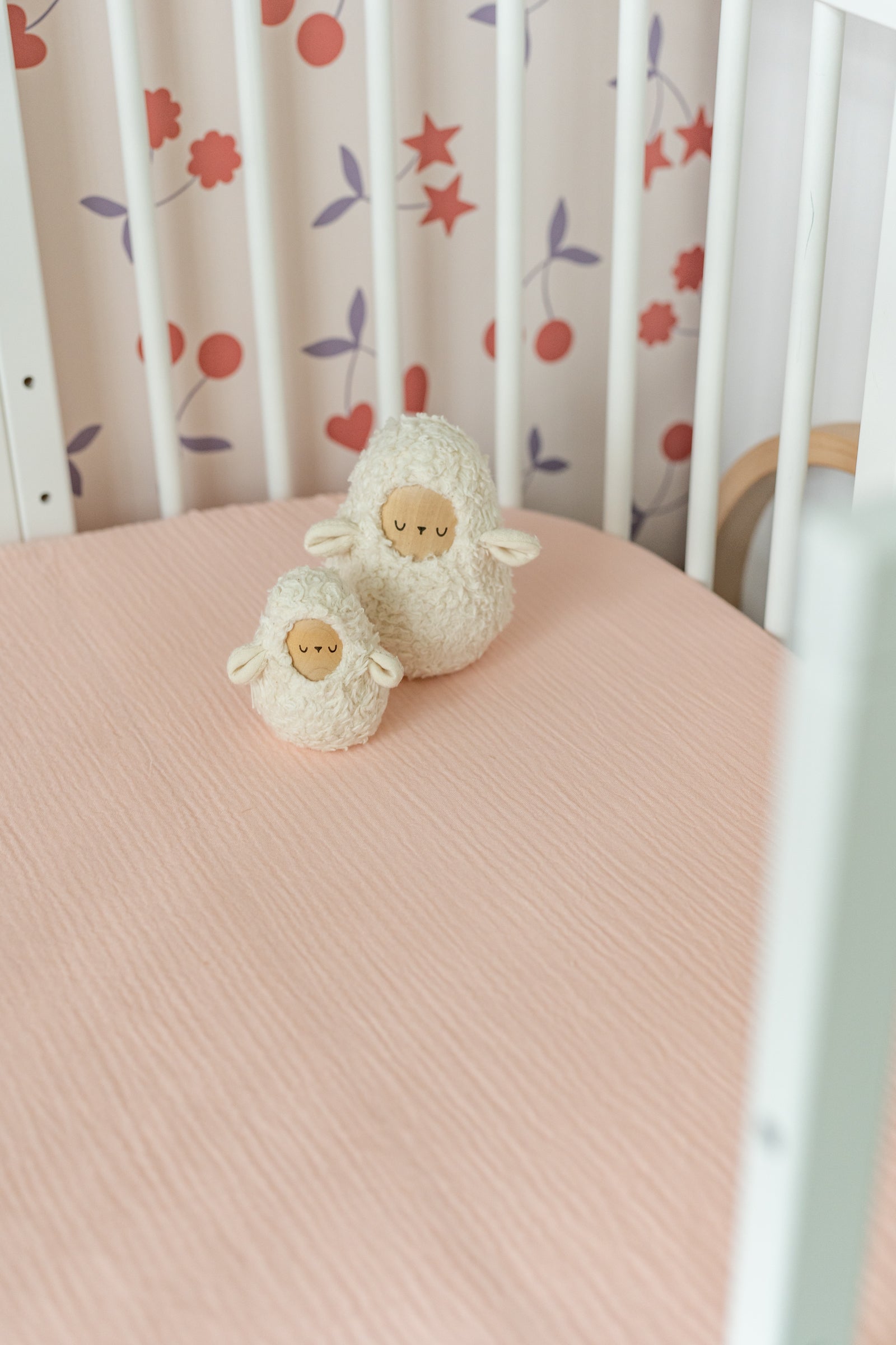 Add warmth and softness to your baby’s sleeping space with our Rosy Cloud fitted sheet – made from double gauze cotton muslin in a muted dusty pink shade. This gentle, breathable fabric is perfect for sensitive skin and brings a calm, cozy touch to any nursery. Designed to fit snugly around a crib or toddler mattress, the sheet stays in place thanks to its elasticated edges. The fabric is OEKO-TEX® certified, lightweight, and easy to care for – making it both beautiful and practical. Available in multiple sizes to grow with your child. A perfect choice for boho, neutral or vintage-style baby rooms. Product details: Fabric: 100% cotton muslin (double gauze), OEKO-TEX® certified Color: Dusty pink (Rosy Cloud) Sizes: Available from crib to single bed Fit: Elastic edges for a secure fit Care: Machine wash at 40°C, air dry, do not tumble dry Preparation time: 2–3 next business days Handmade in the Netherlands by Matuu Perfect for: Baby crib or toddler bed Soft and breathable baby bedding Calm, gender-neutral nursery décor Thoughtful gift for new parents