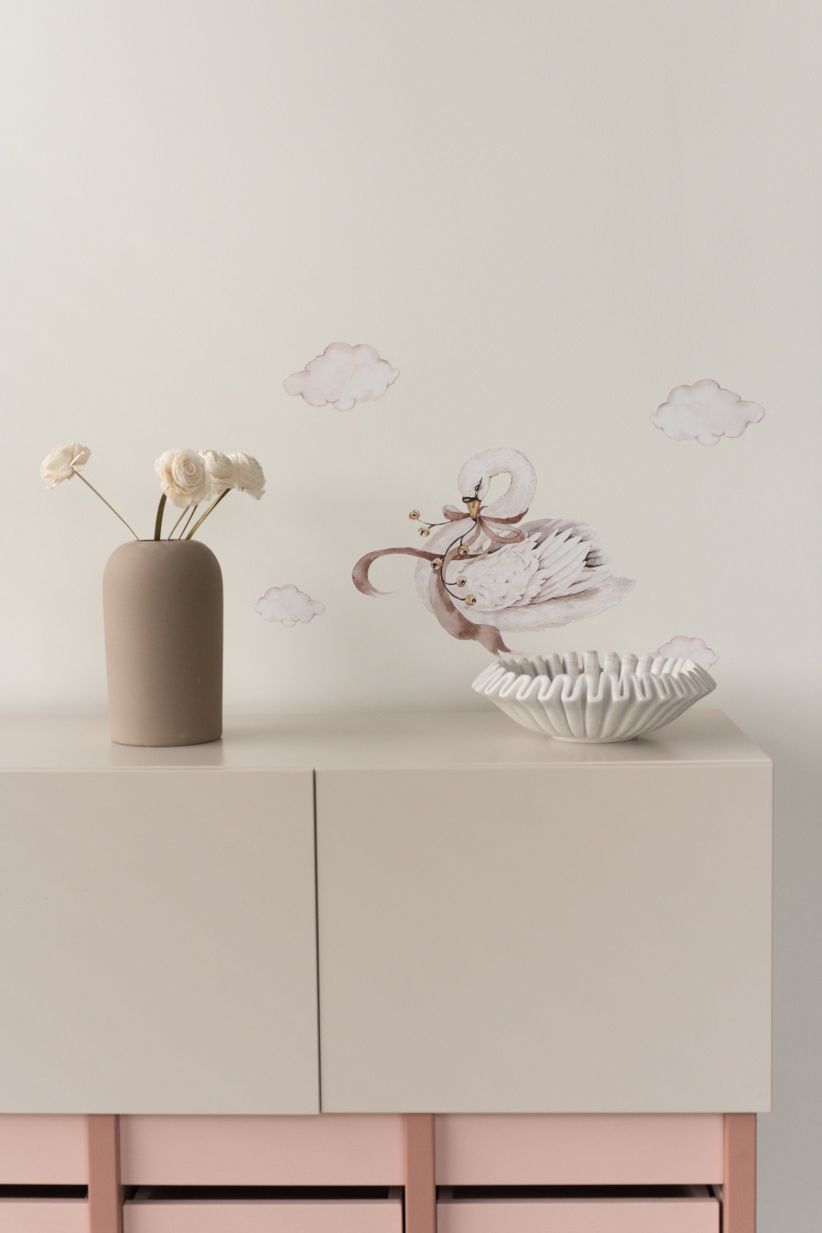 A gentle, dreamy addition to your nursery โ just peel, stick, and let the magic begin. Create a serene space with the Sitting Swan Wall Sticker by Matuu. This delicate design features a graceful swan in a seated pose, surrounded by soft neutral tones and subtle boho details. Perfect for above a crib, reading nook, or dresser, this calming artwork adds warmth and poetic charm to any baby or toddlerโs room. Printed on high-quality, eco-friendly matte vinyl, the sticker is safe for children, easy to apply, and removable without damaging walls. A timeless alternative to wallpaper for soft, minimalist interiors. Material Matte, self-adhesive PVC (95 ฮผm) Washable and fade-resistant EN 13501-1 B-s2-d0 fire safety certified Safe for childrenโs spaces Available sizes 30 x 50 cm Application Peel & stick โ no tools or glue needed For smooth, clean walls or furniture Full instructions: Processing time 5โ10 business days * Please note: Our wall stickers are printed to order and are therefore non-returnable, unless there is a defect or a mistake in printing. If you experience any issue with your order, please contact us and we will be happy to help. Perfect for: Boho or romantic-style nurseries Gender-neutral rooms Calm and dreamy baby spaces Baby shower or birthday gifts Scandinavian-inspired interiors