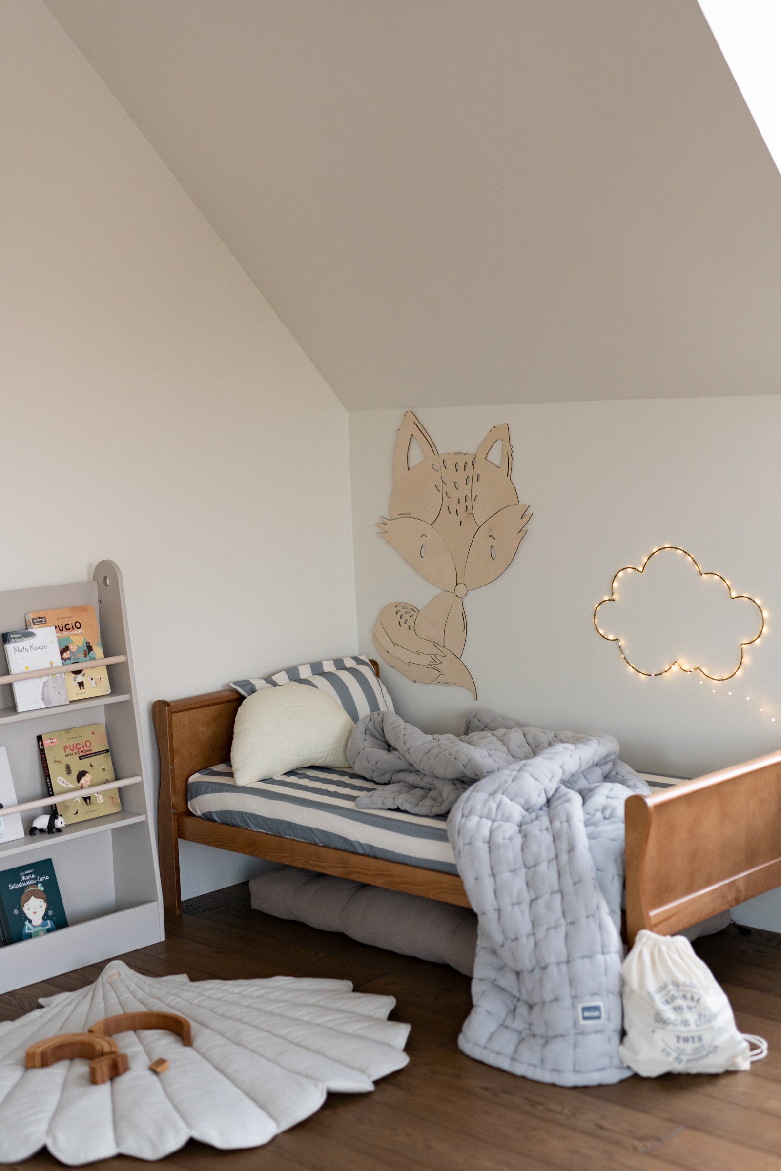 The Small Leaves & Beige Stripes Kids Quilt is a reversible muslin comforter designed for softness and versatility. Made from breathable, OEKO-TEX® certified cotton muslin with a light anti-allergenic filling, it keeps your little one cozy all year round. One side features a delicate small leaves print in soft earthy tones, while the other shows wide beige stripes – giving you two timeless looks in one quilt. Perfect as a baby comforter, toddler blanket, or lightweight bedspread, this piece adds warmth and style to boho, vintage, or neutral kids’ rooms. Handmade with care in the Netherlands, this quilt blends artisanal quality with everyday practicality. Product details: Fabric: 100% cotton muslin – OEKO-TEX® certified Filling: lightweight, anti-allergenic Design: reversible – small leaves & beige stripes Care: Machine wash at 30°C (gentle cycle), air dry, do not tumble dry Handmade in the Netherlands by Matuu Perfect for: Baby or toddler bedding Gender-neutral nurseries with a natural vibe Cozy blankets for naps and bedtime A thoughtful baby shower or first birthday gift