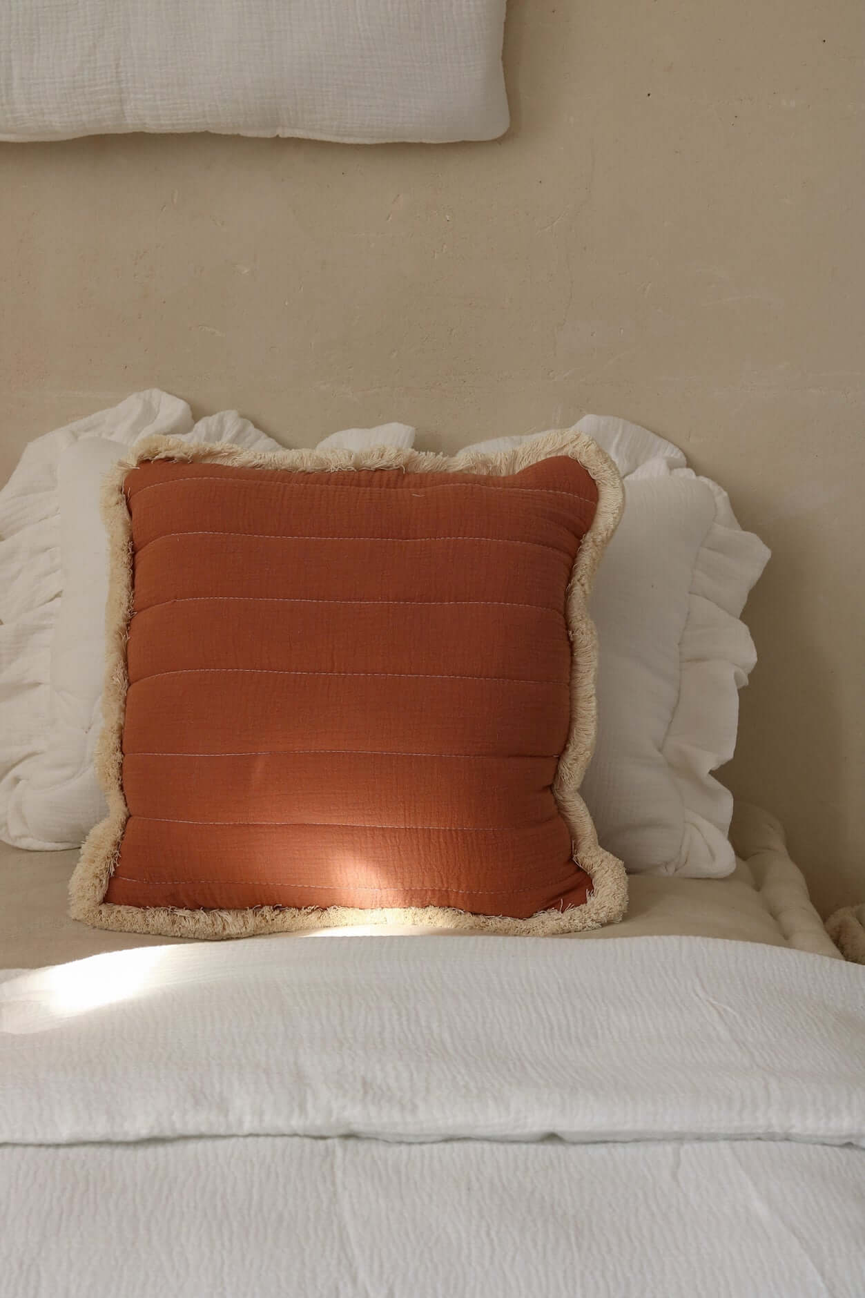 Gorgeous, peachย muslin pillow finished with cream fringes. Size – 40c40ย cm You can combine different pillows to discover better results. Washing instruction:Machine wash in 40 degrees, dry flat Processing time: 1-3 work days
