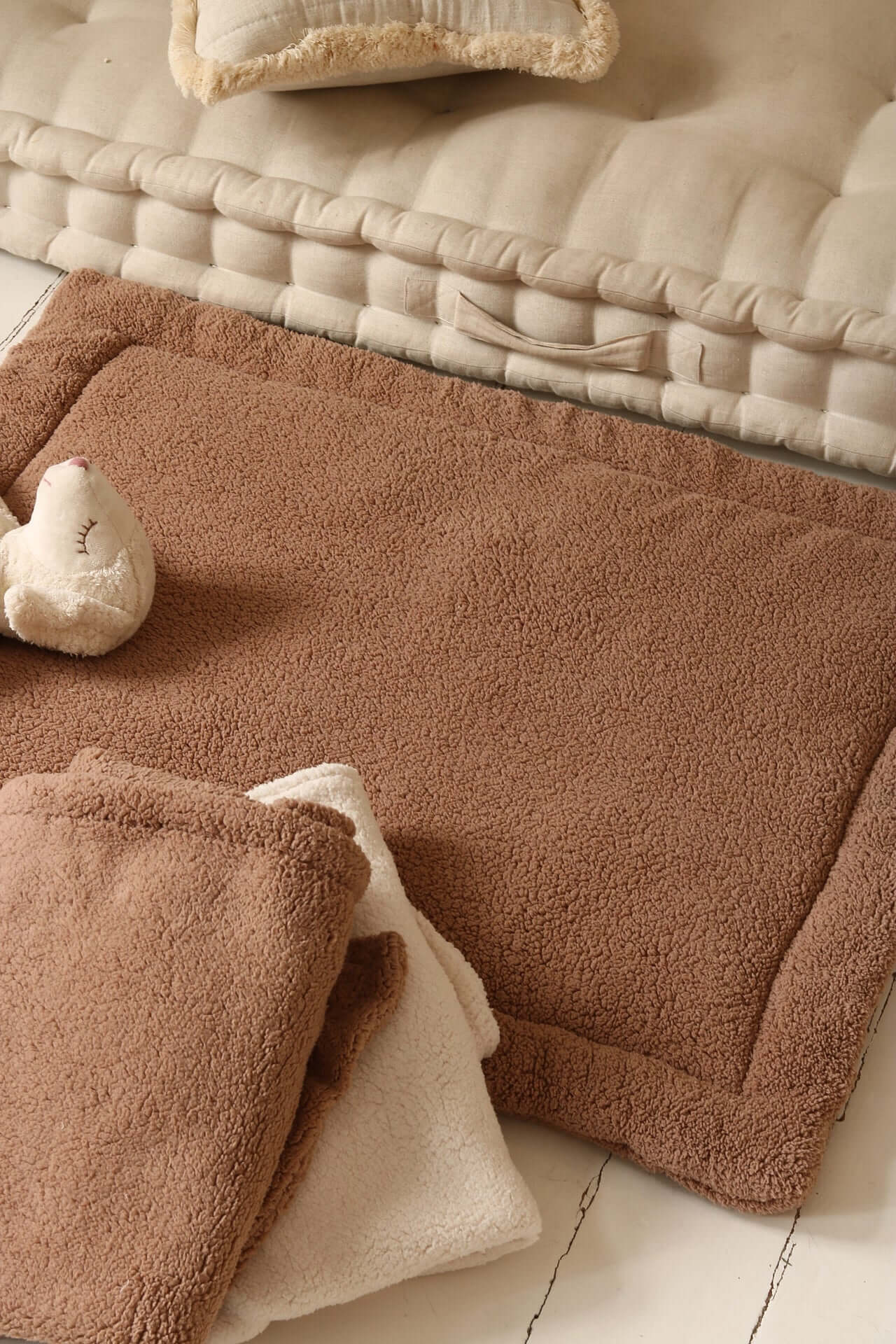 Designed and made in Amsterdam, the Netherlands, by Roksana (heart of Matuu) Soft baby teddy playmat. Hypoallergenic filling. Color: brown Quilted Playmat can be used for a newborn in a babybox or a play mat on the ground. Later as a stylish rug, bedcover for your toddler or on the wall as wallhanging.*small differences in the quilted illustration and mats may appear as everything is handmade and quilted by heart. Can be washed at 30 degrees Delivery time: 1-3 business days (counting from the next business day)