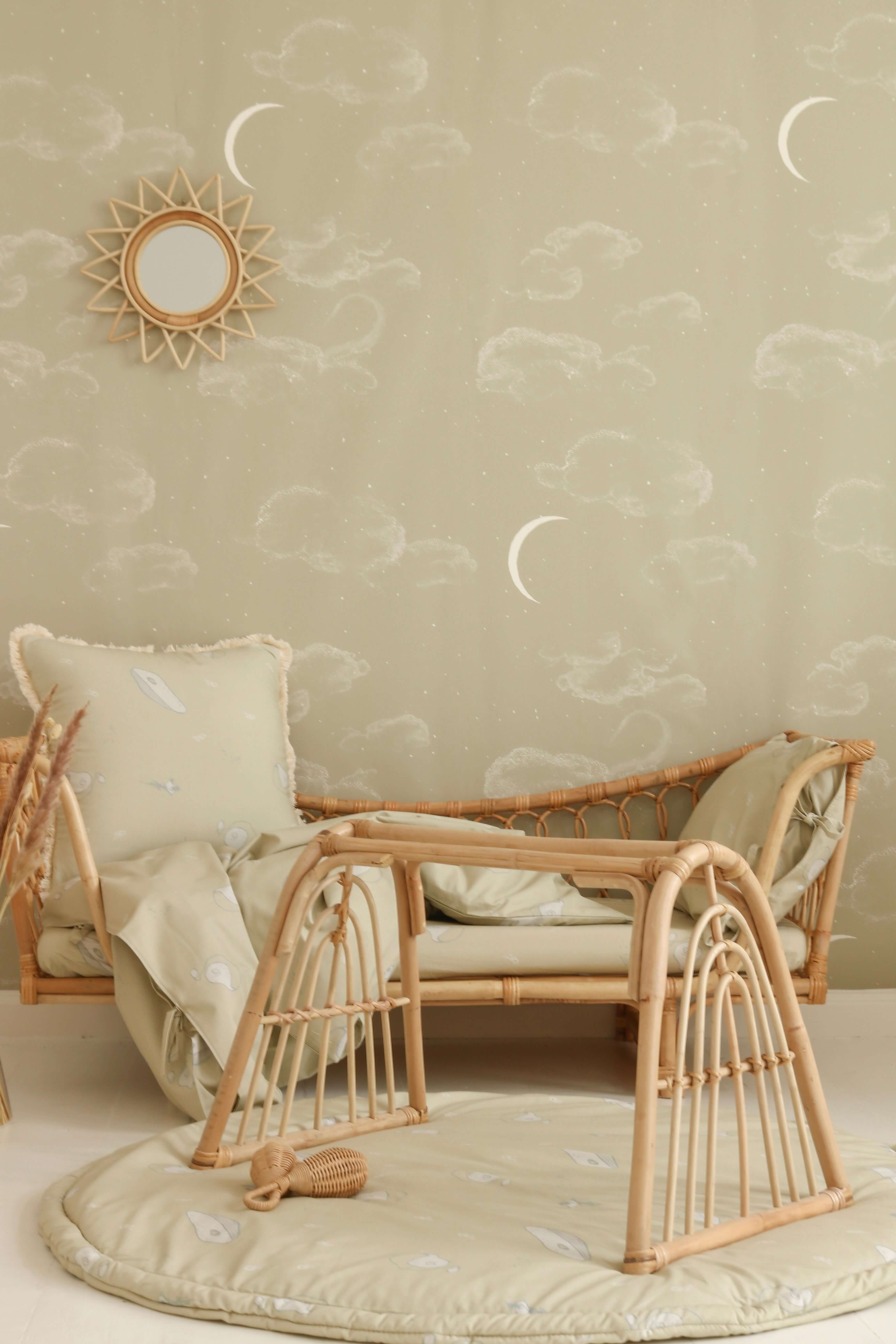 Create a serene, dreamy atmosphere withΒ The Night Sky β light green wallpaper by Matuu. Featuring delicate, hand-drawn stars and moons on a soft pastel green background, this premium non-woven (flizelin) wallpaper brings subtle charm and magic to nurseries, kidsβ rooms, bedrooms, or cozy reading nooks. Inspired by Scandinavian design, this wallpaper adds lightness and elegance to any space. Whether you want to highlight a statement wall or decorate an entire room, The Night Sky β light green offers timeless beauty and easy installation thanks to its paste-the-wall application. Why Youβll Love It Light pastel green background with delicate celestial design Hand-drawn stars and moons for a peaceful, dreamy look Perfect for nurseries, kidsβ rooms, bedrooms, or Scandinavian interiors Premium non-woven (flizelin) material β paste-the-wall application Product Details Material: Premium non-woven wallpaper (vlies) Finish: Matte, smooth surface Pattern repeat: every 100 cm Production: Made to order β each roll is freshly printed Sizes & Installation β’ Available sizes: ββ 2 strips of 50 Γ 270 cm ββ 2 strips of 50 Γ 310 cm β’ Coverage: 1 set covers 1 meter of wall width Installation: β’ Paste the wall (not the wallpaper) β’ Use non-woven wallpaper paste β’ Surface must be clean, smooth, and dry β’ Instructions: Download the step-by-step non-woven wallpaper guide Production & Delivery β’ Production time: 1β3 business days β’ Delivery time: 2β7 business days (EU) Check β Double Check Please carefully inspect your wallpaper before installation. Verify colours, pattern alignment, and length immediately upon delivery. We allow a cutting tolerance of up to 1 mm per strip. If the deviation is larger, we will gladly reprint your order. *Once the wallpaper has been cut and installed, it is no longer possible to objectively determine whether any irregularity originates from production or from handling during installation. For this reason, claims raised after installation are very difficult to assess. Good to Know Wallpaper is not kept in stock β each order is freshly printed Not sure about the color? Order a sample first Printed in the NL
