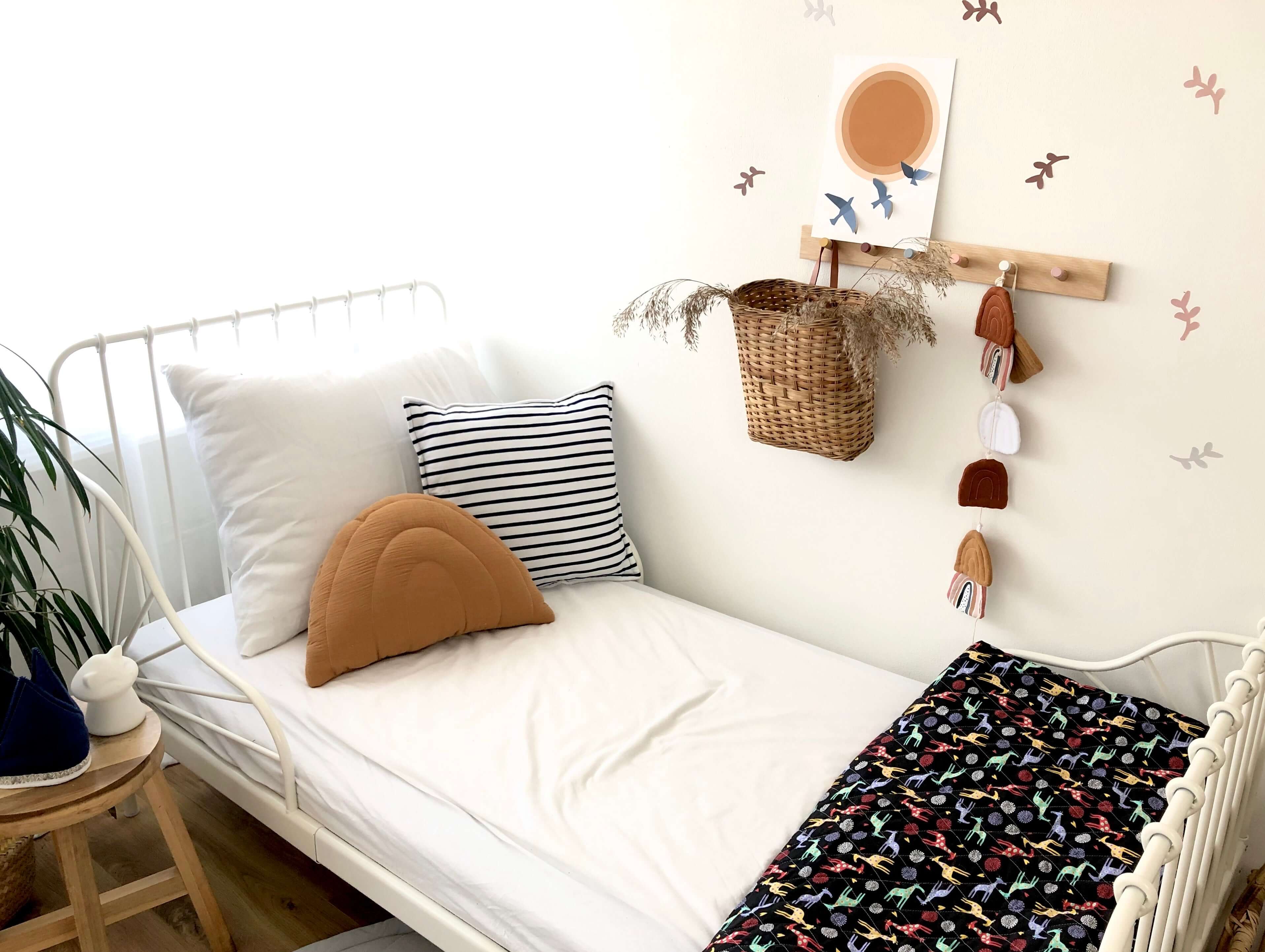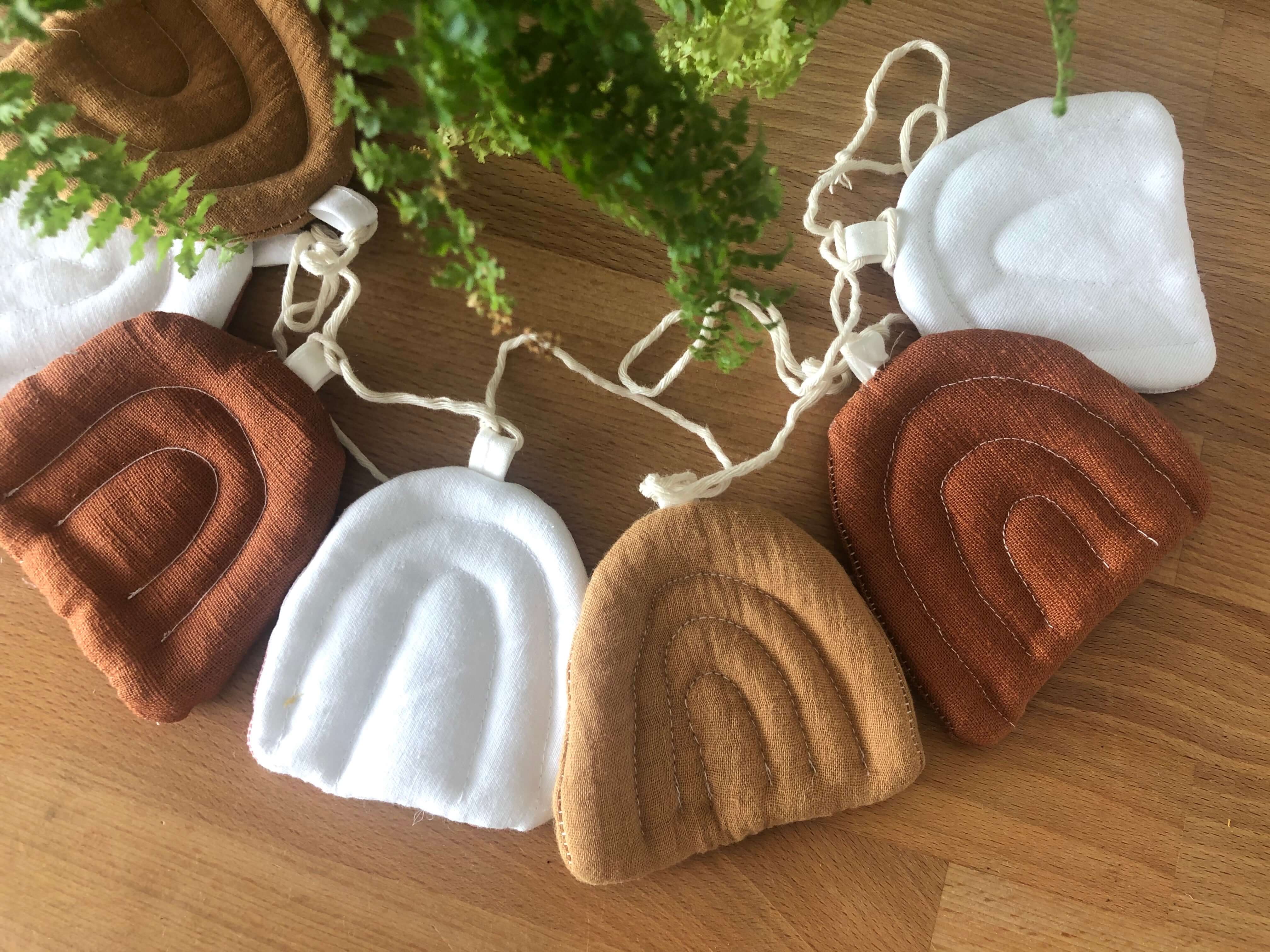 Add a cozy and playful accent to your nursery with our The Rainbows garland. Made from muslin and cotton fabrics in warm brown and caramel tones, this sweet garland brings a soft, natural charm to any babyโs room, play corner, or kidsโ space. Each flag is double-sided and measures approximately 8 cm high, while the full garland includes 7 flags and is about 60โ65 cm long. Finished with cotton strings on both sides for easy tying โ perfect for nurseries, playrooms, or party decorsuch as baby showers or birthdays. Product details Materials: Cotton and muslin fabrics Colors: Brown and caramel tones Length: approx. 60โ65 cm Flags: 7 double-sided flags, ~8 cm high Trim: Cotton string on both ends Care: Machine wash at 40ยฐC Made in:ย The Netherlands Delivery time: 1โ3 business days Perfect for Nursery or kidsโ room decoration Warm, boho or neutral interiors Baby showers and birthdays A beautiful handmade gift ย