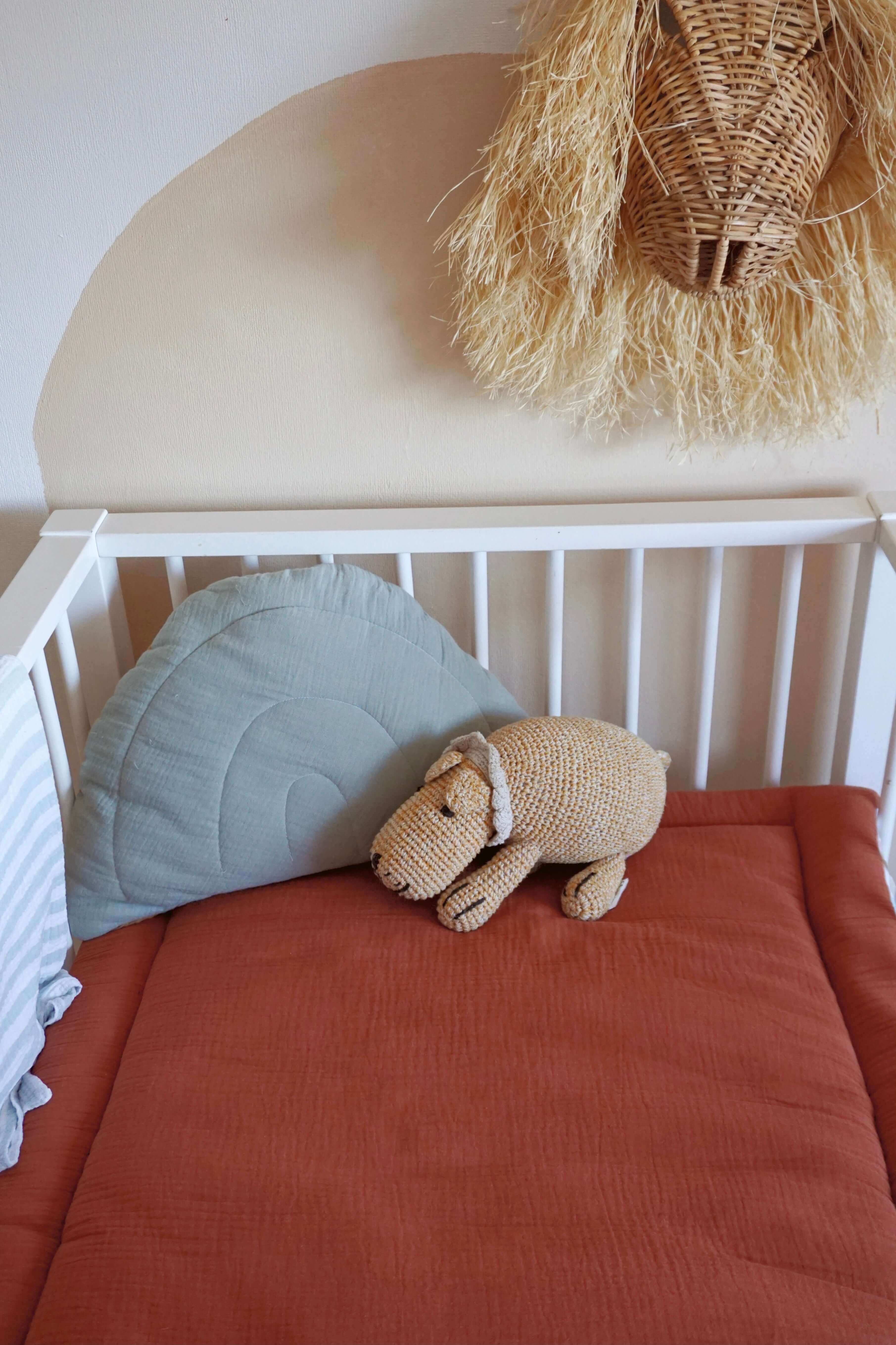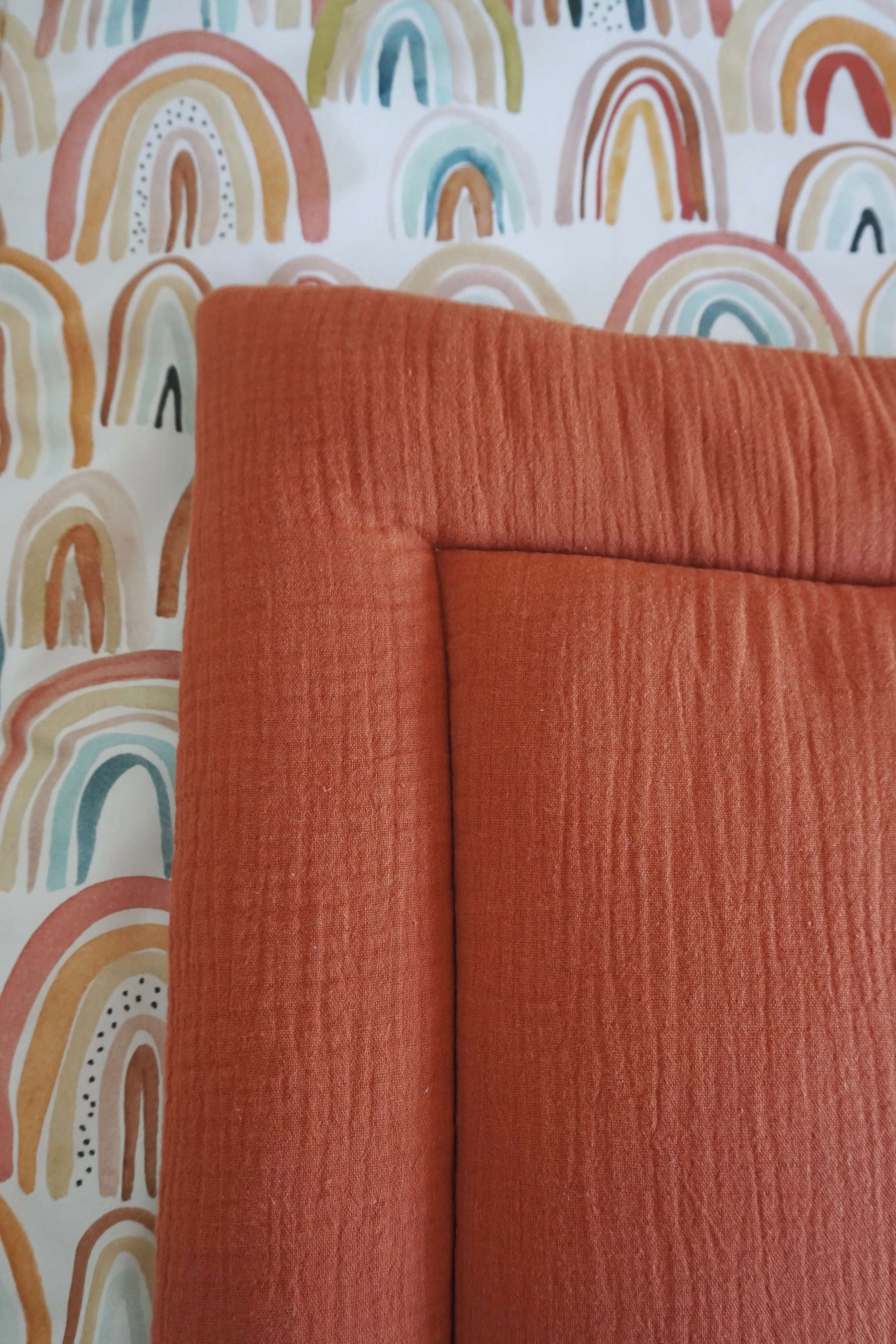Are you looking for a fun box rug for your box or maybe baby quilt blanket or fun play mat? We have the product that suits all these cases. Simply choose one of the many box rugs (baby blankets) that we have to offer. Whether you are looking for a square box rug or rug with a beautiful print on it, you will find it all in here. A beautiful thick soft quilt or crib blanket with the rainbows print on one side and muslin (mousseline fabric) in rust color on the other. It will be perfect also as a box rug, making the childβs little home very comfy. Unique design will please the eye and make your nursery feel moreβ¦ yours.Filled: 100% polyester. This makes the quilt wonderfully fluffy thick / soft. And has ANTIALLERGICAL propertiesFabrics are made from 100% cottonMachine washable at 30 Β°C. There is a possibility to make a mat in other size, let me know if you are interested ;)(processing time up to 2 weeks). Designed and made in Amsterdam, the Netherlands.