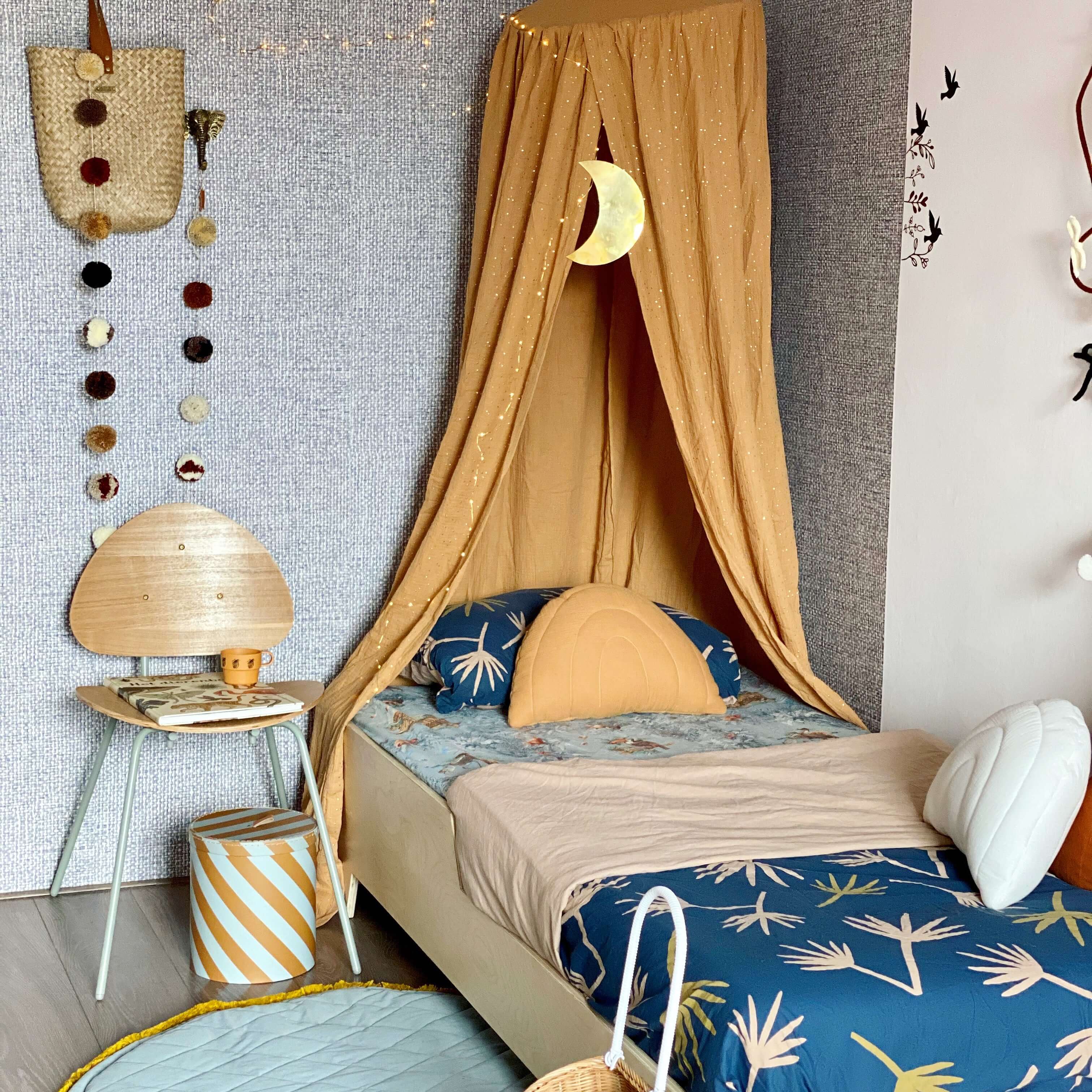 Are you looking for a fun box rug for your box or maybe baby quilt blanket or fun play mat? We have the product that suits all these cases. Simply choose one of the many box rugs (baby blankets) that we have to offer. Whether you are looking for a square box rug or rug with a beautiful print on it, you will find it all in here. A beautiful thick soft quilt or crib blanket with the tropical print ( jungle and parrots) on one side and mustard muslin (mousseline fabric) on the other. It will be perfect also as a box rug, making the child’s little home very comfy. Unique design will please the eye and make your nursery feel more… yours.Filled: 100% polyester. This makes the quilt wonderfully fluffy thick / soft. And has ANTIALLERGICAL propertiesFabrics are made from 100% cottonMachine washable at 30 °C.There is a possibility to make a mat in other size, let me know if you are interested ;)(processing time up to 2 weeks) Designed and made in Amsterdam, the Netherlands.