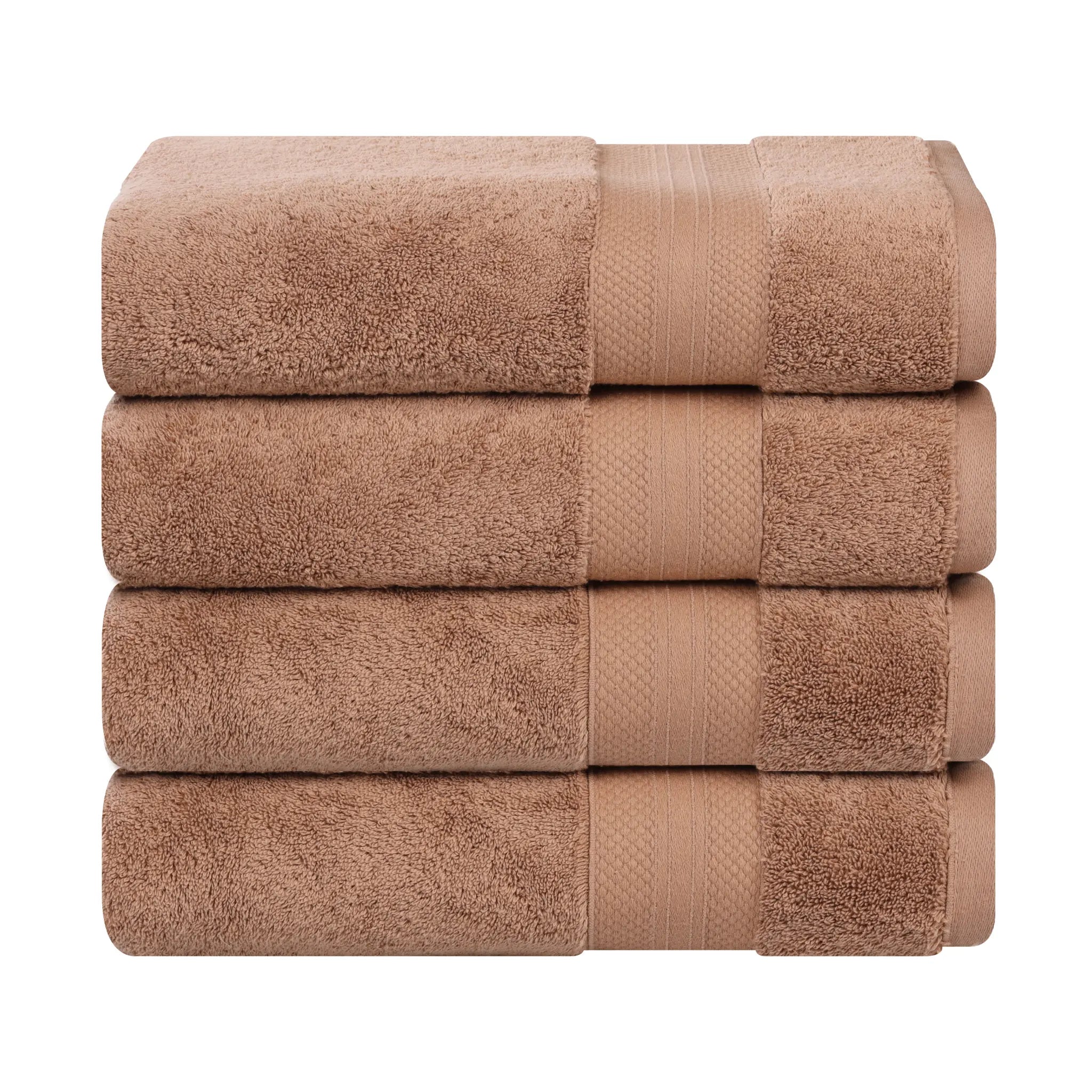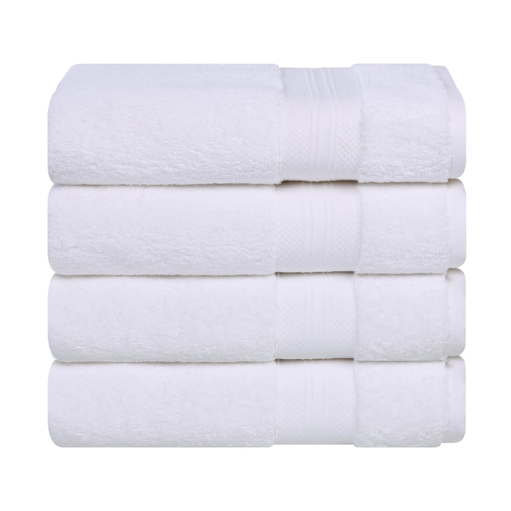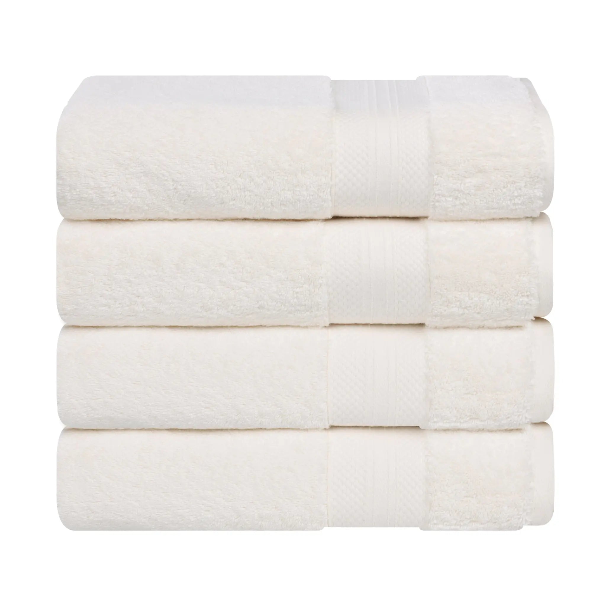 This is a 4-piece set of bath towels crafted with a focus on both functionality and aesthetics. The towels are made of cotton or a cotton blend, featuring a plush main body and a contrasting, textured border. Available in a variety of soft and neutral colors, they are perfect for adding a touch of style to your bathroom while providing excellent absorbency.