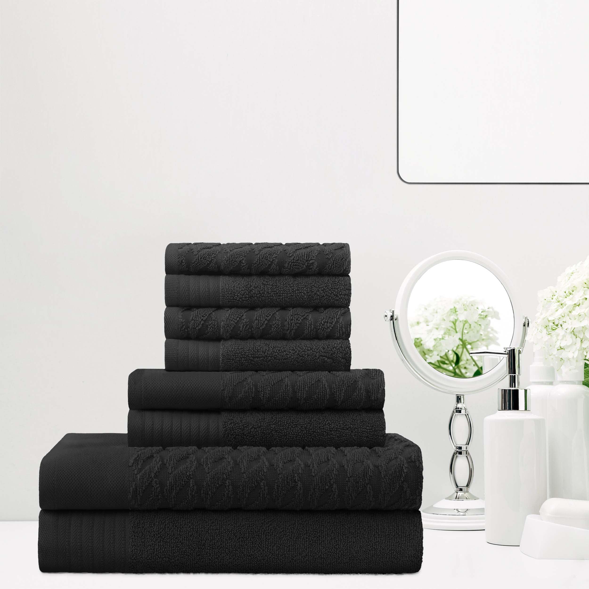 This is a Turkish cotton towel set with an embossed pattern. The set consists of multiple towels in various sizes, made from high – quality cotton terry cloth. It comes in a wide range of solid colors and features raised embossed patterns on some towels, along with smooth contrasting borders for added visual interest.