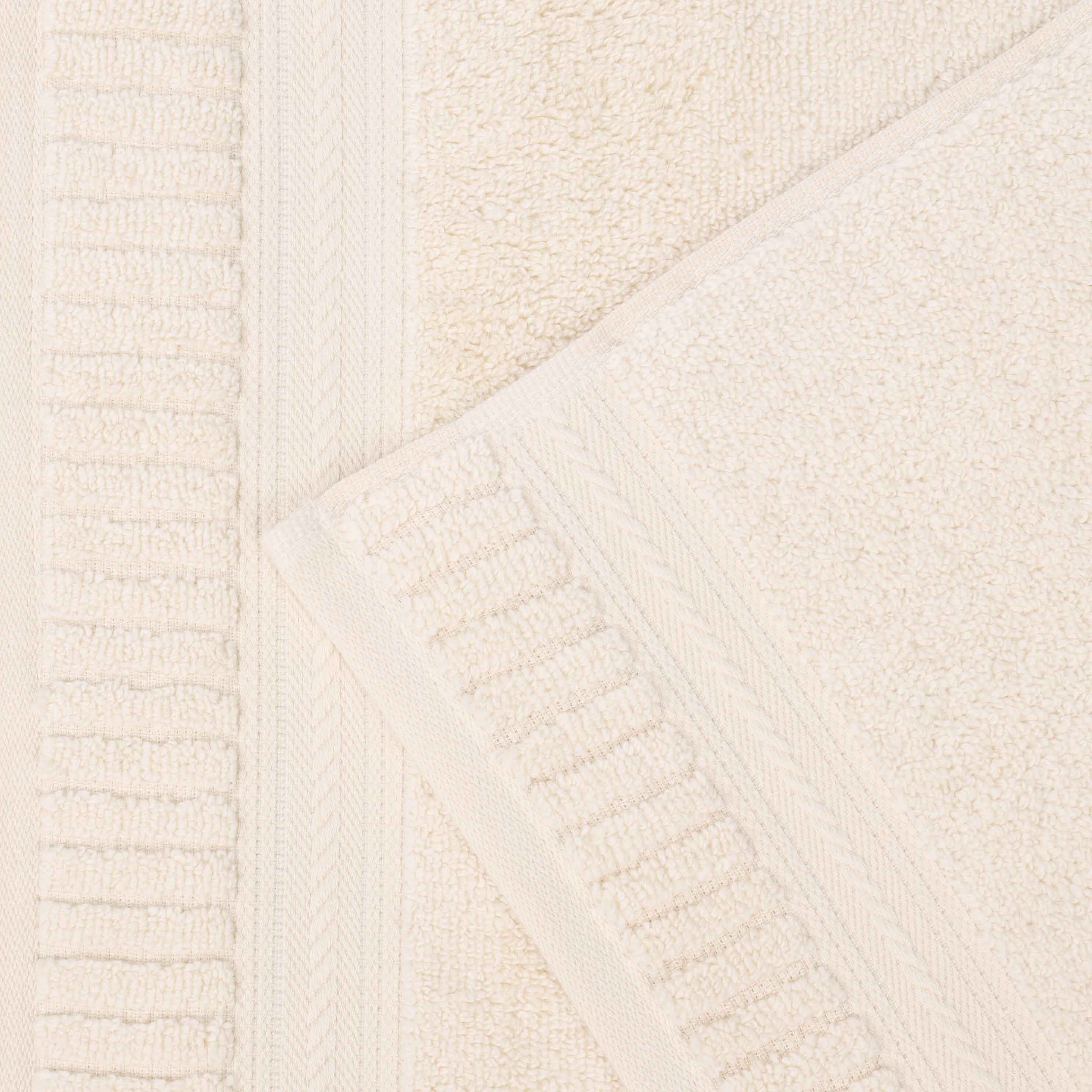 This is a luxurious 3 piece towel set crafted from 100% cotton. The towels feature a zero – twist weave, which gives them a plush and absorbent texture. They come in a variety of elegant colors like gold, green, ivory, silver, and white, and have a simple yet stylish border with herringbone motifs.