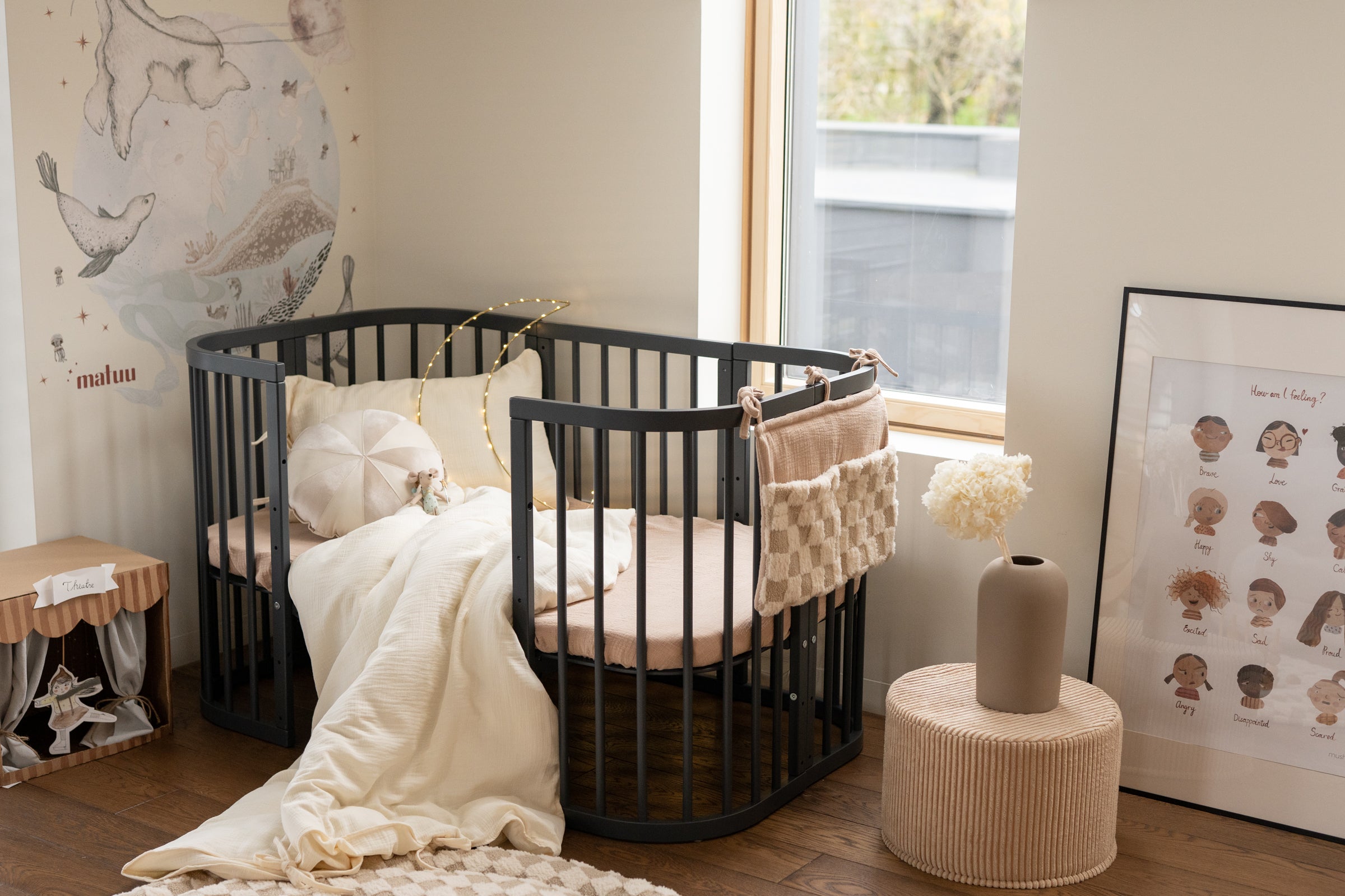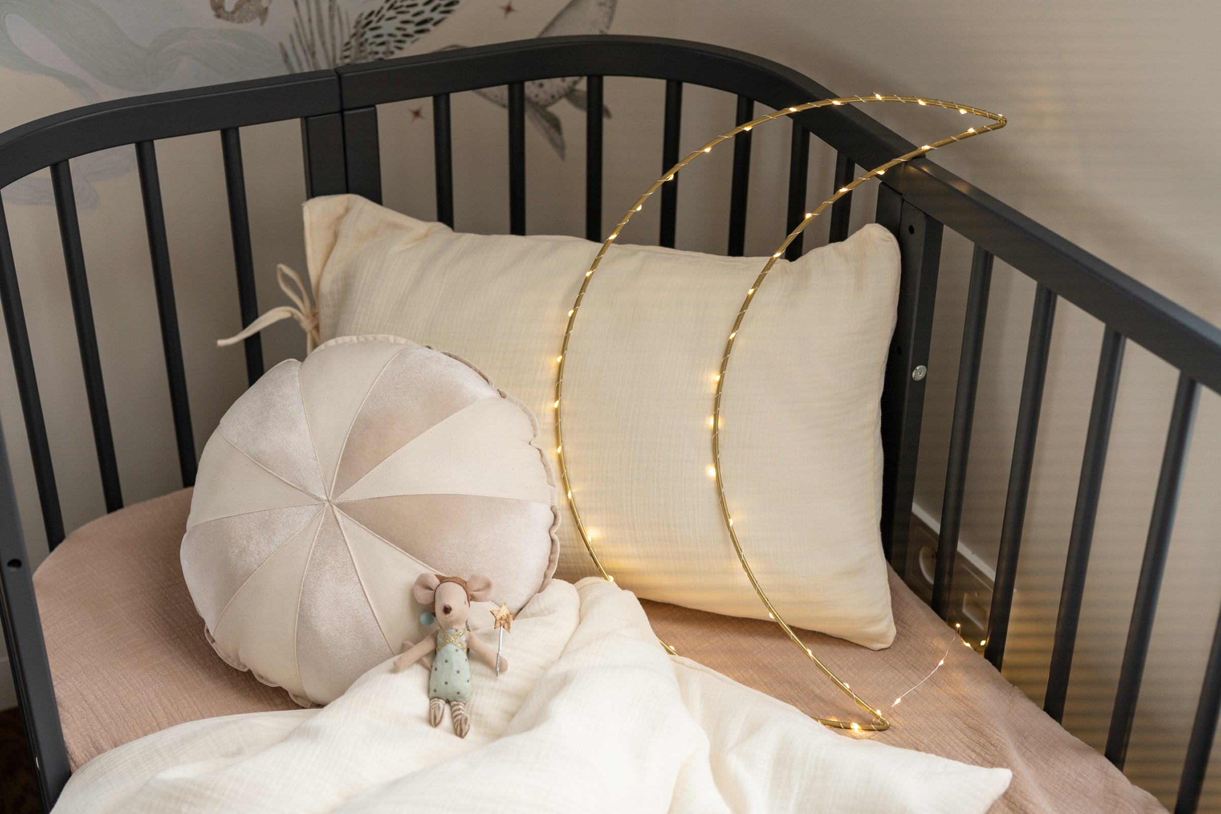 Create a warm and timeless atmosphere in your nursery with our Warm Beige fitted sheet. Made from soft cotton muslin with a beautiful linen-look texture, this sheet combines natural charm with everyday comfort. The subtle beige tone fits perfectly into any interior — from minimalist to cozy boho style. The elasticated edges ensure a snug and secure fit, keeping the sheet perfectly in place while your baby rests or plays. Available in multiple sizes to fit cribs, toddler beds, or changing baskets.   Product details:  • Fabric: 100% cotton muslin (double gauze) — linen look texture • Pattern: Plain warm beige • Sizes: Available from crib to single bed • Fit: Elasticated edges for a secure fit • Care: Machine wash at 40°C • Preparation time: 2–3 next business days • Handmade with care in the Netherlands by Matuu   Perfect for:  • Crib or toddler bed — ideal for babies and young children • Neutral, calm, and timeless nursery styling • Matching with Matuu bedding, canopies, pillows, and décor • A thoughtful handmade gift for new parents or baby showers