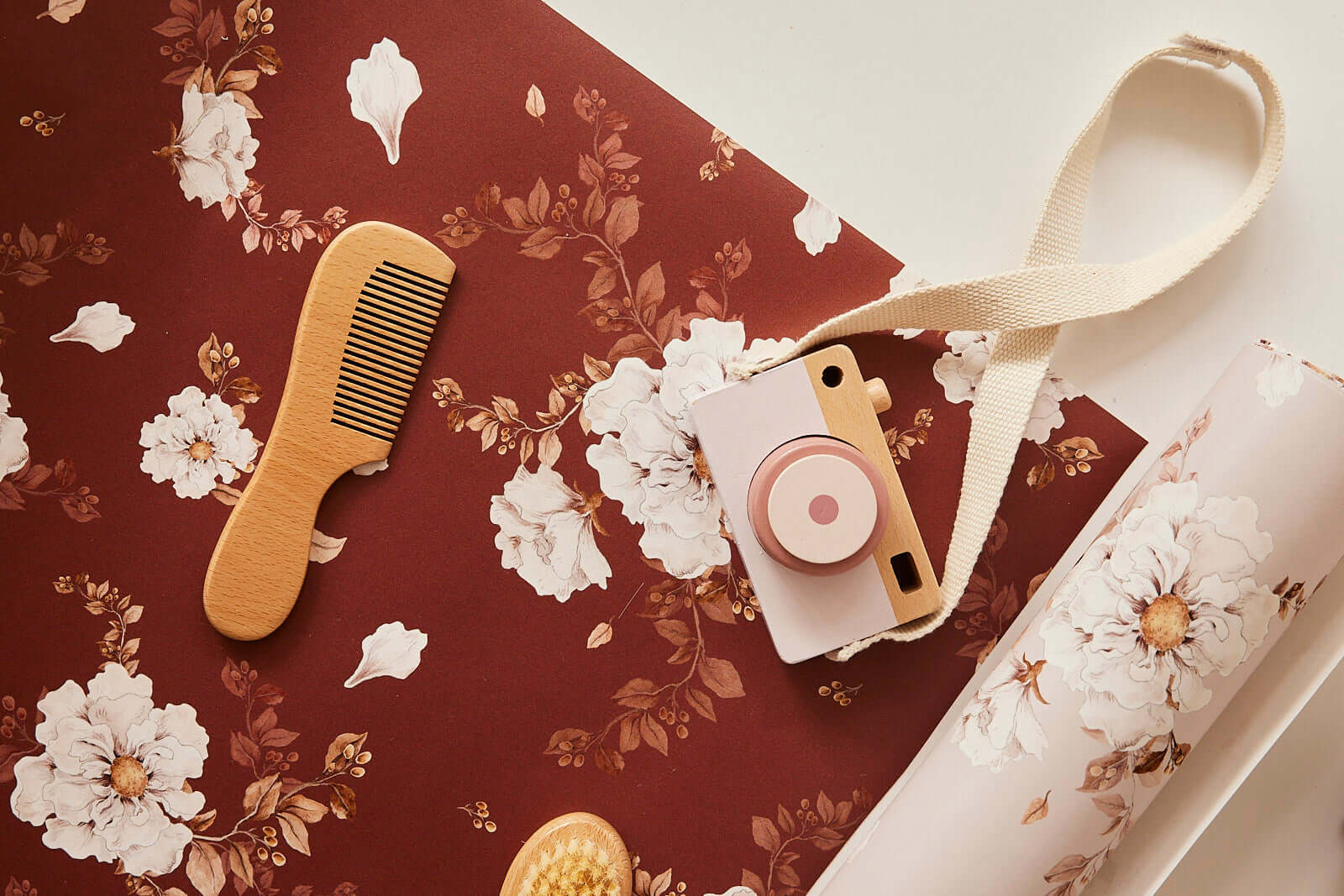Add rich warmth and floral elegance to your interiors The Wild Roses on Red Brown wallpaper features hand-painted roses in warm, deep red and brown tones. This luxurious and cozy design brings a romantic, vintage feel, perfect for bedrooms, living rooms, or any space that needs a touch of natural beauty and sophistication. Why you’ll love it Rich floral pattern with hand-painted roses in deep reds and browns Warm red-brown background with soft cream roses and brown accents Exclusive design by Matuu, printed to order just for you Ideal for vintage, boho, or classic interiors Product Details Design: Hand-painted wild roses Colors: Deep red, brown, soft pink, green Material: Premium non-woven wallpaper (vlies) Finish: Matte, smooth surface Pattern repeat: Every 50 cm Production: Printed to order – freshly made for you Sizes & Installation Each roll contains 2 strips: 50 cm wide × 270 or 310 cm high Coverage: 1 set covers 1 meter wall width  Installation: • Paste the wall (not the wallpaper) • Use non-woven wallpaper paste • Surface must be clean, smooth, and dry • Instructions: Download the step-by-step non-woven wallpaper guide How many rolls do I need? Each set includes 2 vertical strips (50 cm wide), covering 1 meter in width. Examples: Wall width 2.3 m → order 3 sets Wall width 4 m → order 4 sets Tip: Always add 5–10 cm margin, as walls are rarely perfectly straight. Check – Double Check Please carefully inspect your wallpaper before installation. Verify colours, pattern alignment, and length immediately upon delivery. We allow a cutting tolerance of up to 1 mm per strip. If the deviation is larger, we will gladly reprint your order. *Once the wallpaper has been cut and installed, it is no longer possible to objectively determine whether any irregularity originates from production or from handling during installation. For this reason, claims raised after installation are very difficult to assess. Important Notes This wallpaper is not kept in stock – it’s printed to order. Not sure about the colour or pattern scale?We recommend ordering a sample first.