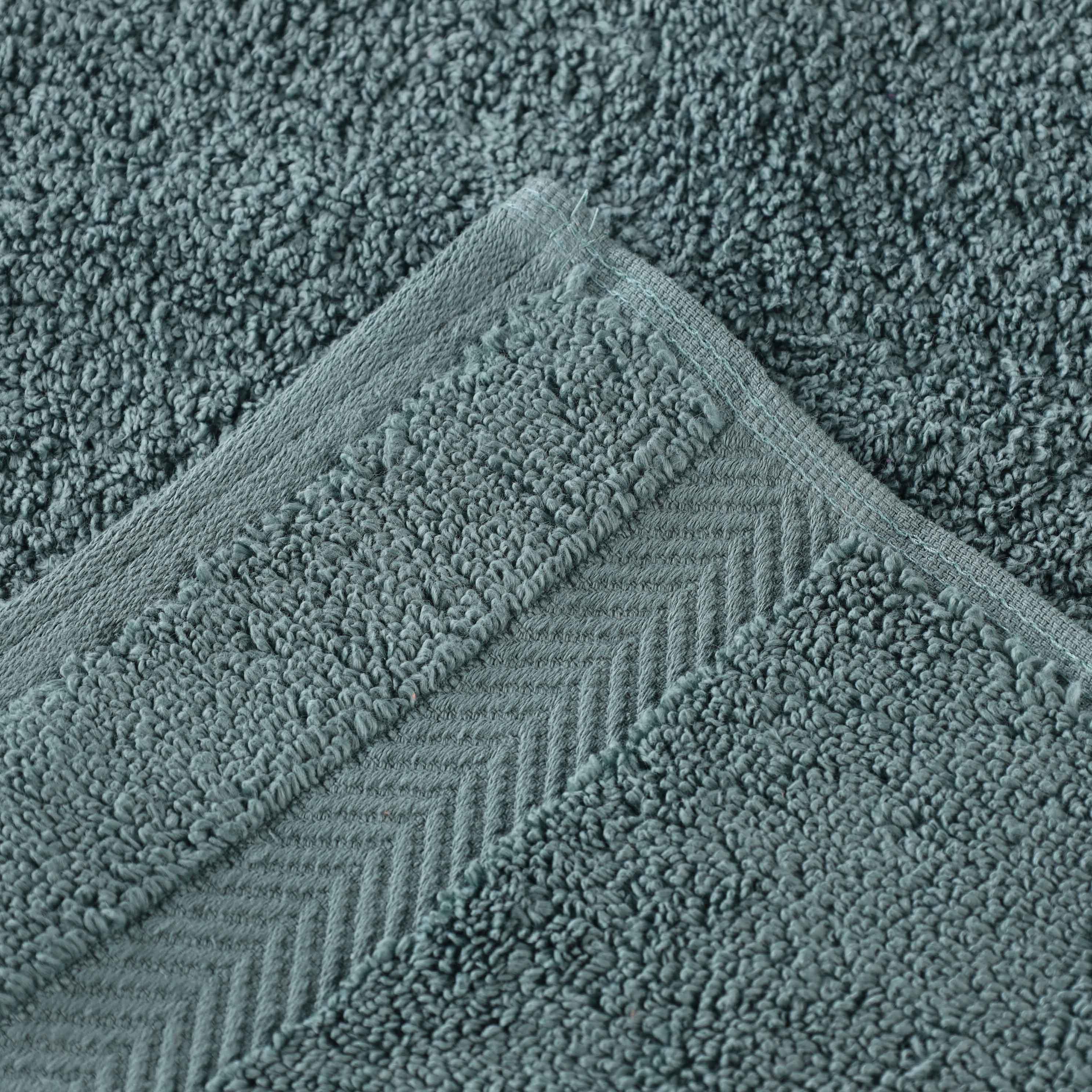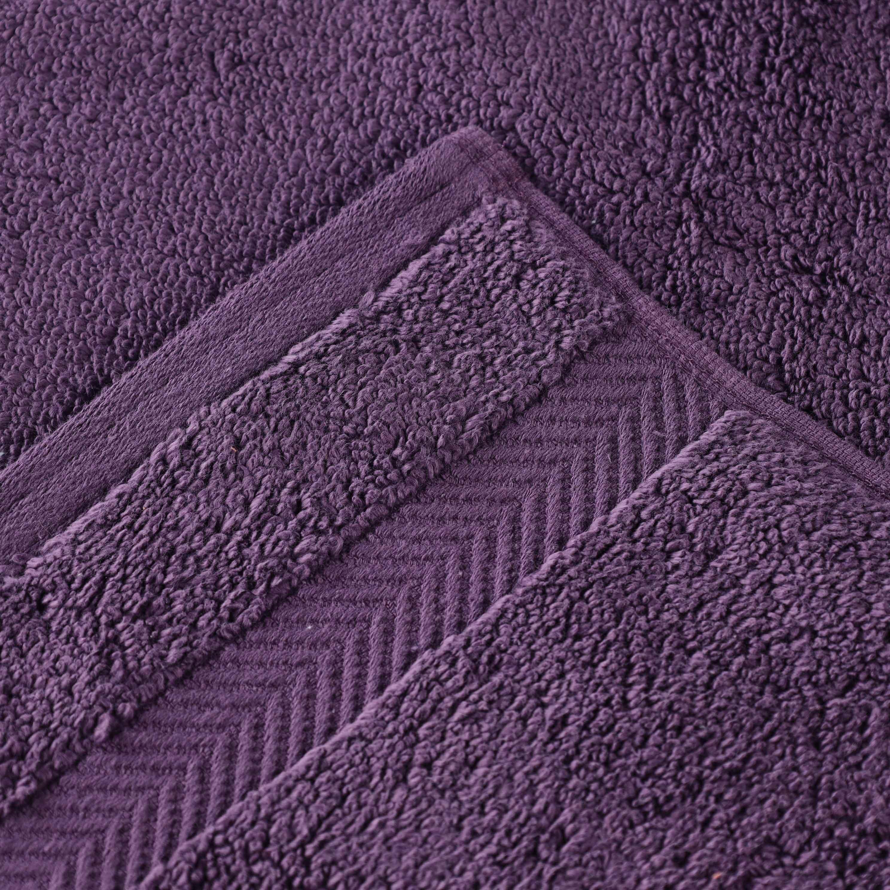 This is a set of large bath towels crafted from cotton terry cloth. They come in a variety of colors and feature a solid-color body with a herringbone/chevron pattern on the decorative edge. The towels have a plush and absorbent texture, making them perfect for post – bath drying.